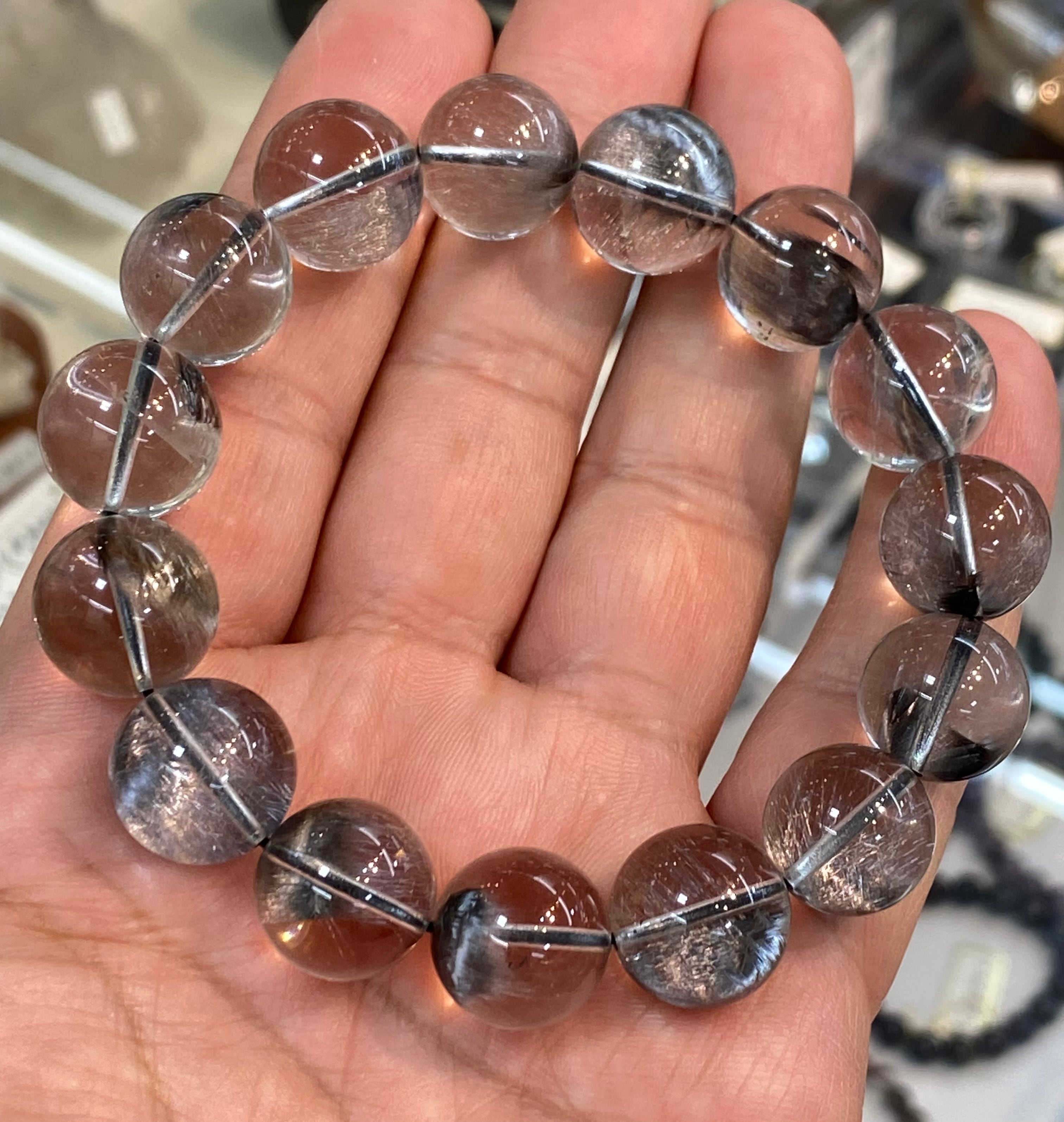 特選!最高グレードプラチナルチル水晶ブレスレット 大粒 ブルッカイトインクォーツ