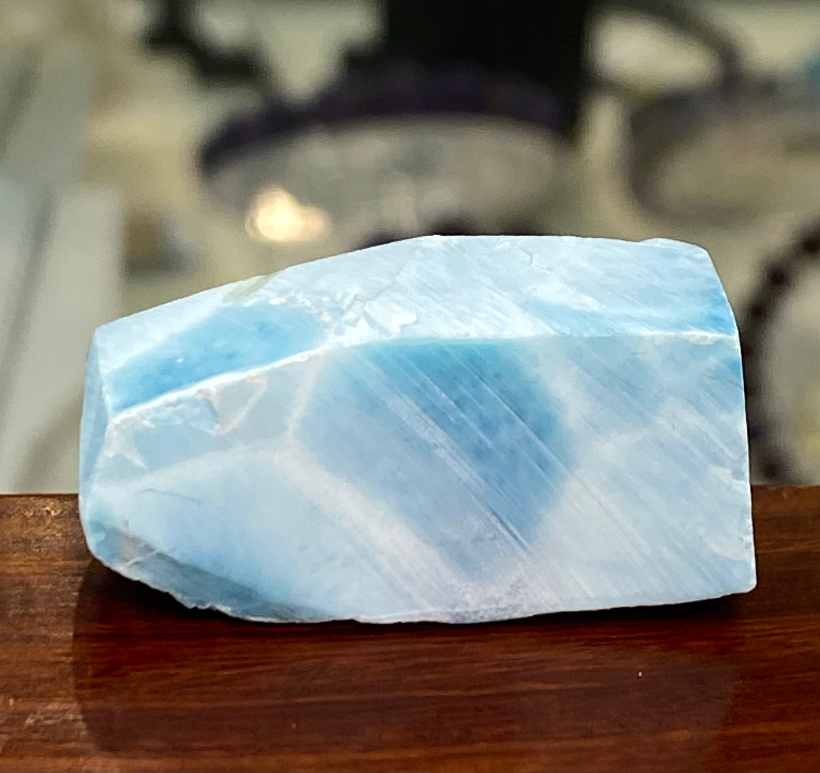 透明感が高い天然ラリマー原石スライスです。ノンポリッシュ。