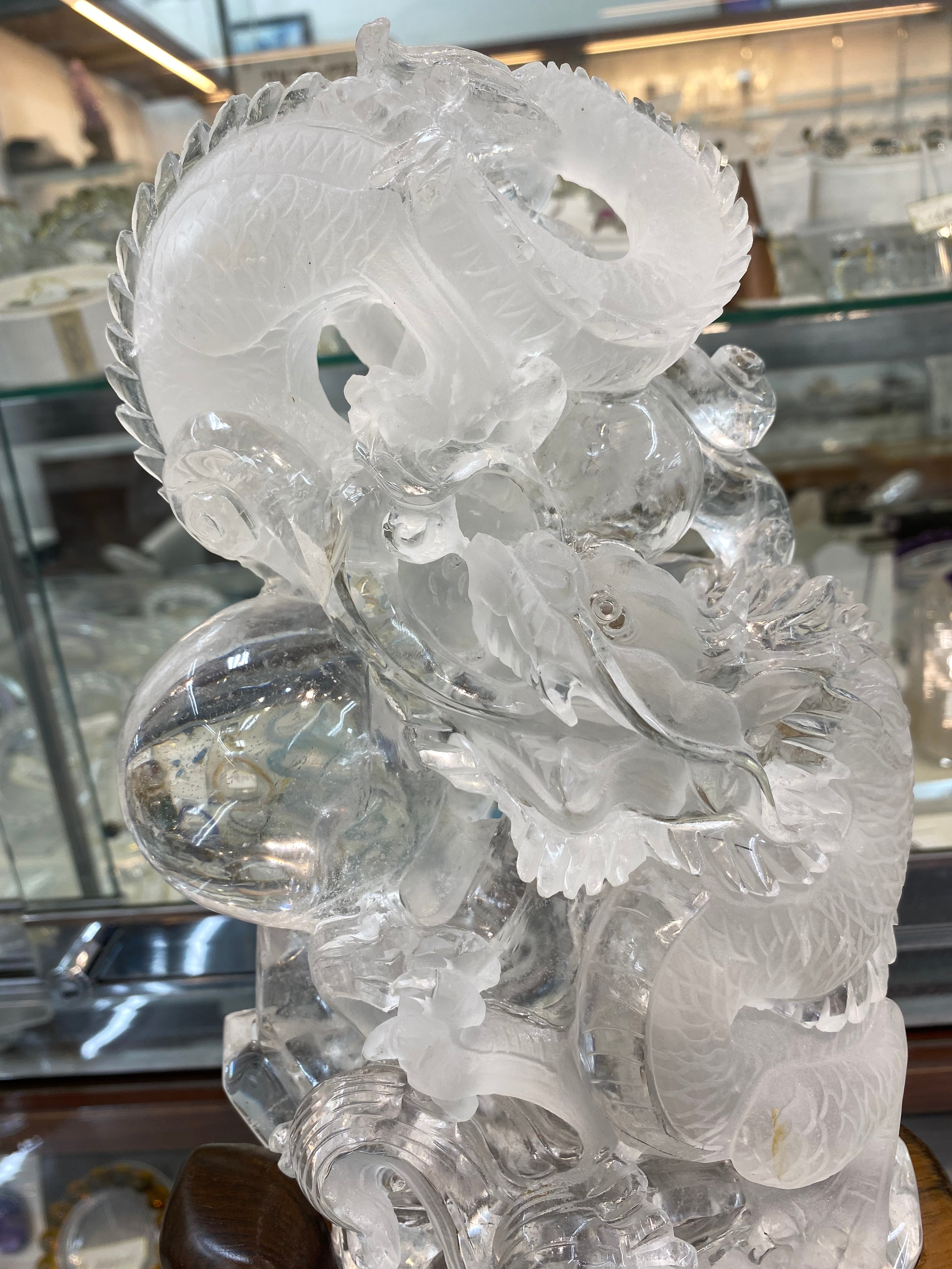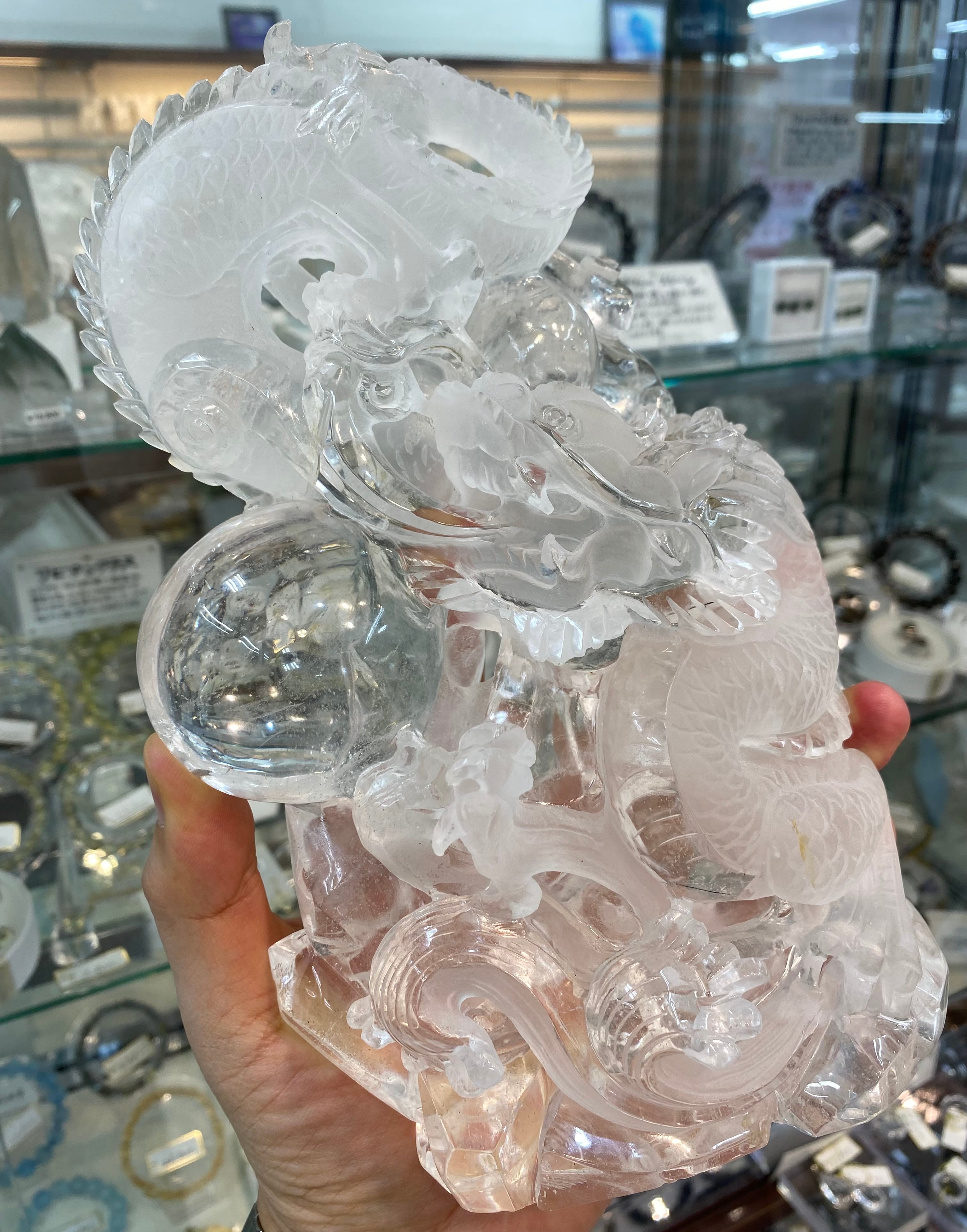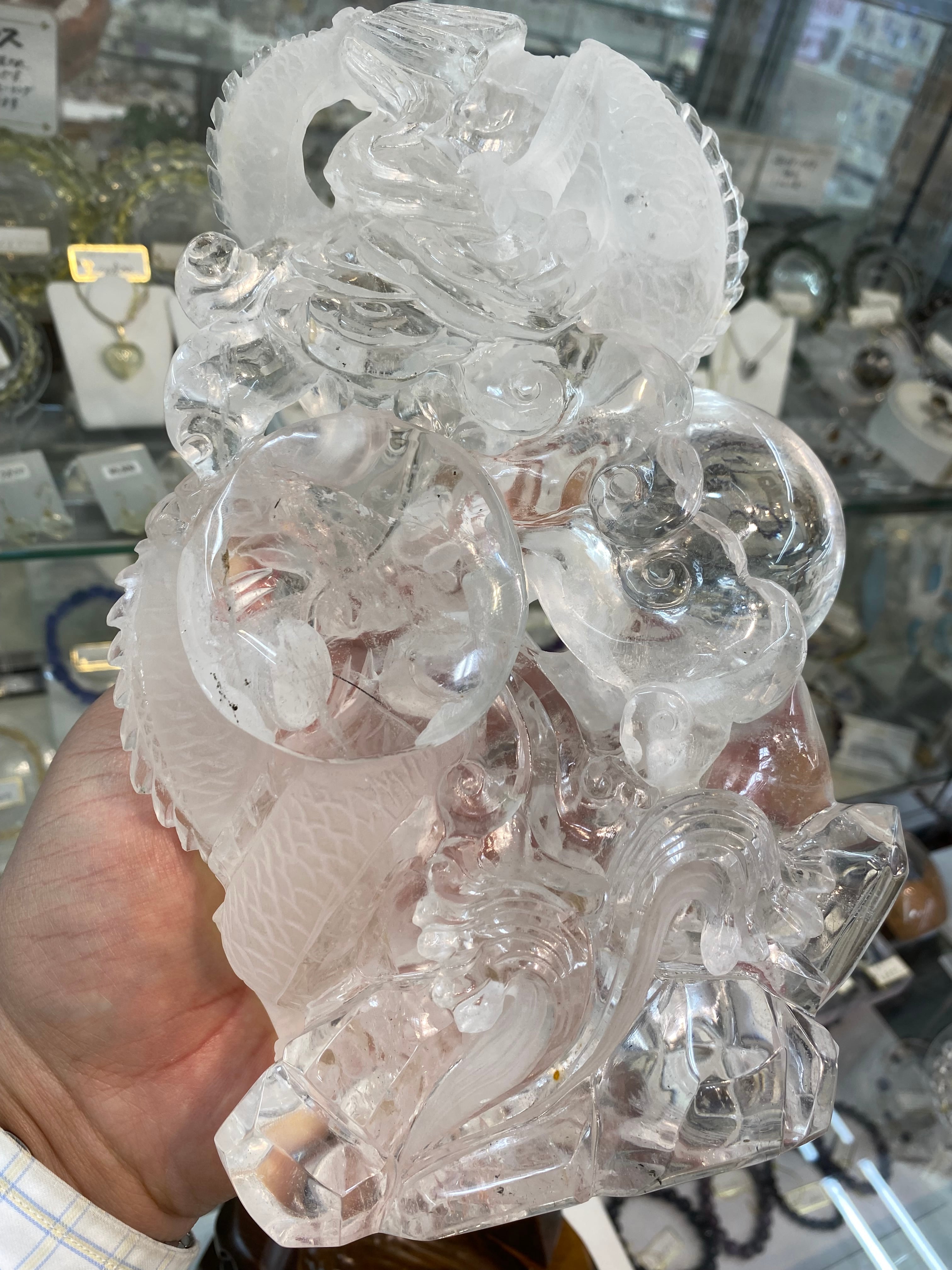 厳選 水晶昇龍 透かし彫り 巨大水晶龍 虹入り!ブラックルチル入り水晶龍 極上品