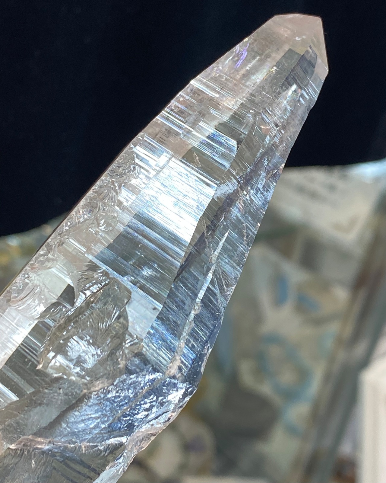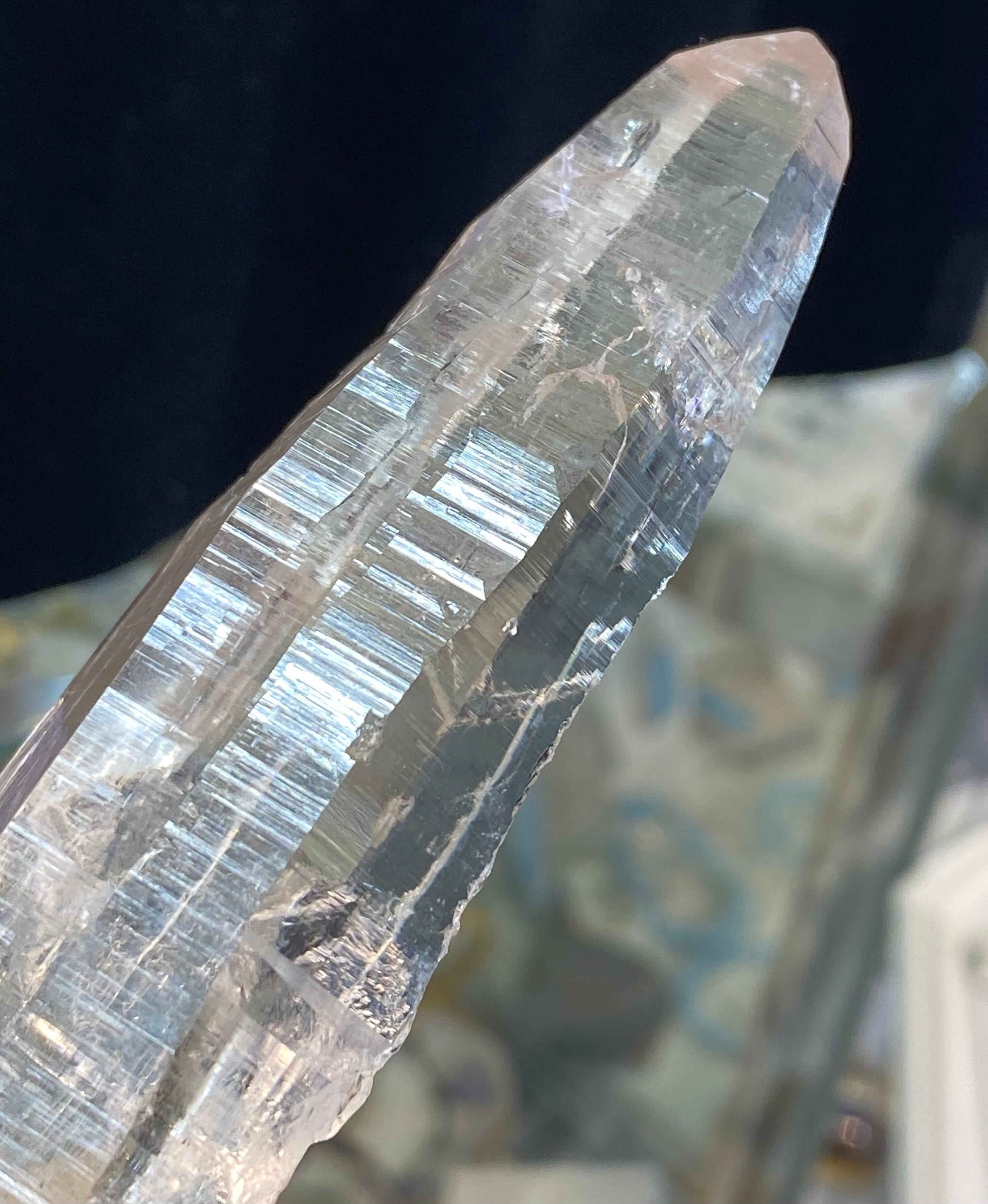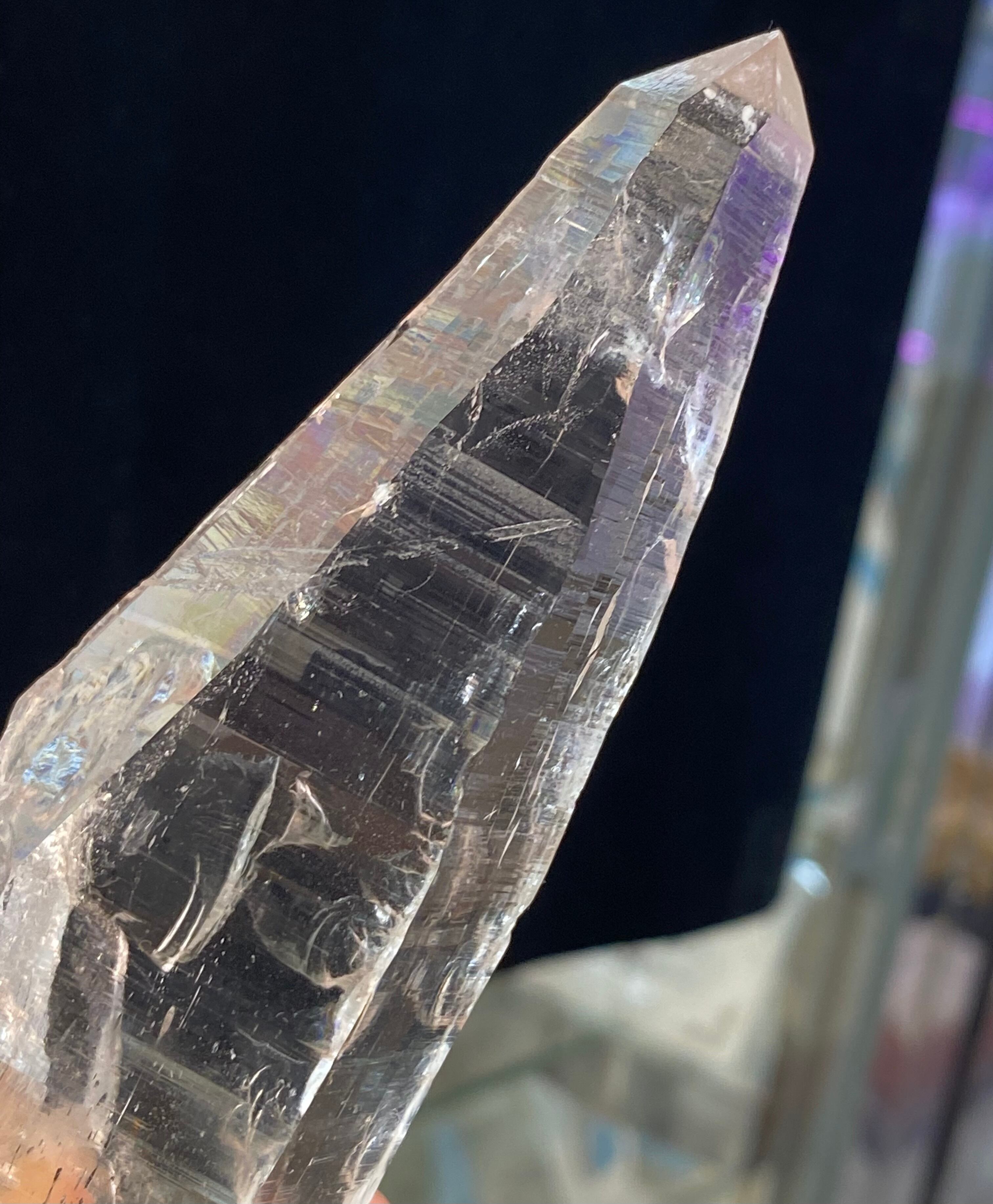 最高グレードのガネッシュ・ヒマール産ヒマラヤ水晶ナチュラルポイントです。その透明度と輝きは普通のガネッシュ・ヒマール産ヒマラヤ水晶とは一線を画す格別なものです。ガネッシュヒマールの聖なる山々が創造したこの上もない美しいヒマラヤ水晶を届け致します。底面は見事にセルフヒールドの再生結晶面で覆われ、ボディーにはヒマラヤ水晶独特の条線のテクスチャーと縦に入った接合線が何とも言えない極美の世界を創り上げています。