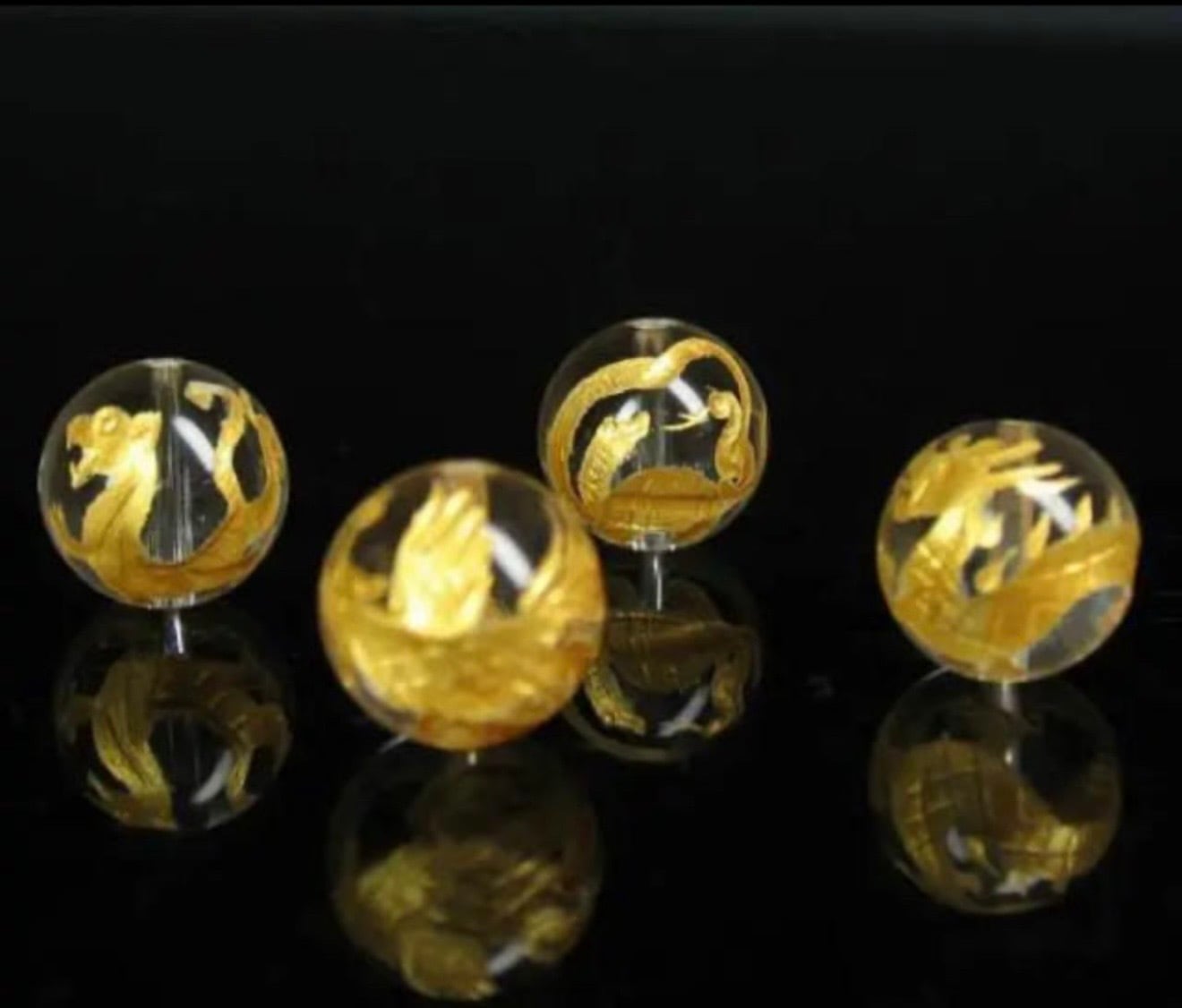 天然本水晶四神(彫金色)10mm玉各1個1セット(4個ワンセット)