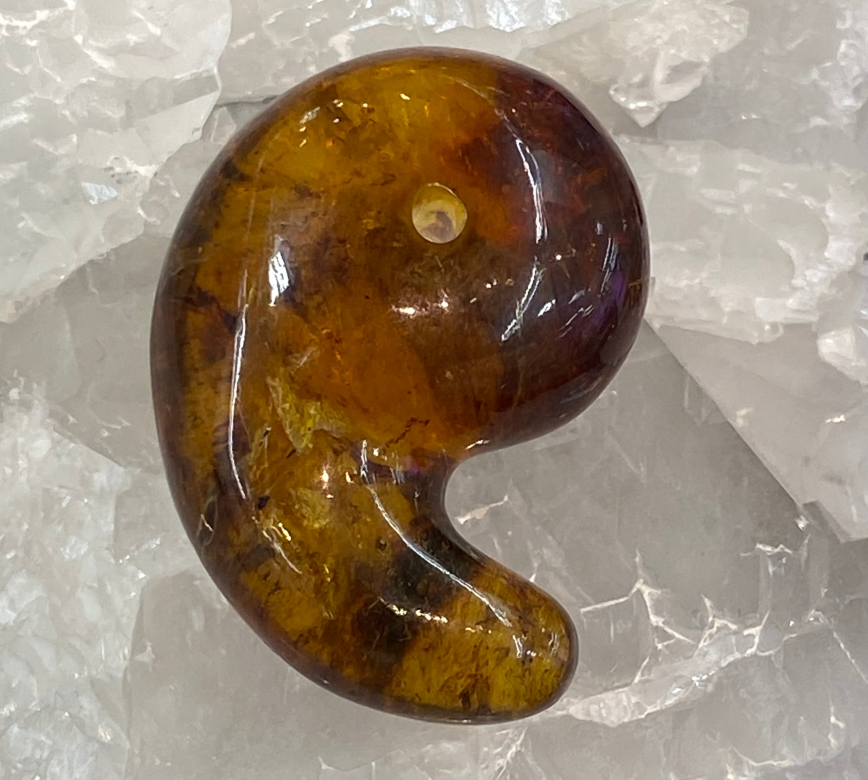 正真正銘のドミニカ共和国・サンピアゴ産、天然ブルーアンバー(青琥珀)勾玉です。大きな勾玉!