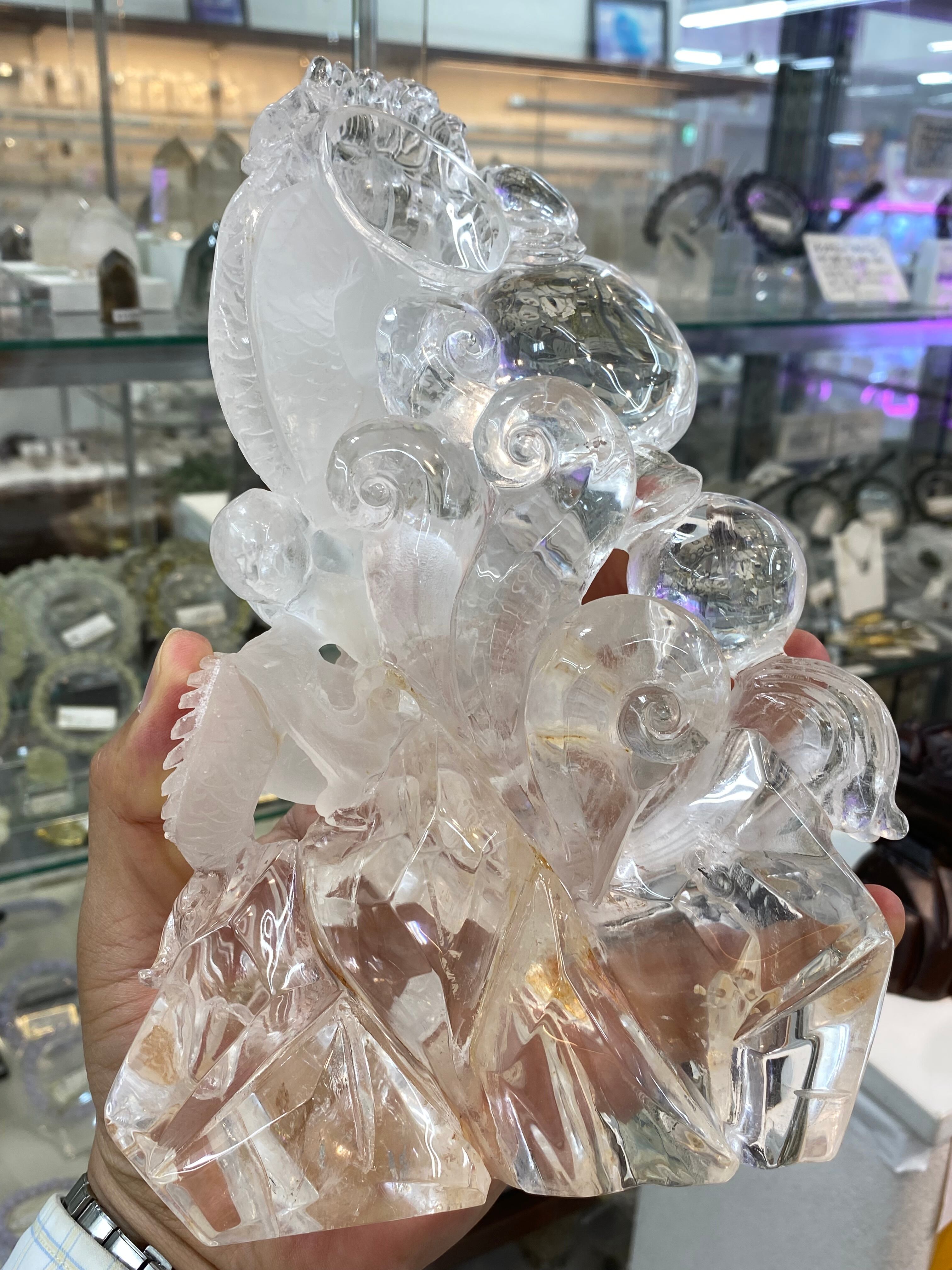 厳選 水晶昇龍 透かし彫り水晶龍 巨大な水晶龍 ライモナイト入り水晶龍 極上品
