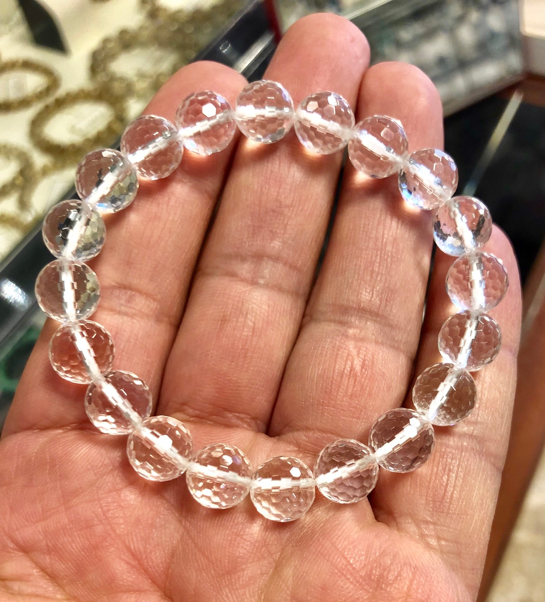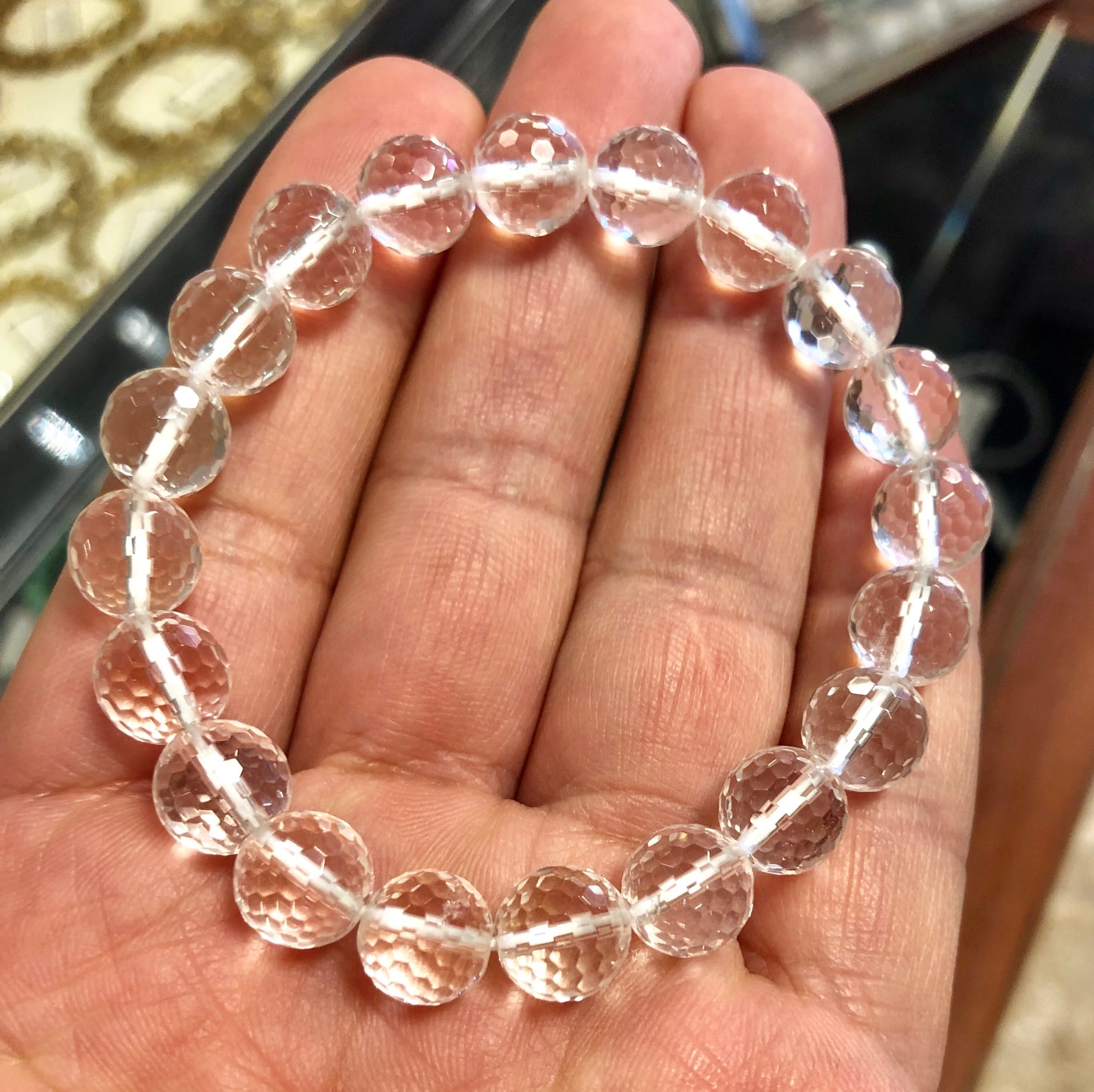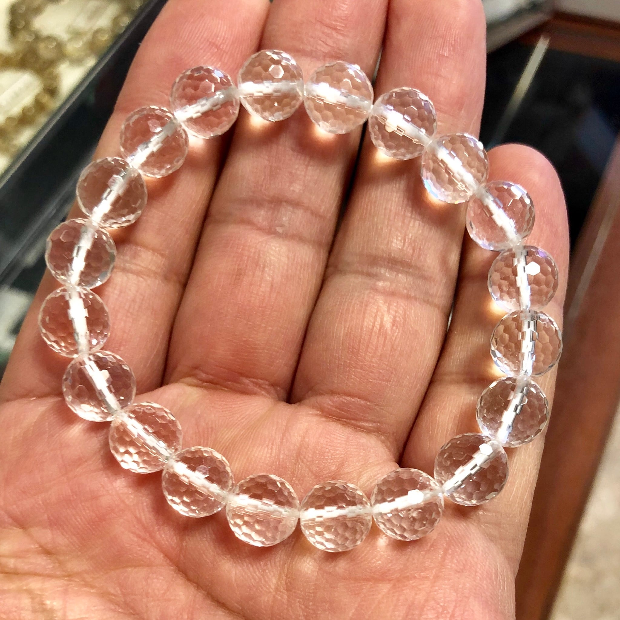 激安セール 特選! 天然本水晶ブレスレッド128面カット9.5mm