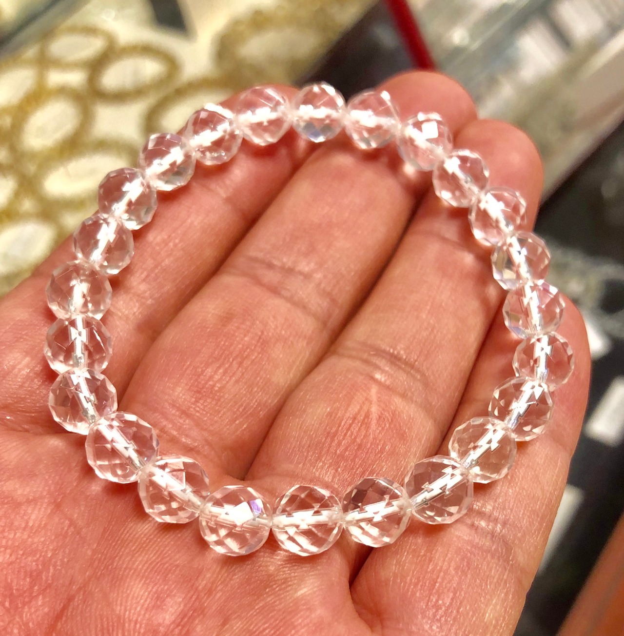 最高グレード!天然本水晶ブレスレッド8mmです。ミラーボールカット、64面カットです。