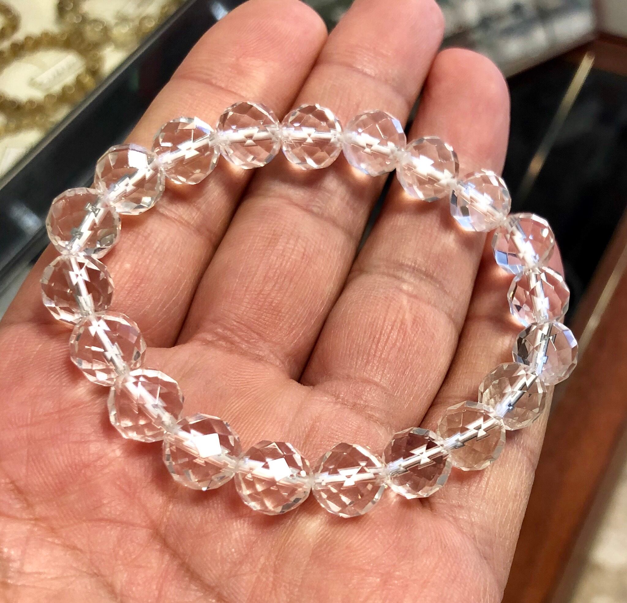 激安セール 特選! 天然本水晶ブレスレッド64面カット9.5mm