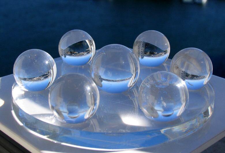 周りに置いた6つの水晶から発生するパワーを中心に置いた水晶に共鳴させエネルギーを高め、絶大なパワーを引き出します。主玉は虹入り水晶玉です。