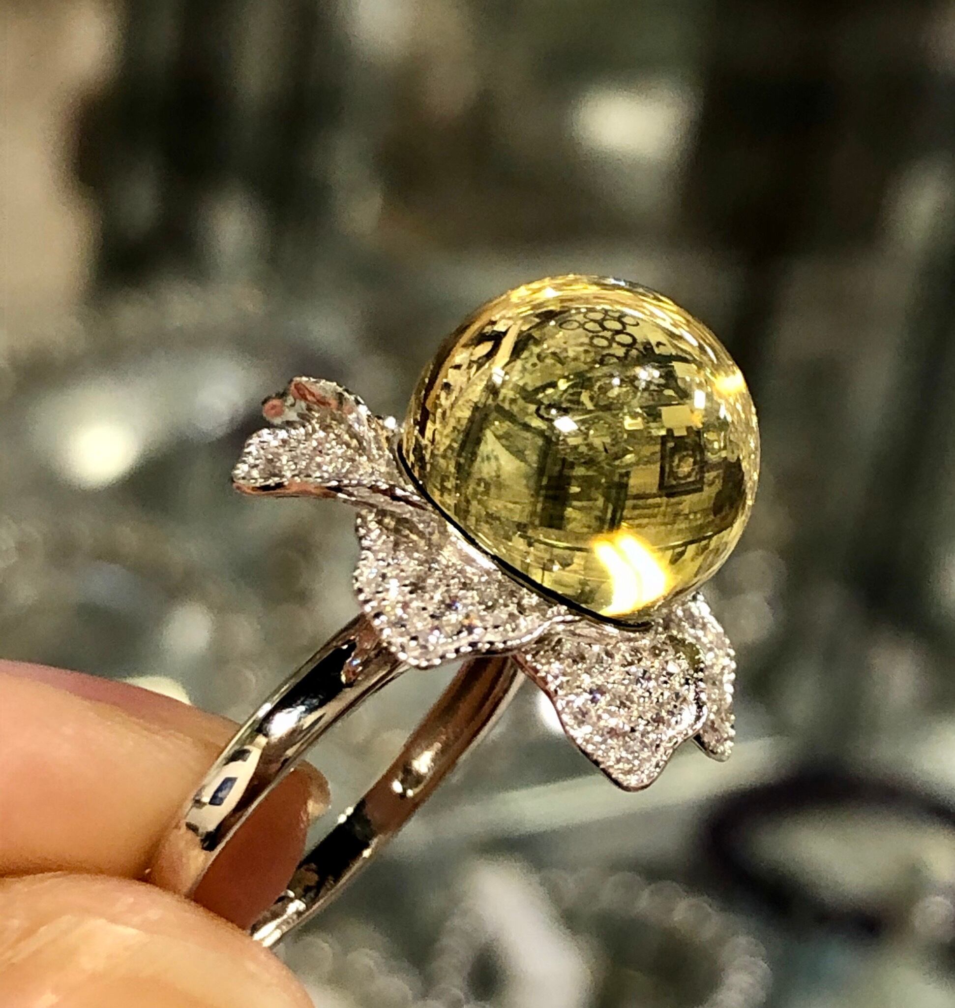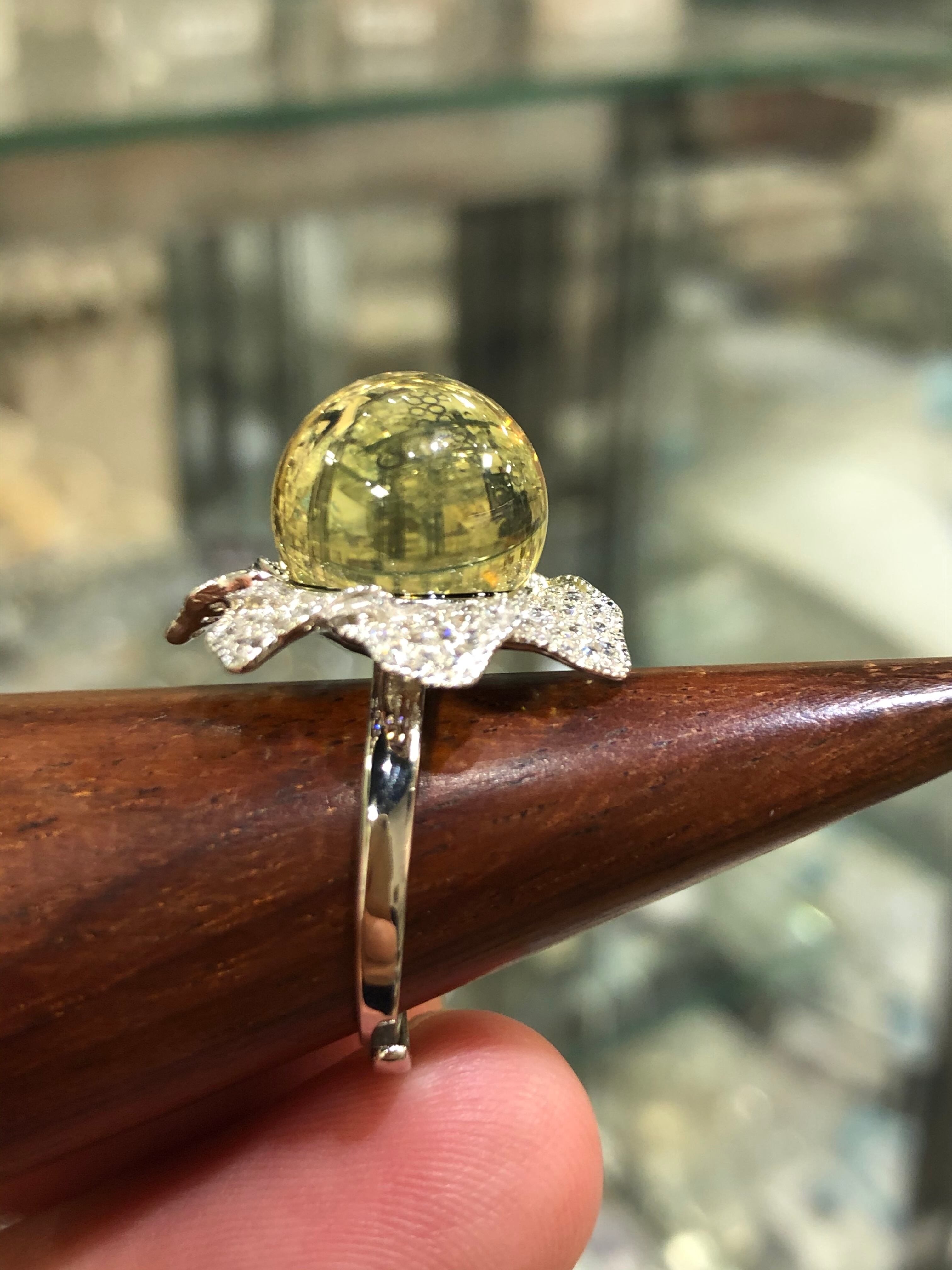 正真正銘のドミニカ共和国・サンピアゴ産、天然ブルーアンバー(青琥珀)指輪です。ハイグレード のブルーアンバーを使用しています。