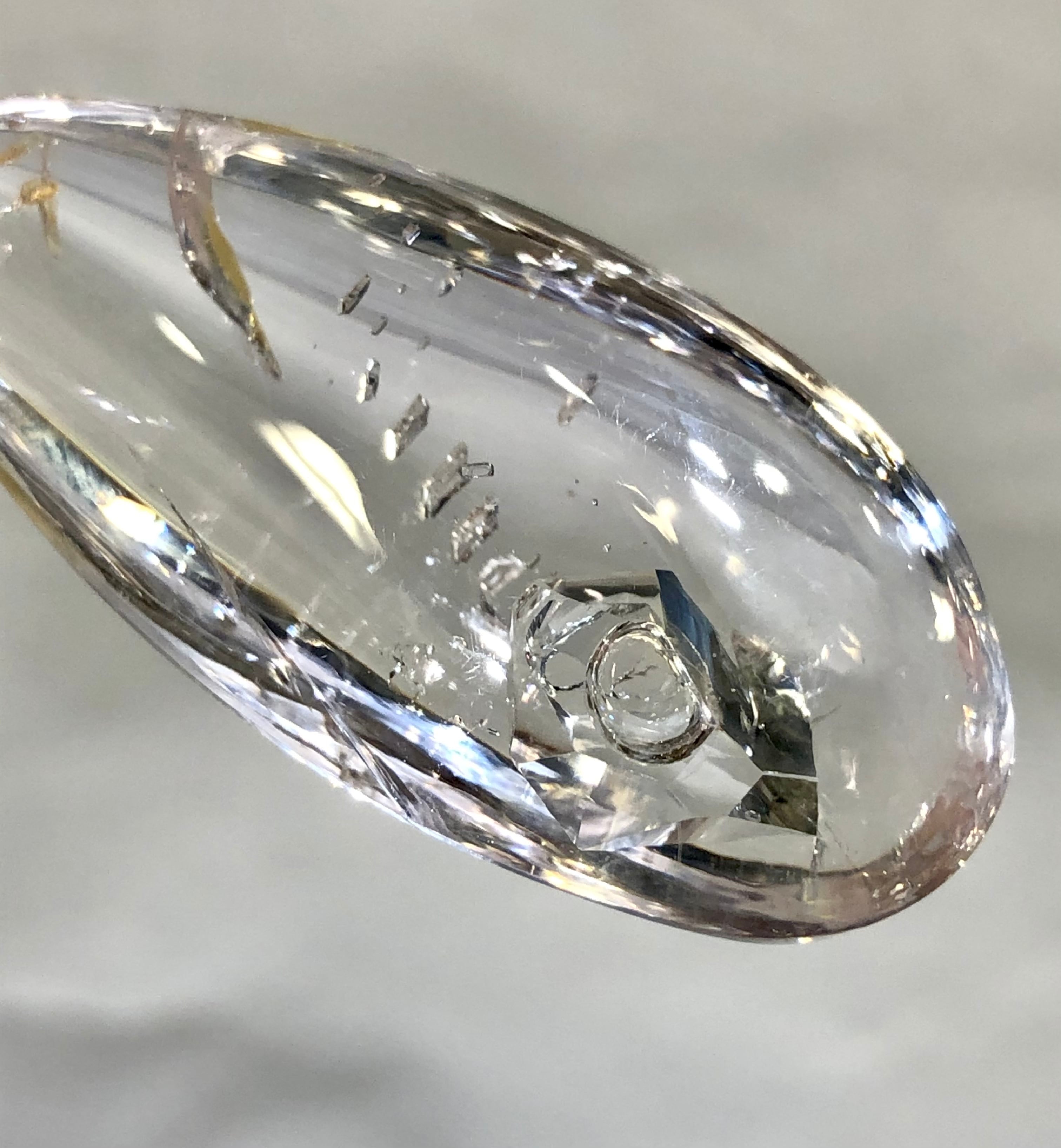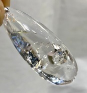 水晶の中でも強靭なパワーを持つのが水入り水晶と言われ、太古の水が閉じ込められたものは大変貴重で「ウォータードロップクォーツ」「ウォーターインクォーツ」と呼ばれ、特別視されています。窪みに閉じ込められたその水は、何千年前か何億年前のものだといわれております。