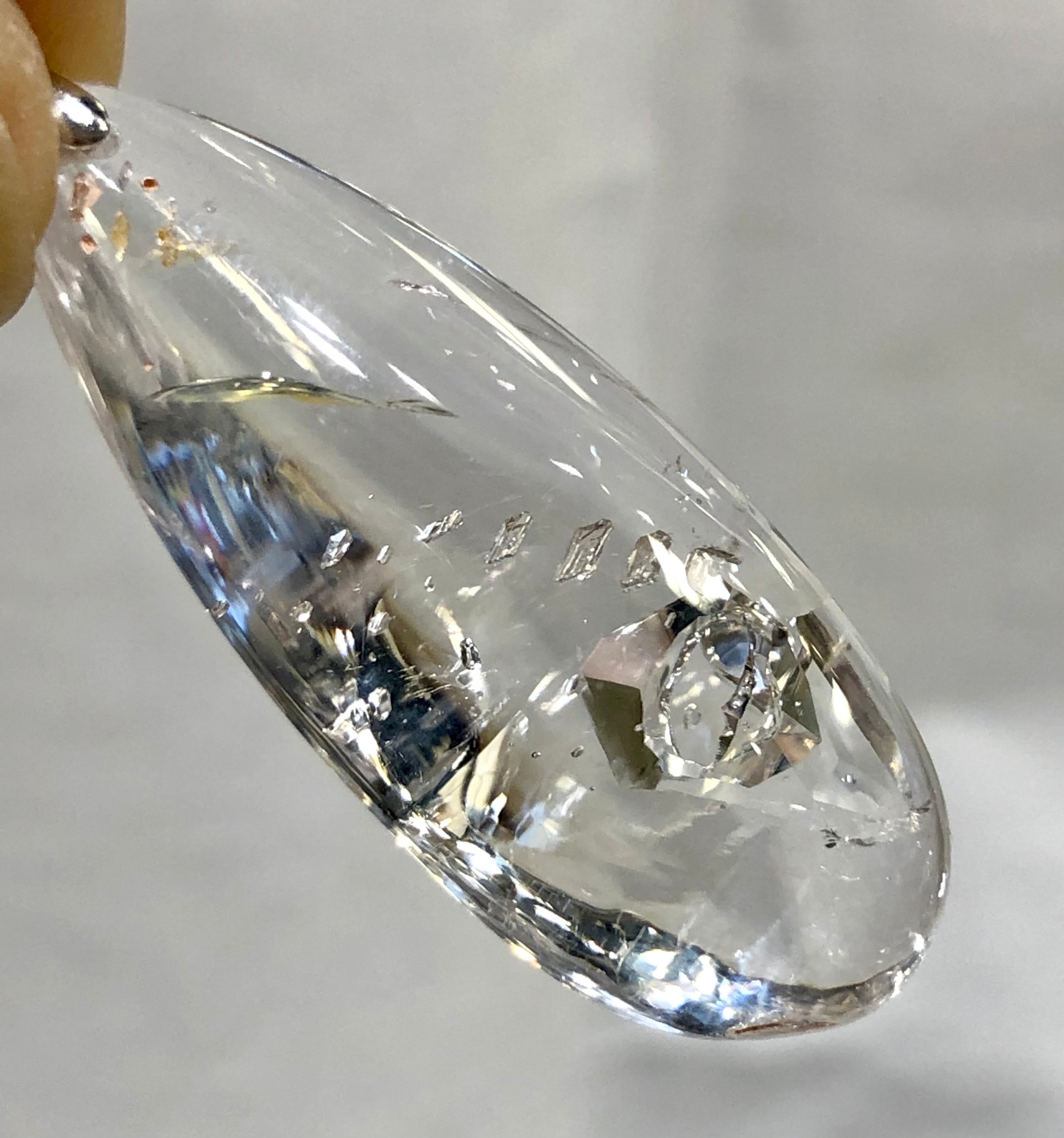 厳選!宝石質!虹入り!水入り水晶ペンダント エッチドチューブ入り☆古代水