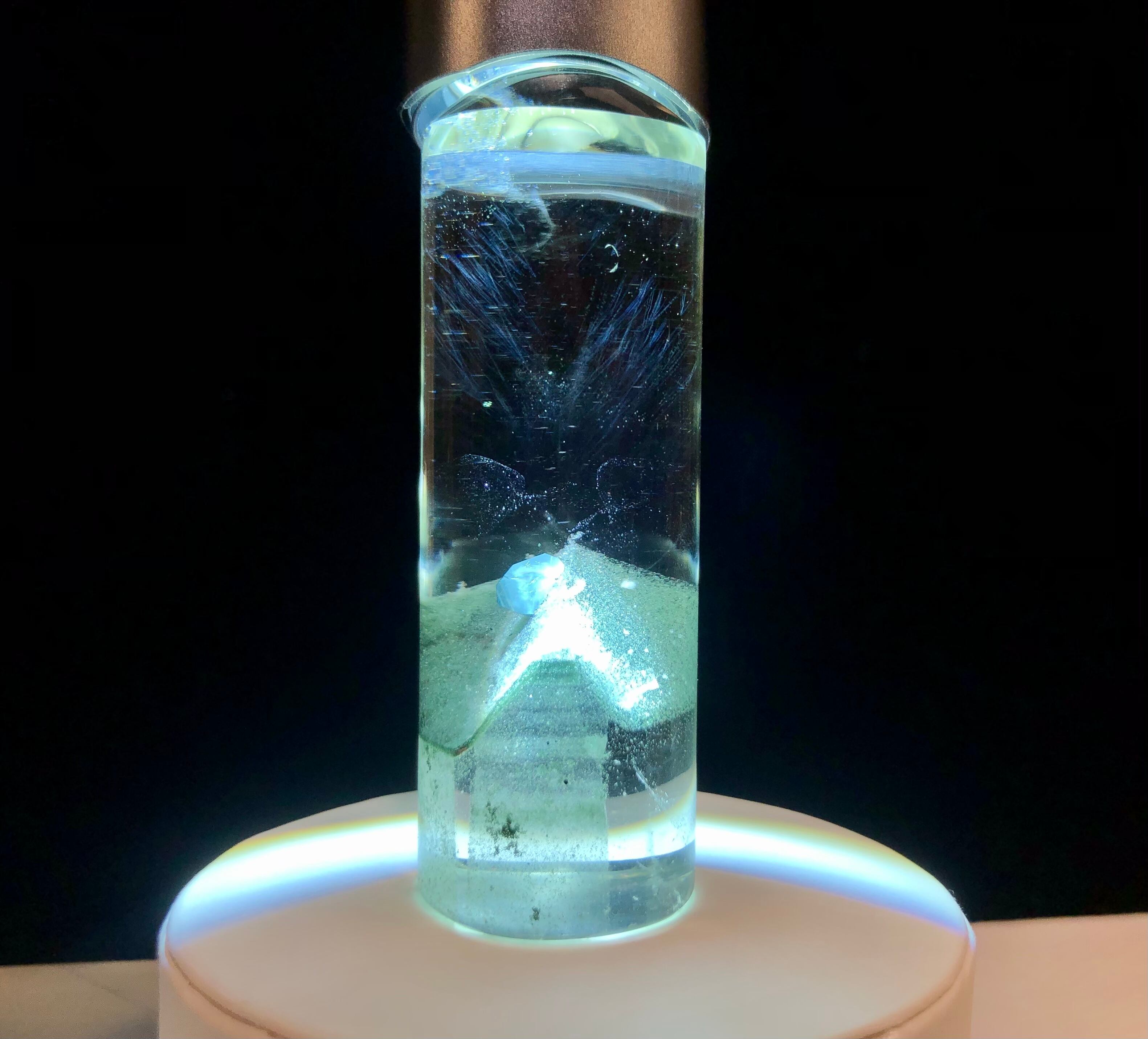 一見すると透明でシンプルな水晶ですが、光を照射することで水晶内部にブルーのラダーが天使の梯子のように浮き上がる現象が、まるで天界へと繋がっているはしごのような、そんな印象を与えるので、そのように呼ばれているそうです。