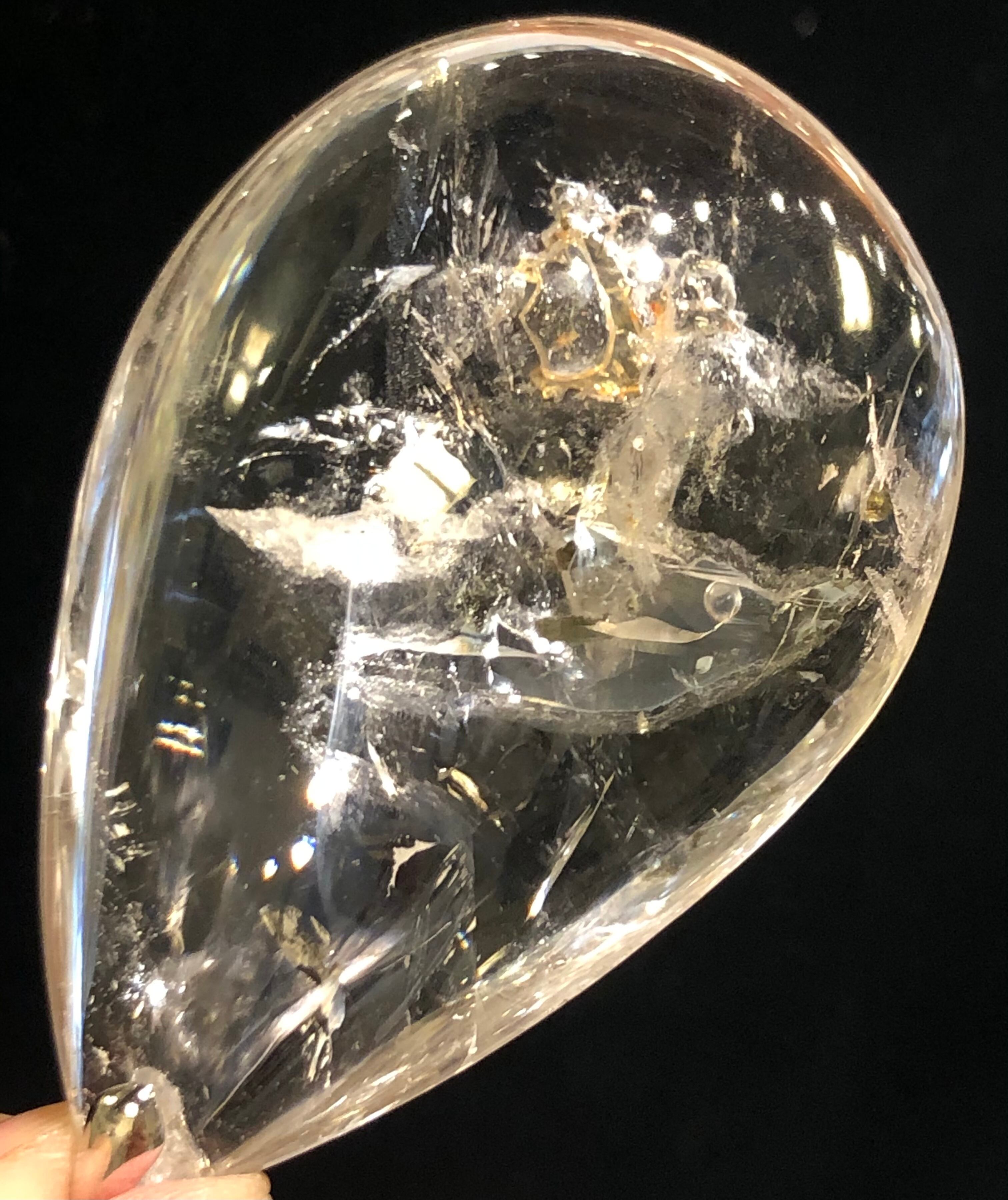 水晶の中でも強靭なパワーを持つのが水入り水晶と言われ、太古の水が閉じ込められたものは大変貴重で「ウォータードロップクォーツ」「ウォーターインクォーツ」と呼ばれ、特別視されています。窪みに閉じ込められたその水は、何千年前か何億年前のものだといわれております。
