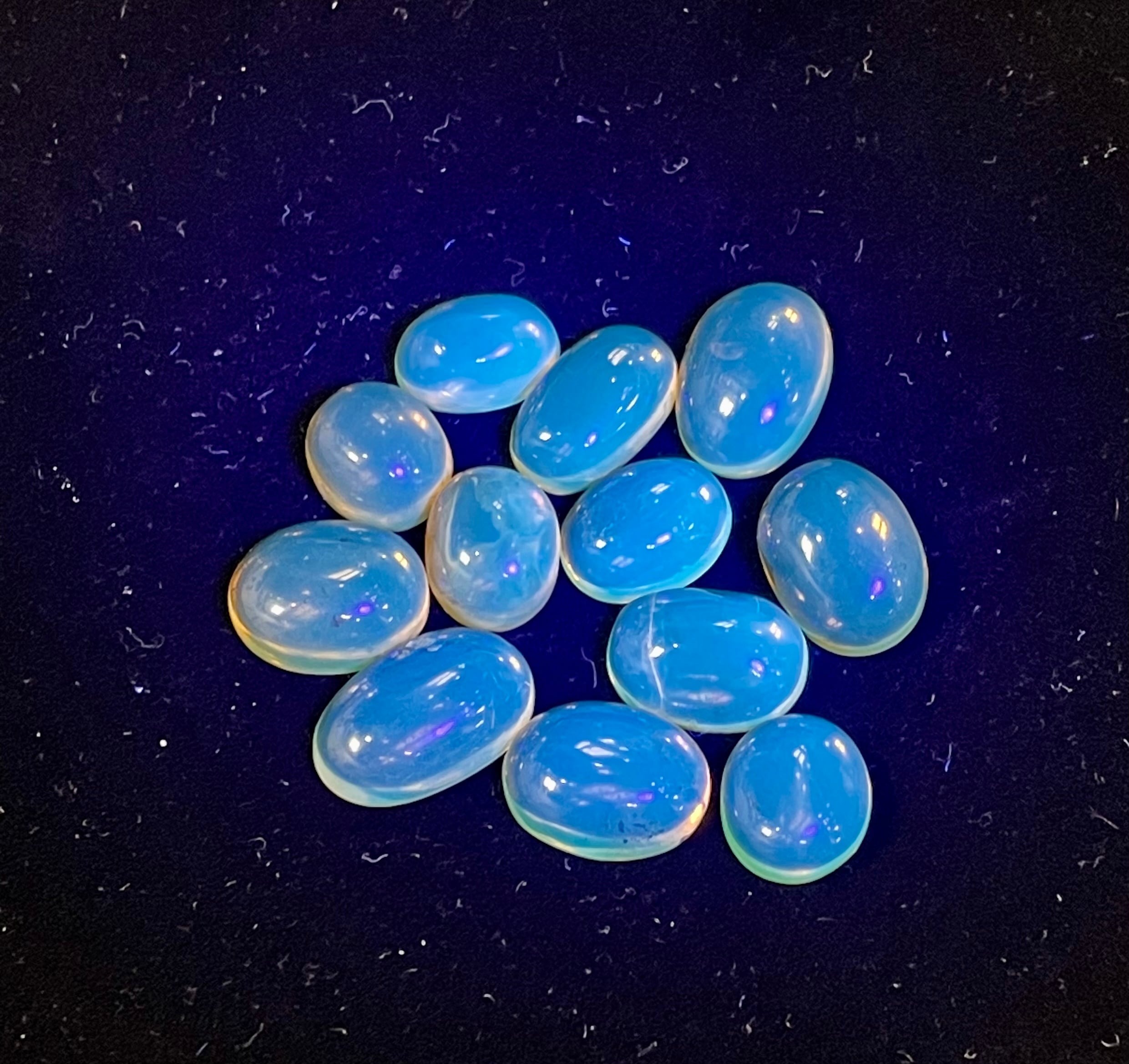 一見普通のアンバーとはなんら変りはないですが、太陽光やブラックライトなどの紫外線が当たると神秘的な美しいブルー光が表面を覆います。