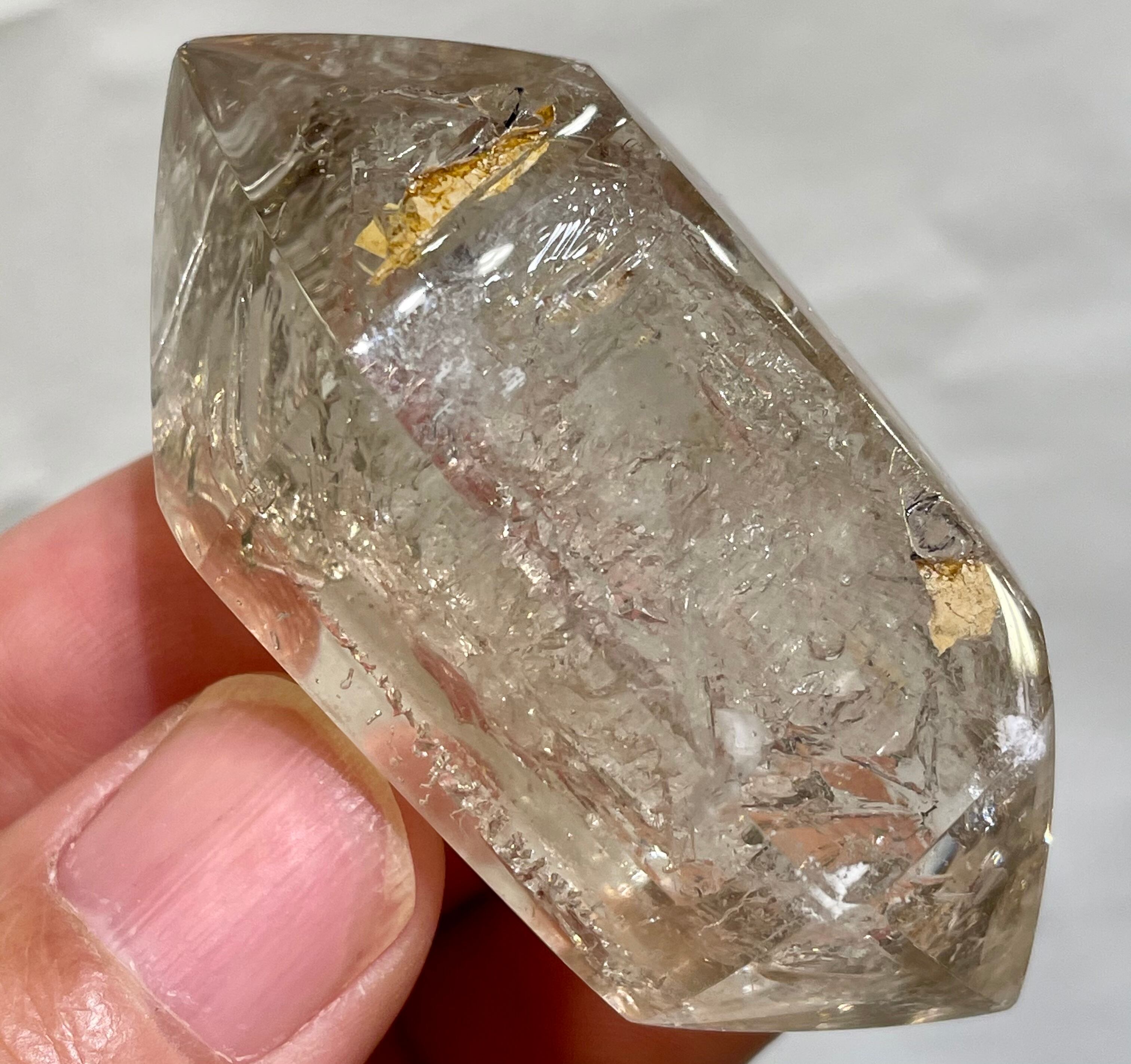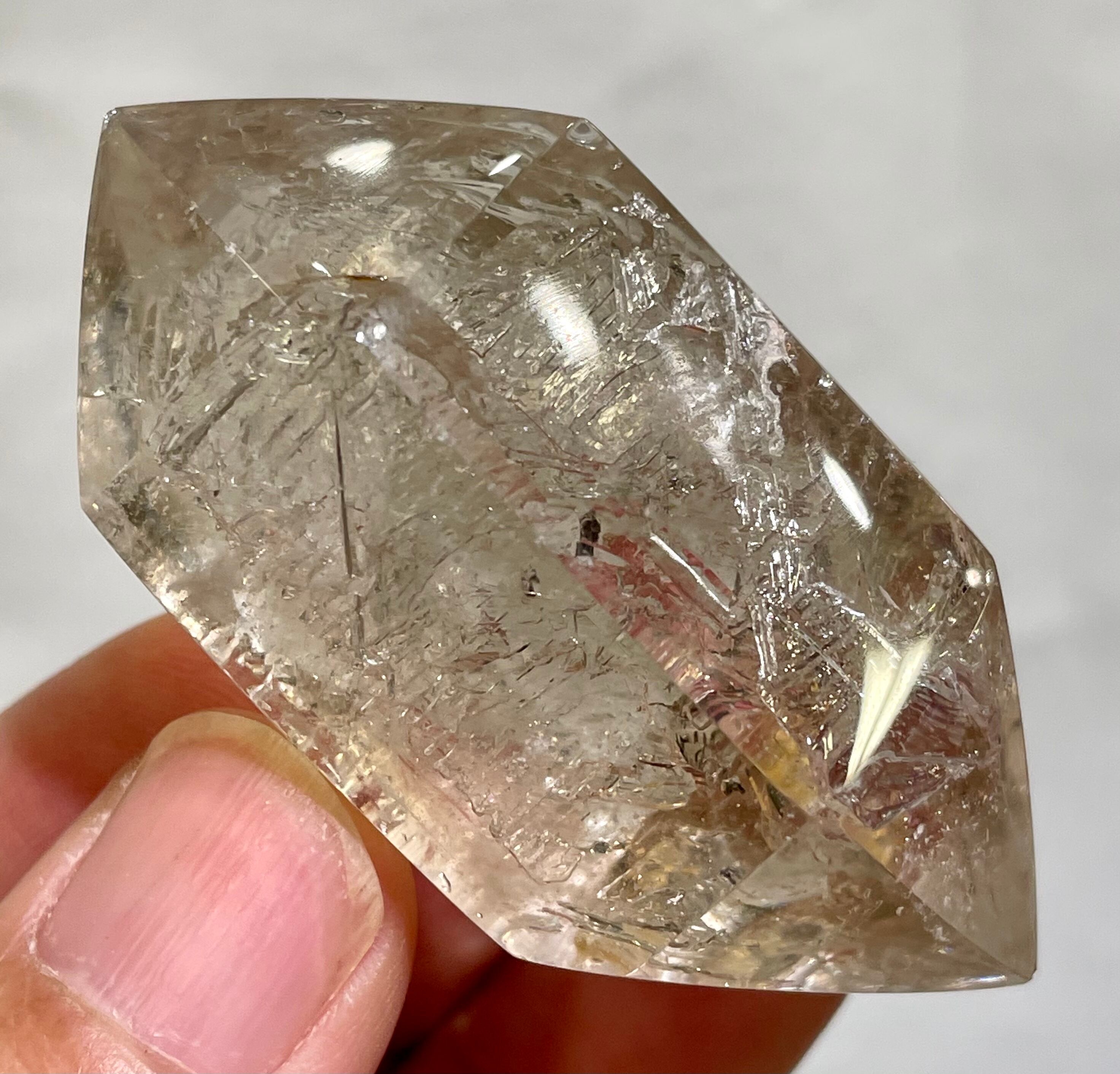 このエレスチャルポイントは、非常に高い光沢感と透明感が特徴で、内部に見られる骸晶や形など、エレスチャルの見本とも言える形状です。
