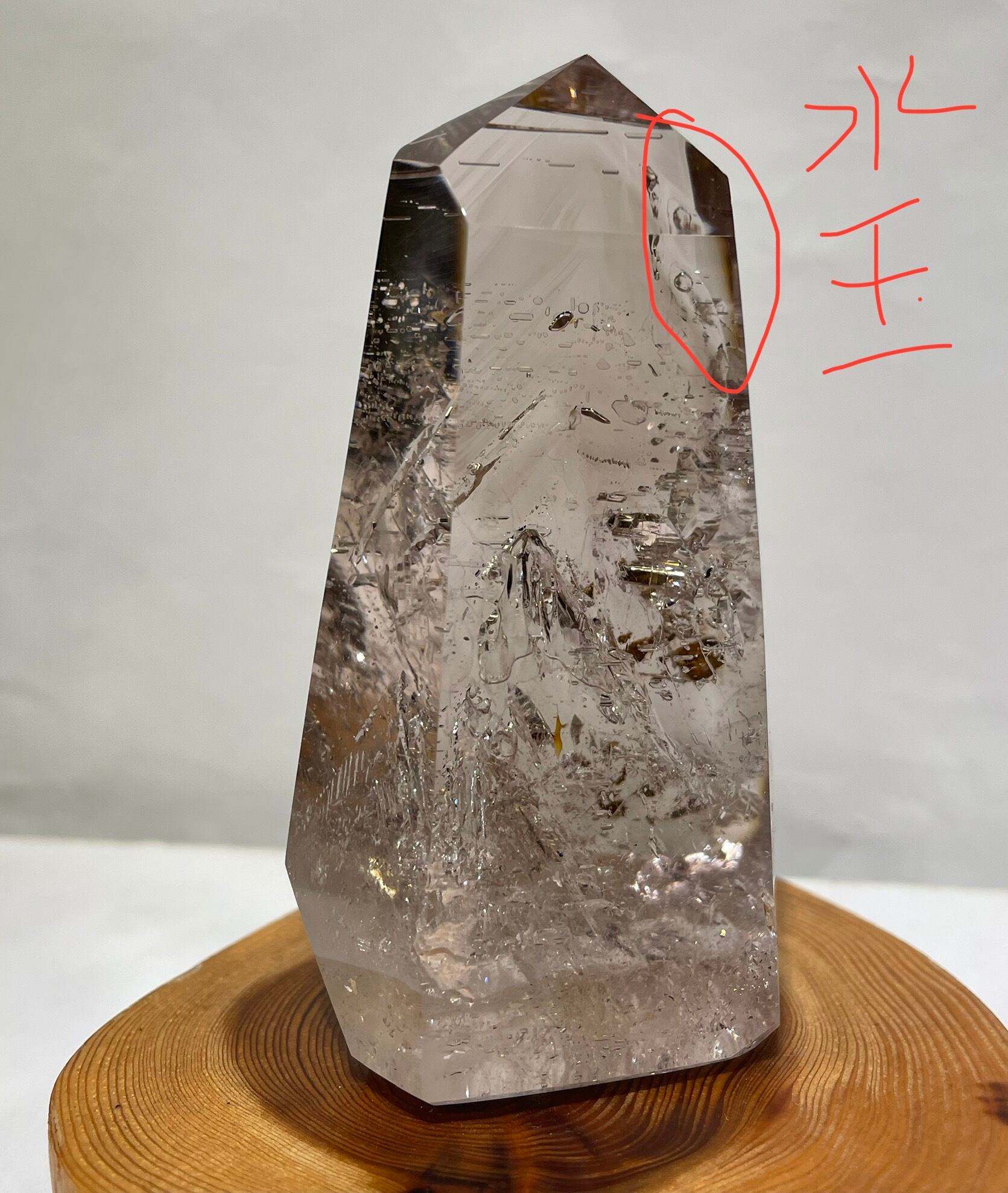 水晶を傾けて見ると水玉が動いているのがはっきり確認できます。 1か所水入っております。
