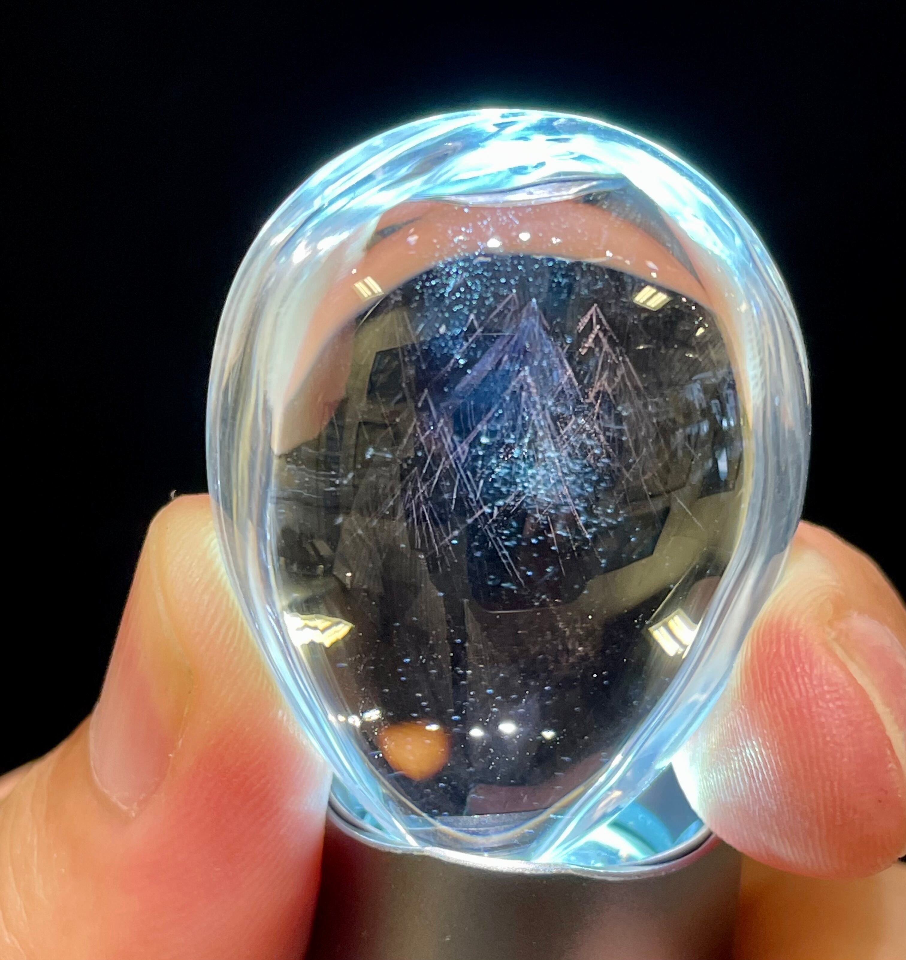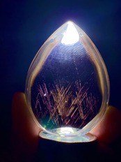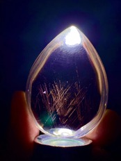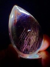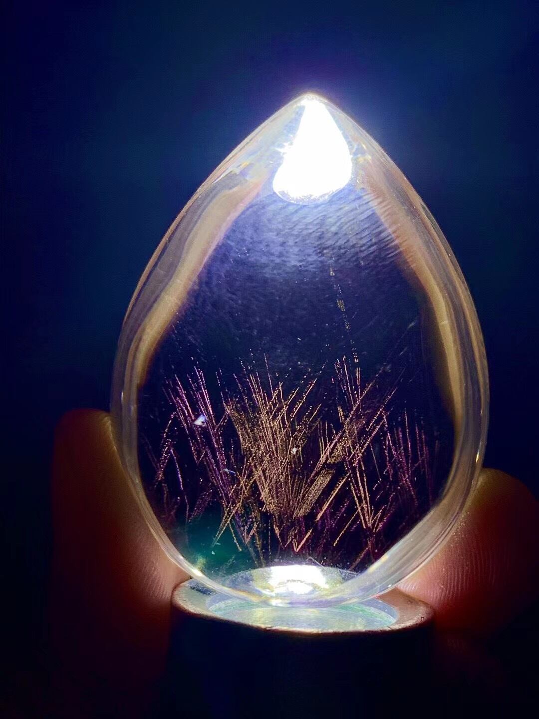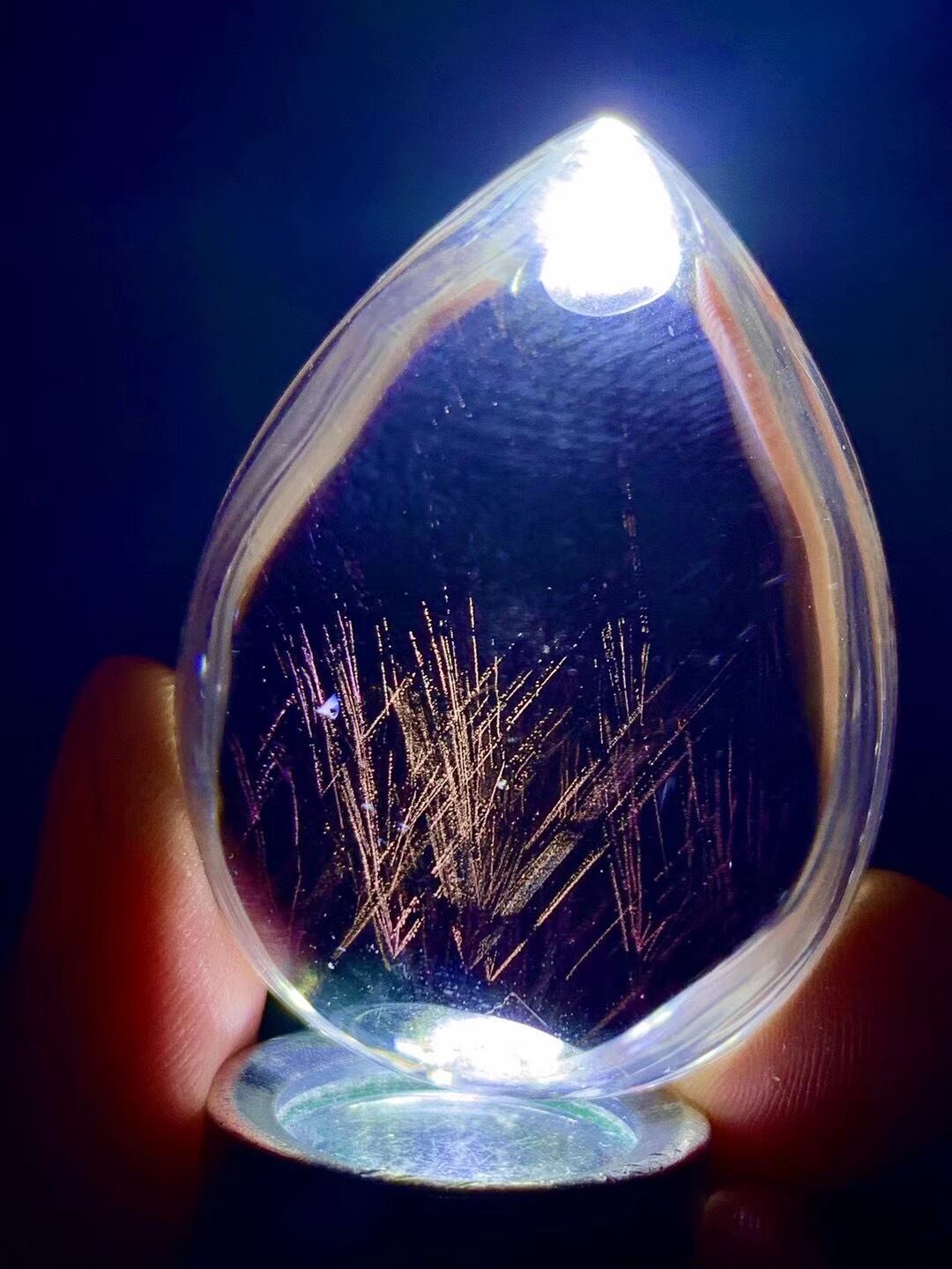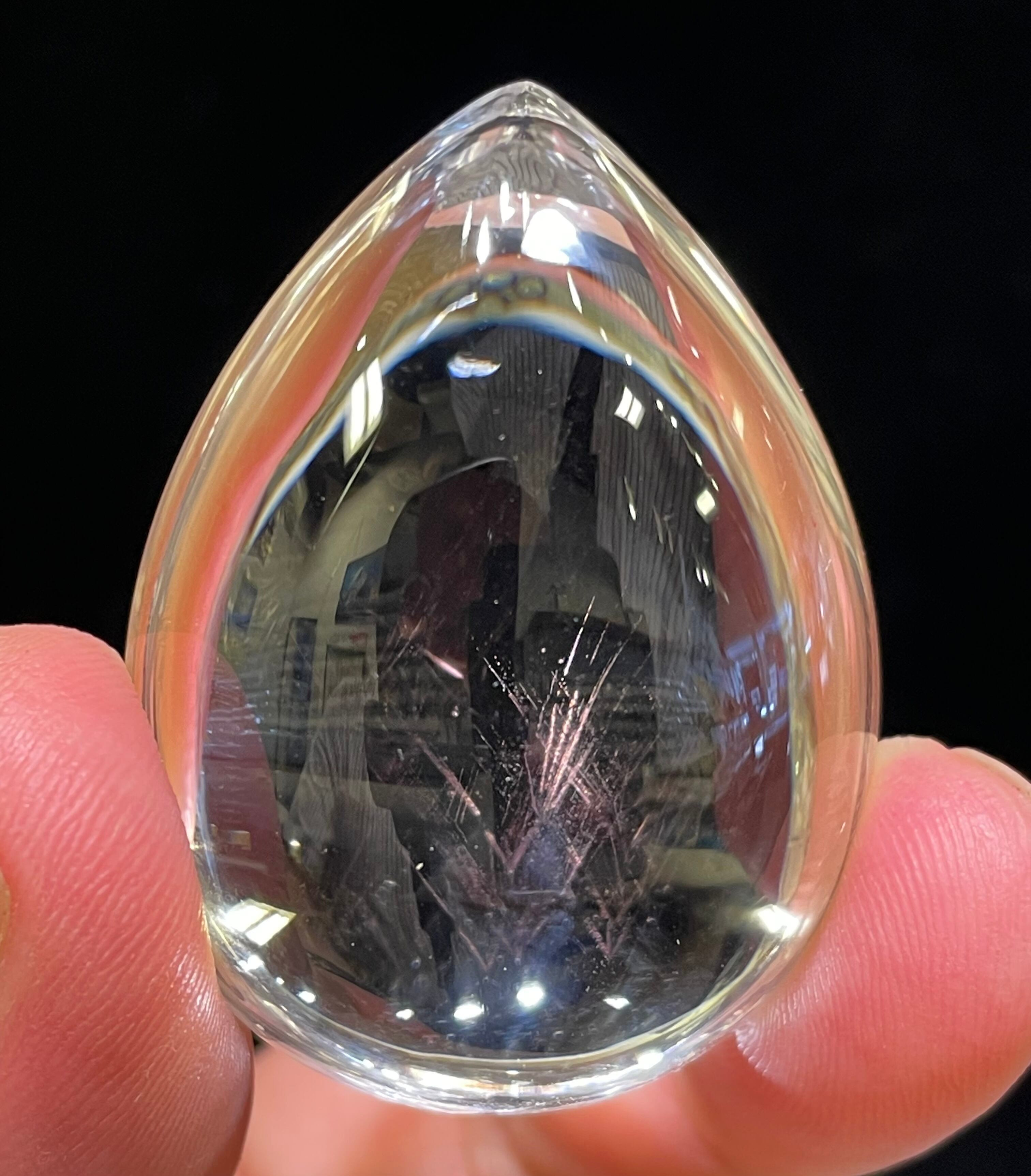 一見すると透明でシンプルな水晶ですが、光を照射することで水晶内部にピンクのラダーが流れ星のように浮き上がる素晴らしいお品です♪