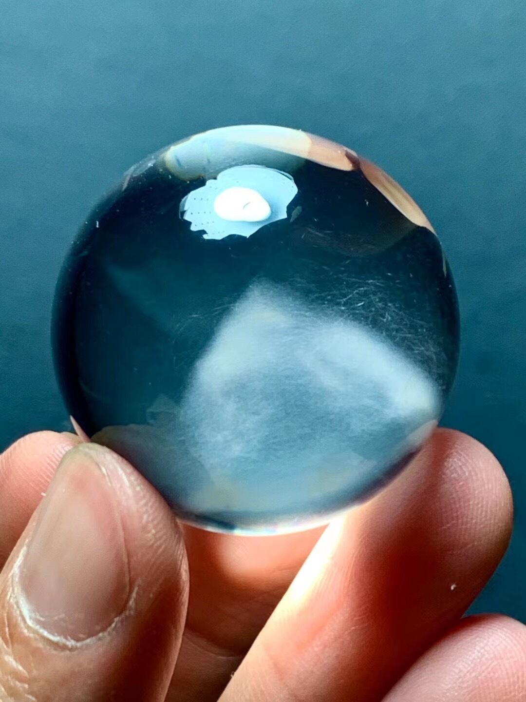 特選 レア! ラビットヘアー!ホワイトファントム水晶丸玉30.8mm(幻影水晶)