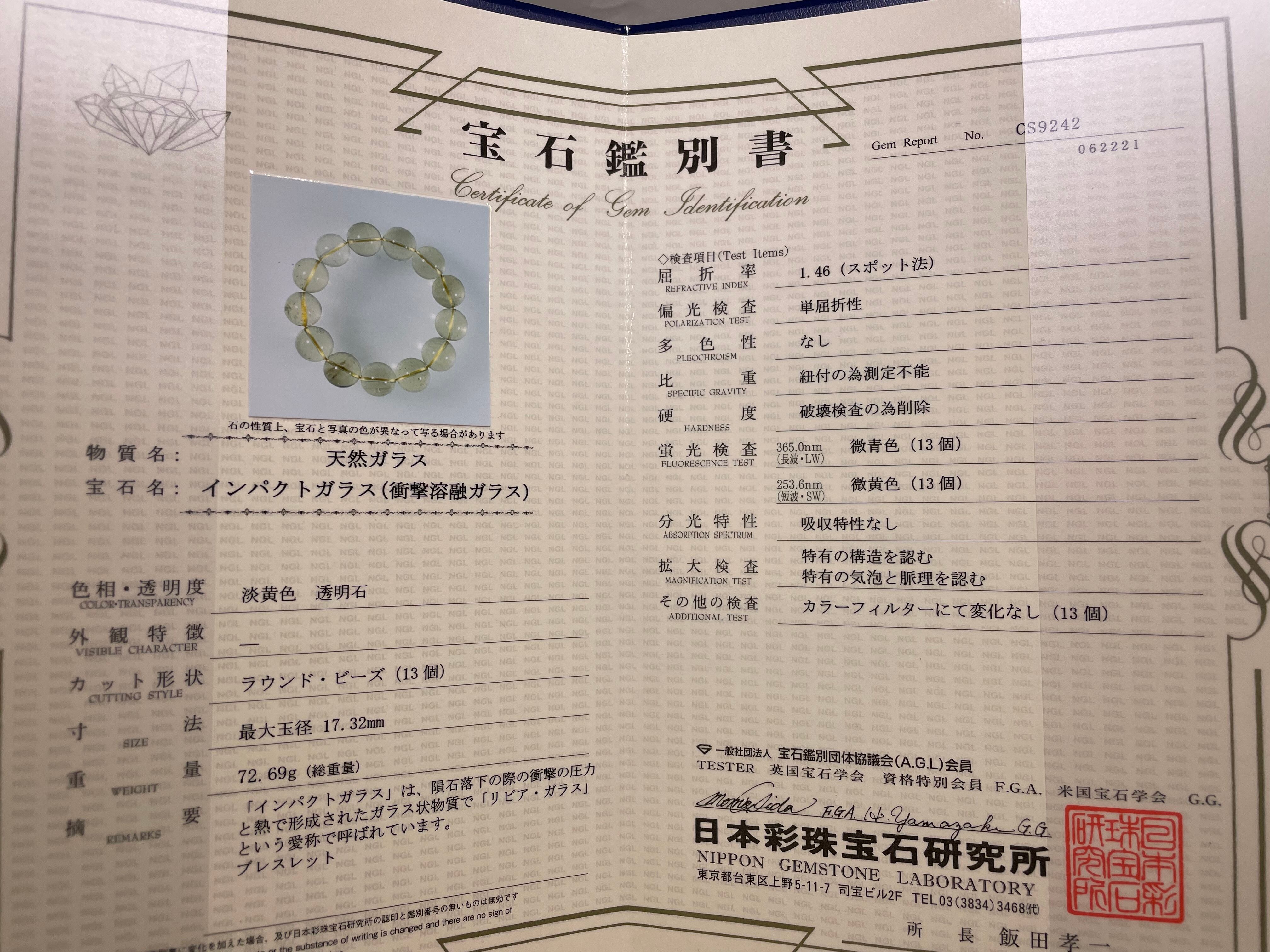 日本彩珠宝石研究所(日本)発行の鑑別書付きです。