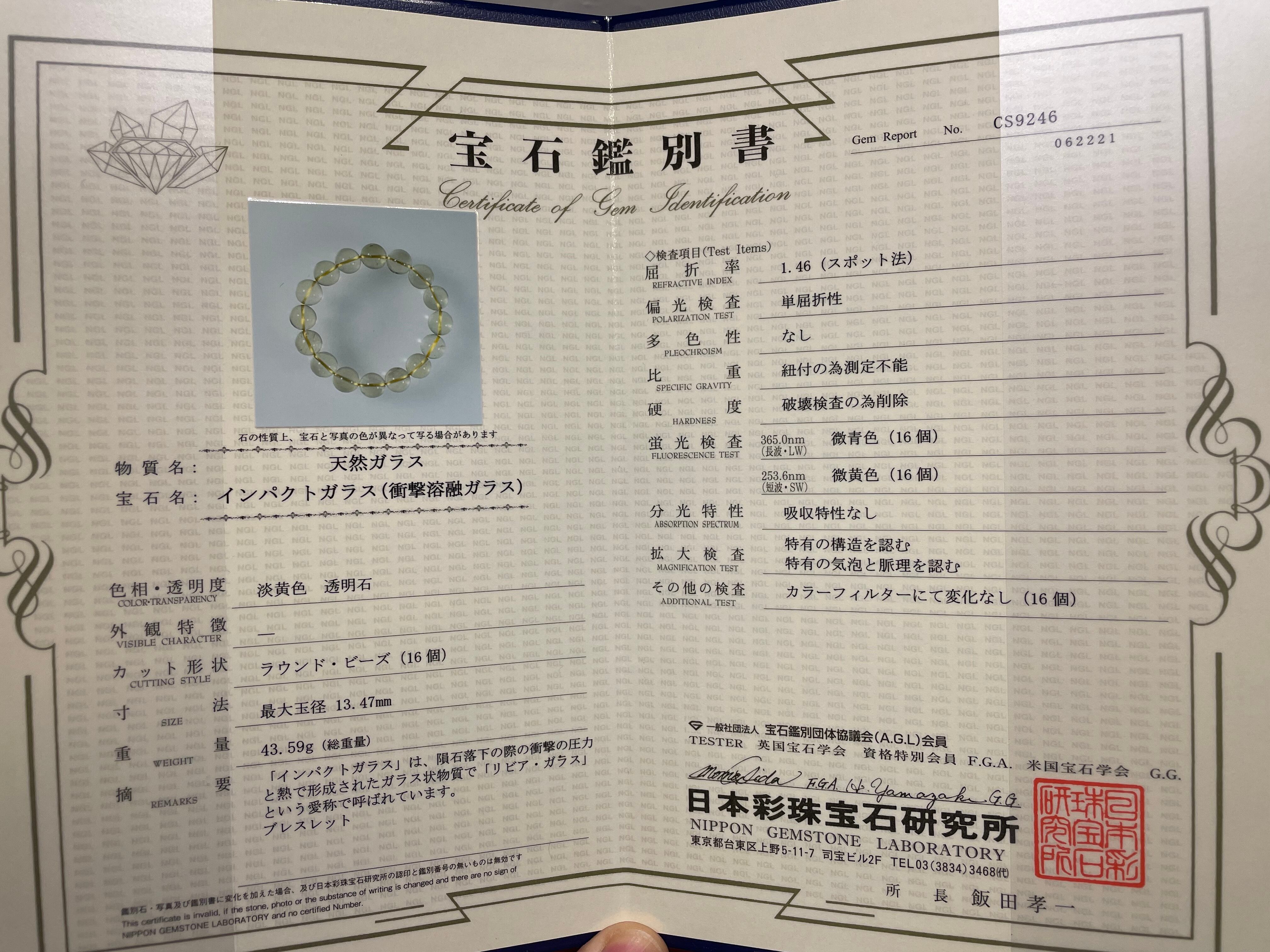 プレミアム!最高グレード!宝石質リビアングラスブレスレット 鑑別書付き