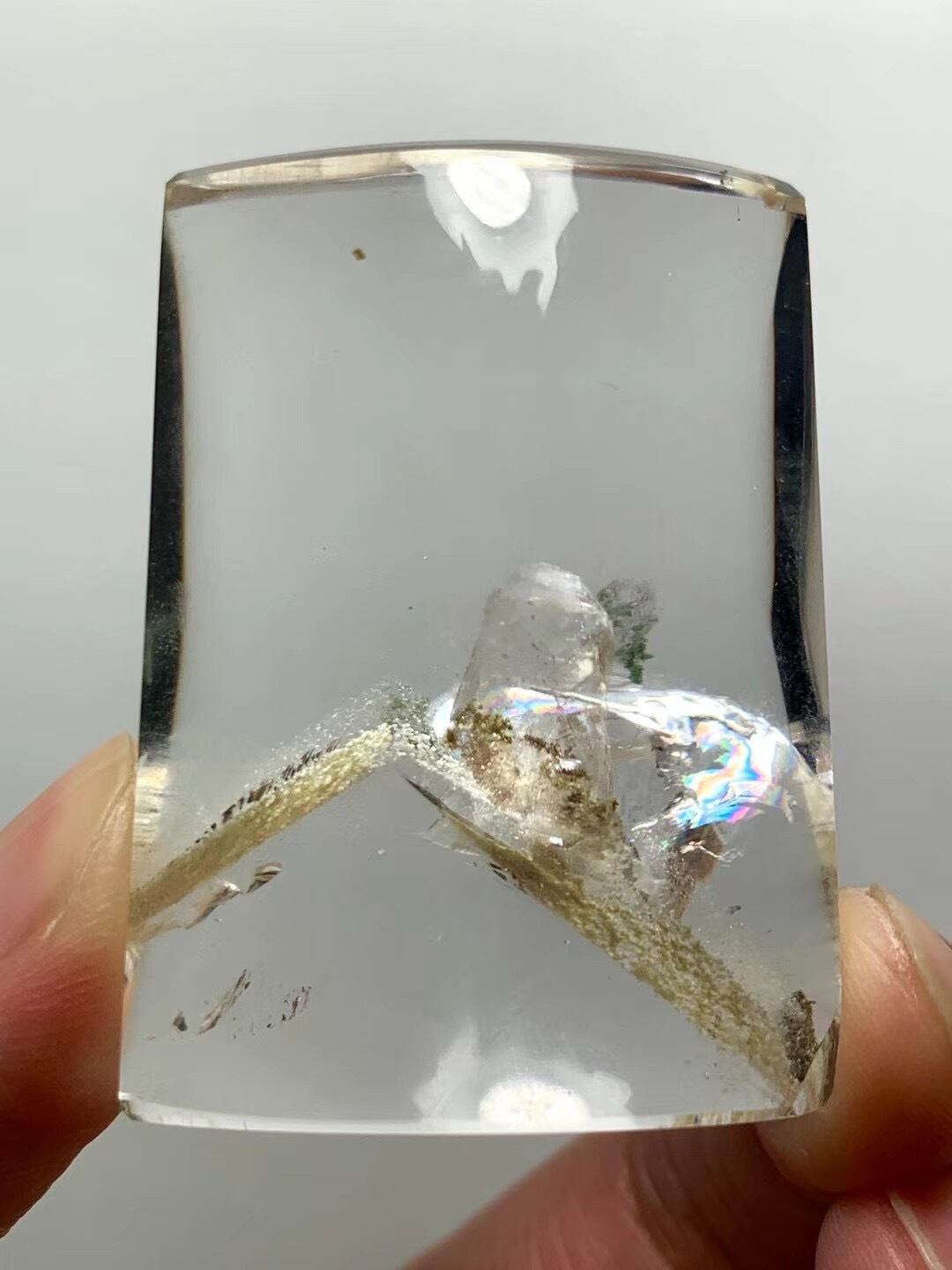 特選!虹入り!貫入水晶入り!宝石質ホワイトファントムクォーツ置物