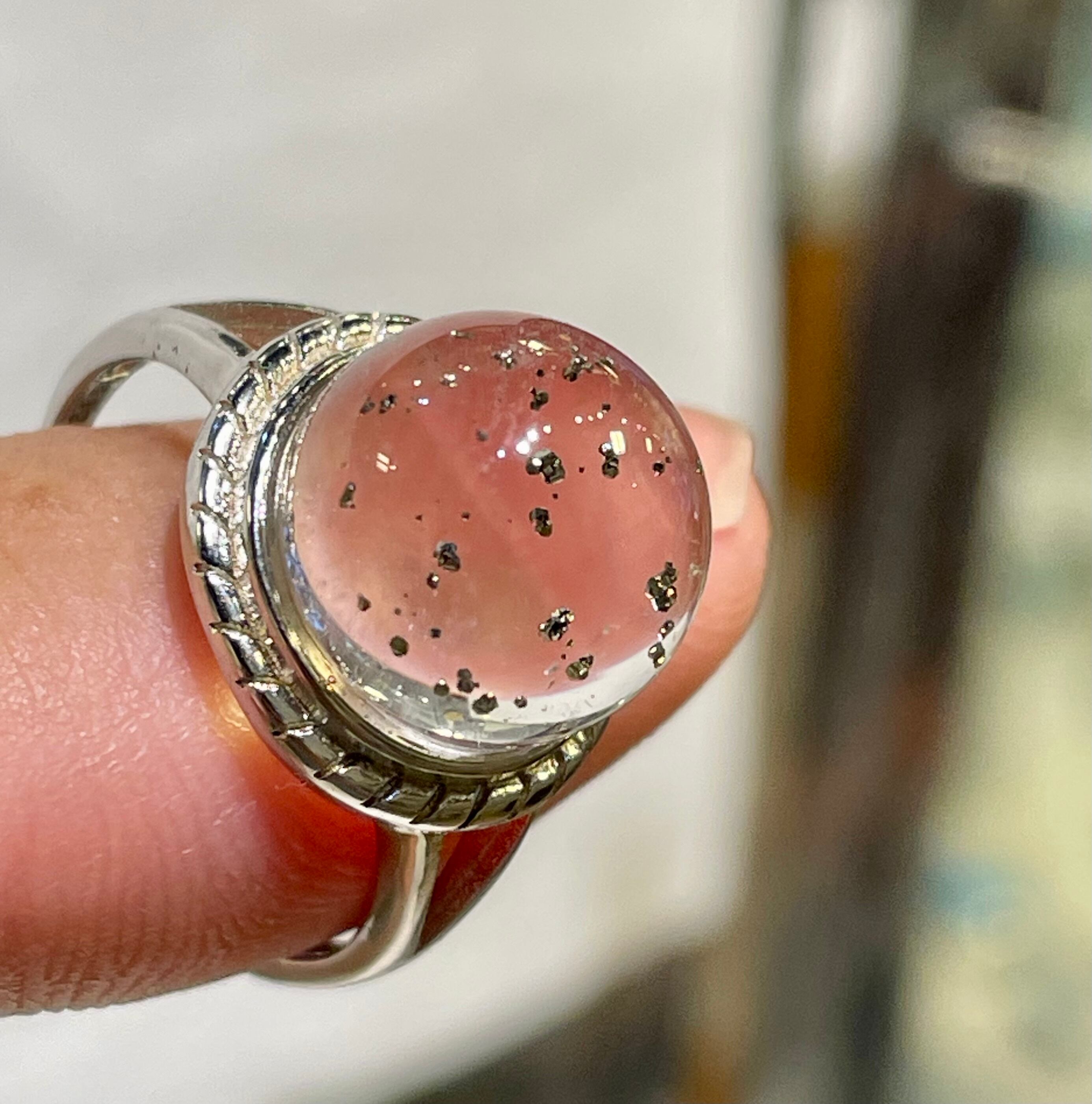 ハイグレード !宝石質のパイライトインクォーツ 指輪です。