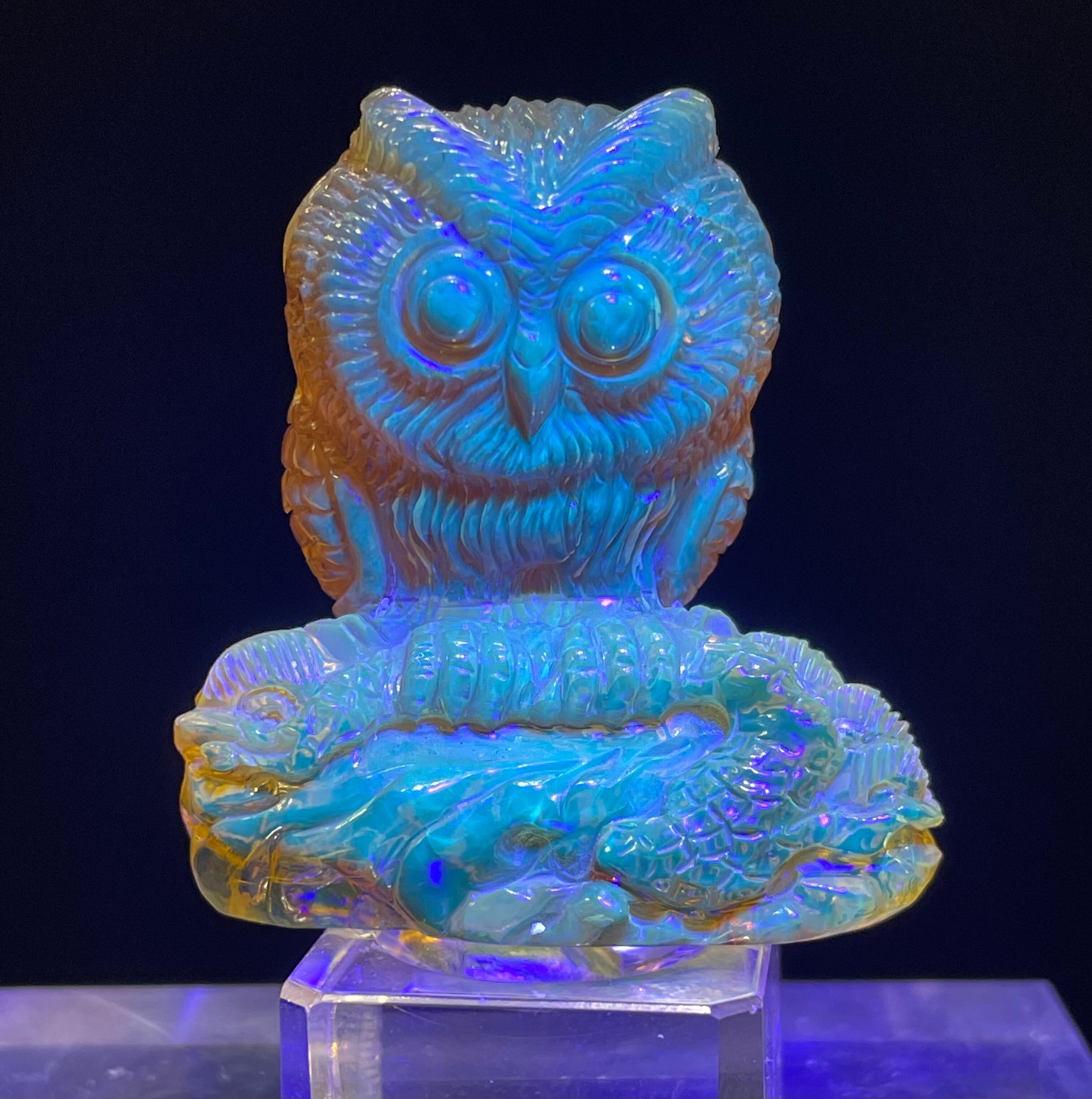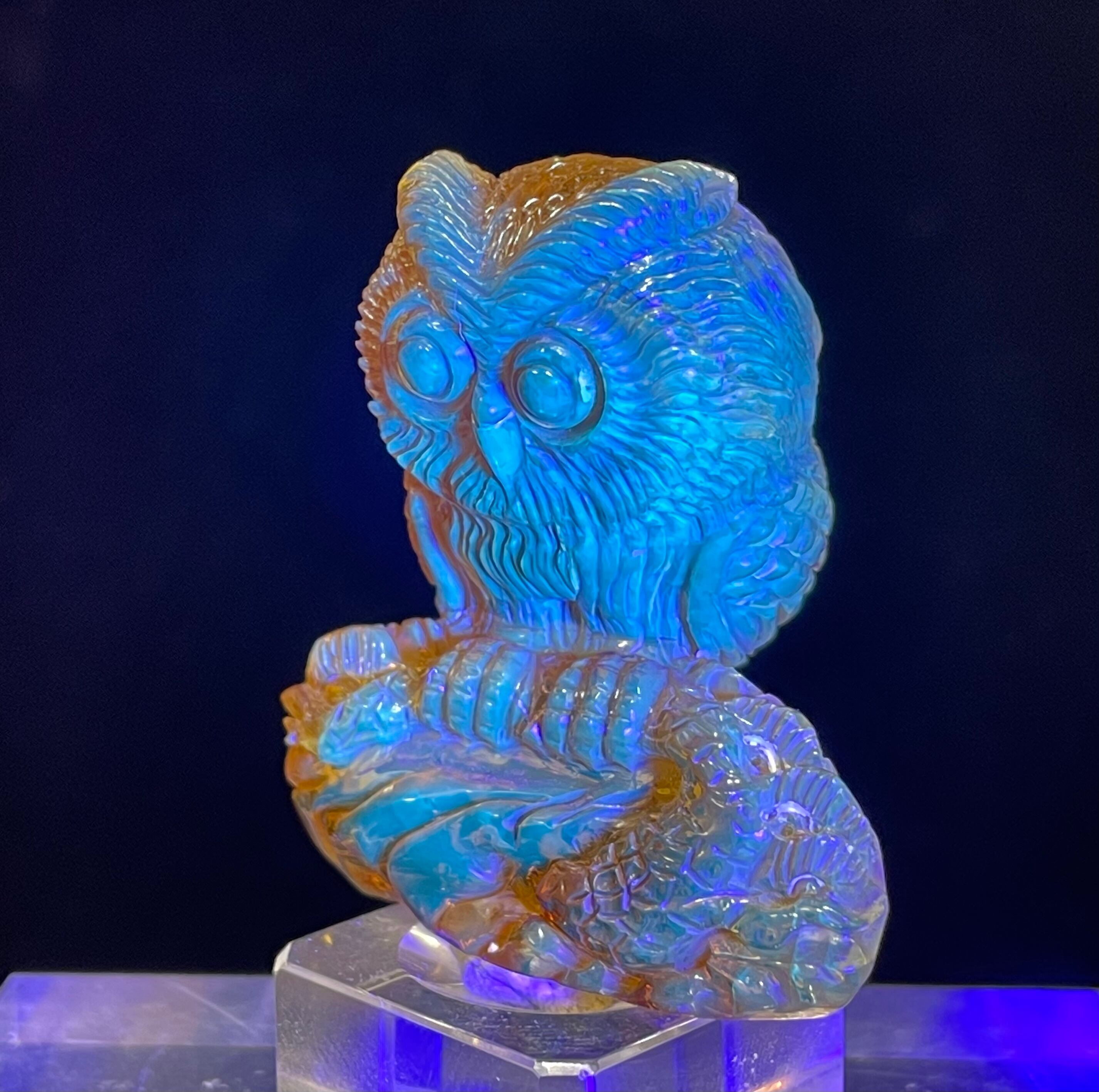 厳選!極上品 ドミニカ産 天然ブルーアンバー(琥珀)フクロウ 福郎 手彫り
