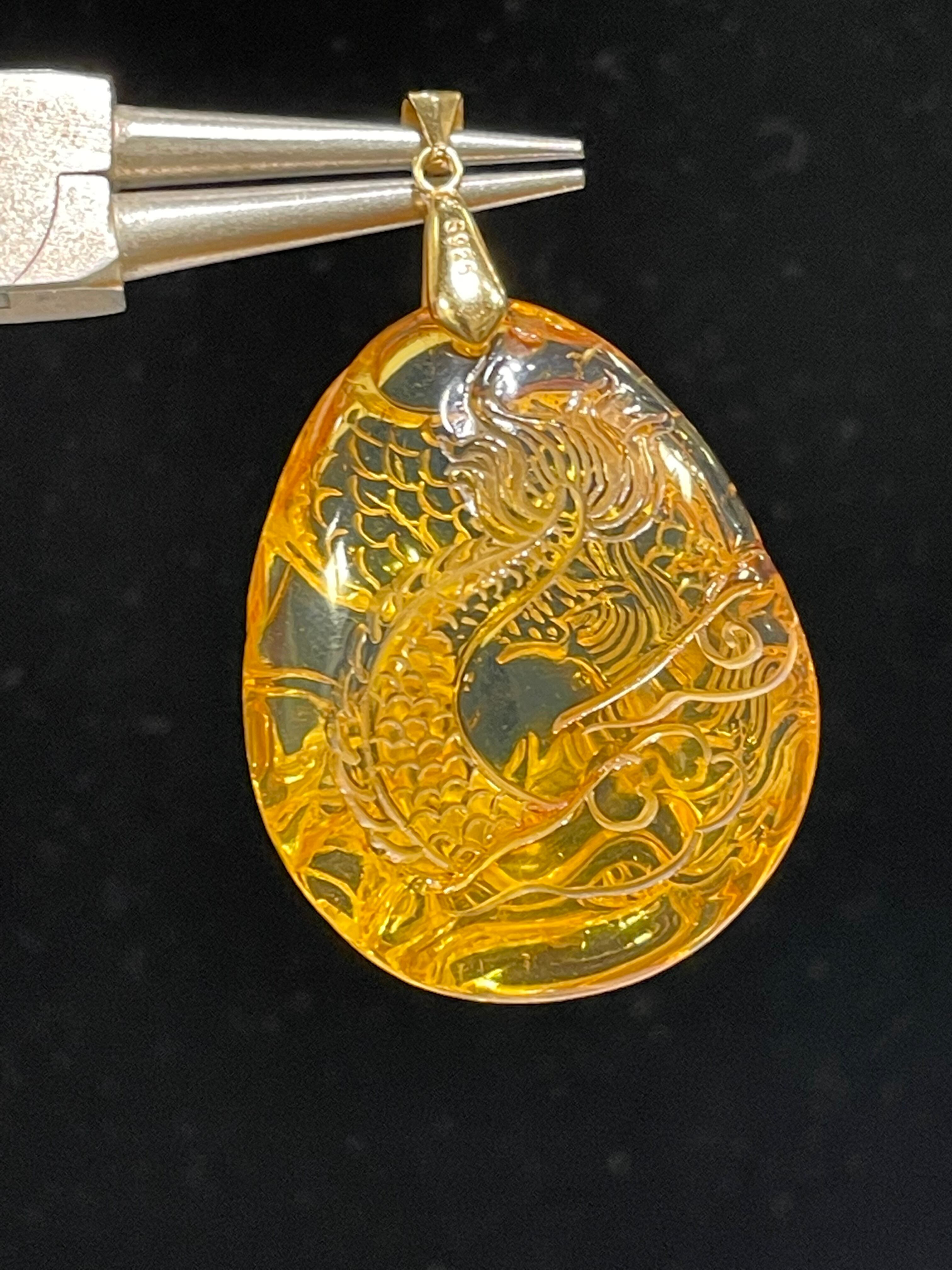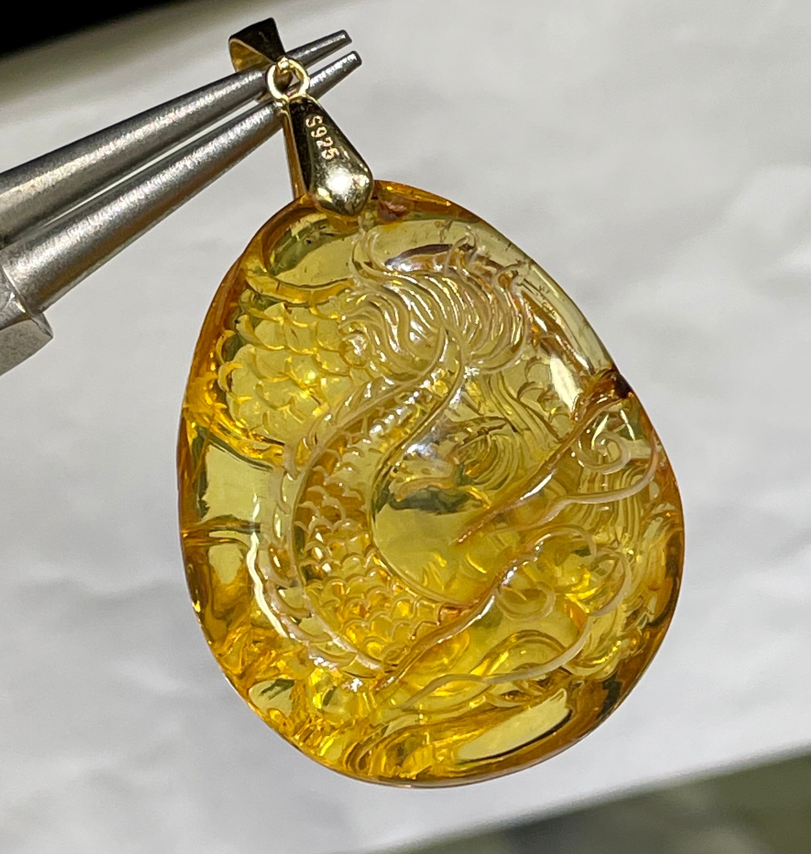 高品質激安セール ドミニカ産 天然ブルーアンバー 手彫り龍 ペンダントトップ