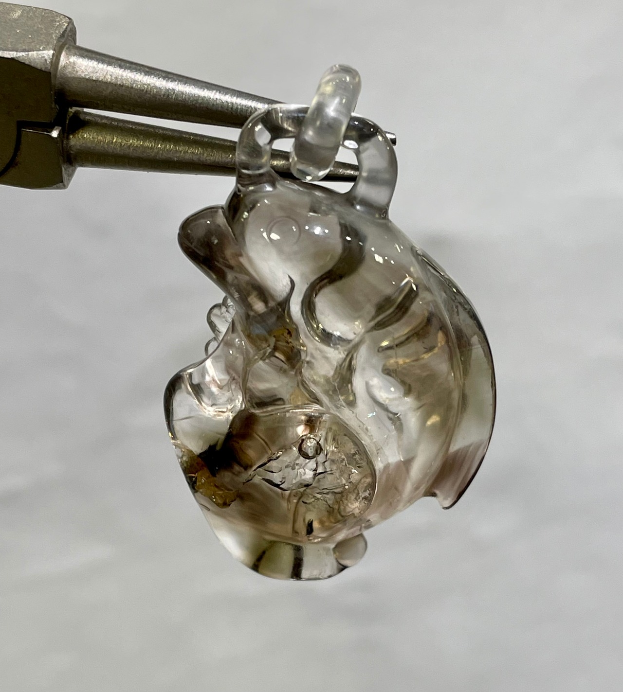 超レア!水玉入り!スモーキーエレスチャルを丁寧に彫刻して作ったイルカちゃんペンダントトップです。可愛い親子イルカちゃんです♪