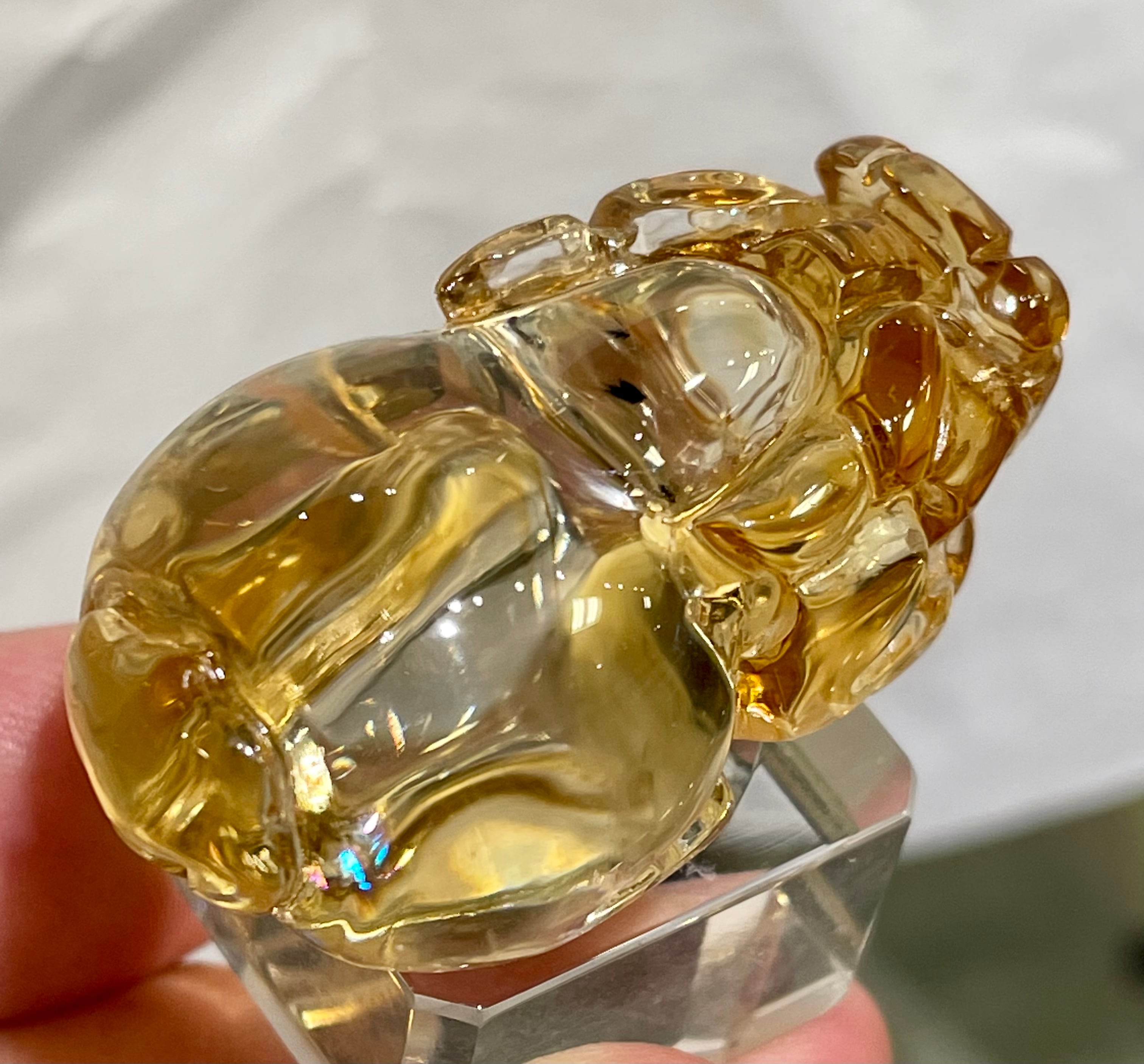 ファントム入り!虹入り!ロマネサイト入りの宝石質シトリンを丹精を込めて彫刻した天然シトリン貔貅ちゃんです。