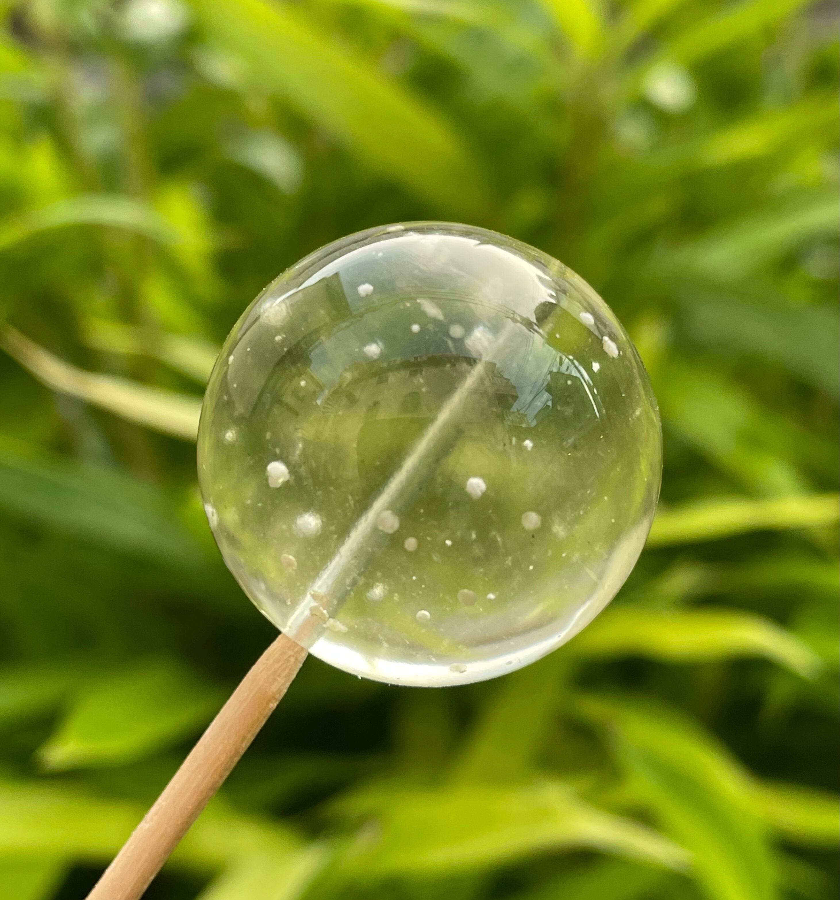 淡い黄色系が特徴であり、二酸化珪素(SiO2)の純度が98%で、黄緑、深緑、無色、乳白色等もあり気泡と内包物も良く含まれています。