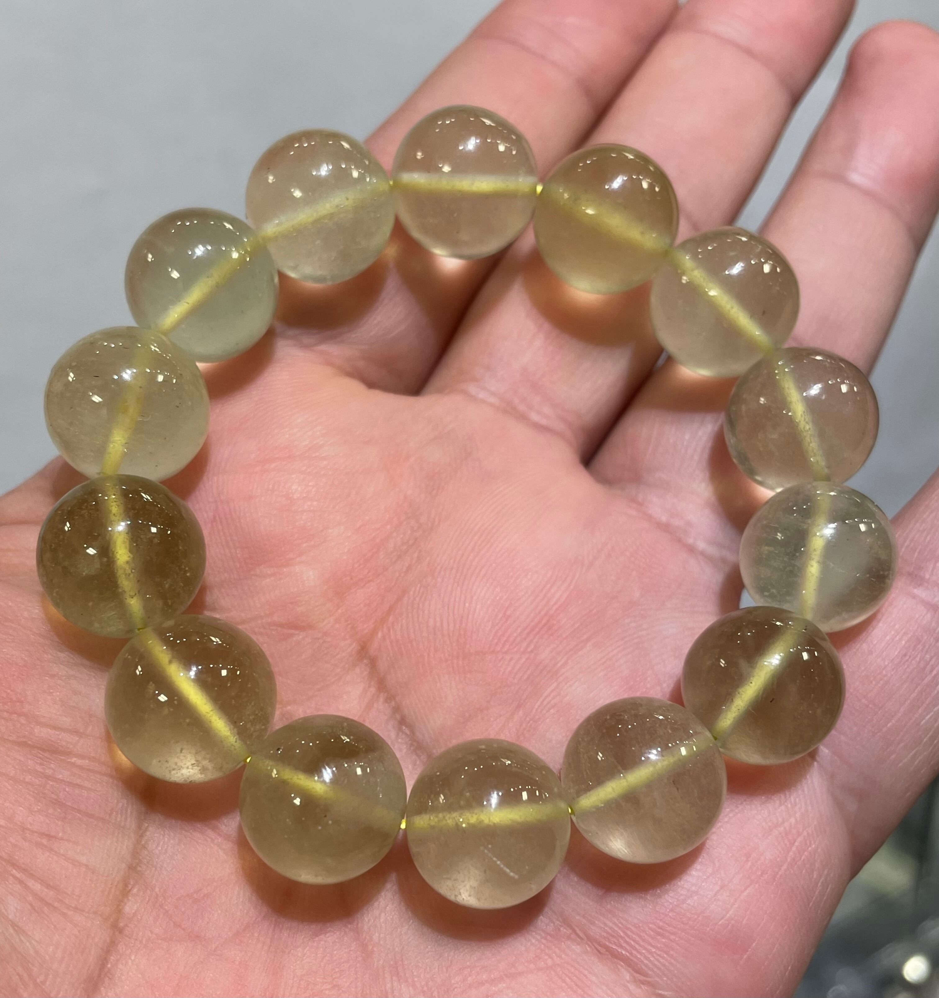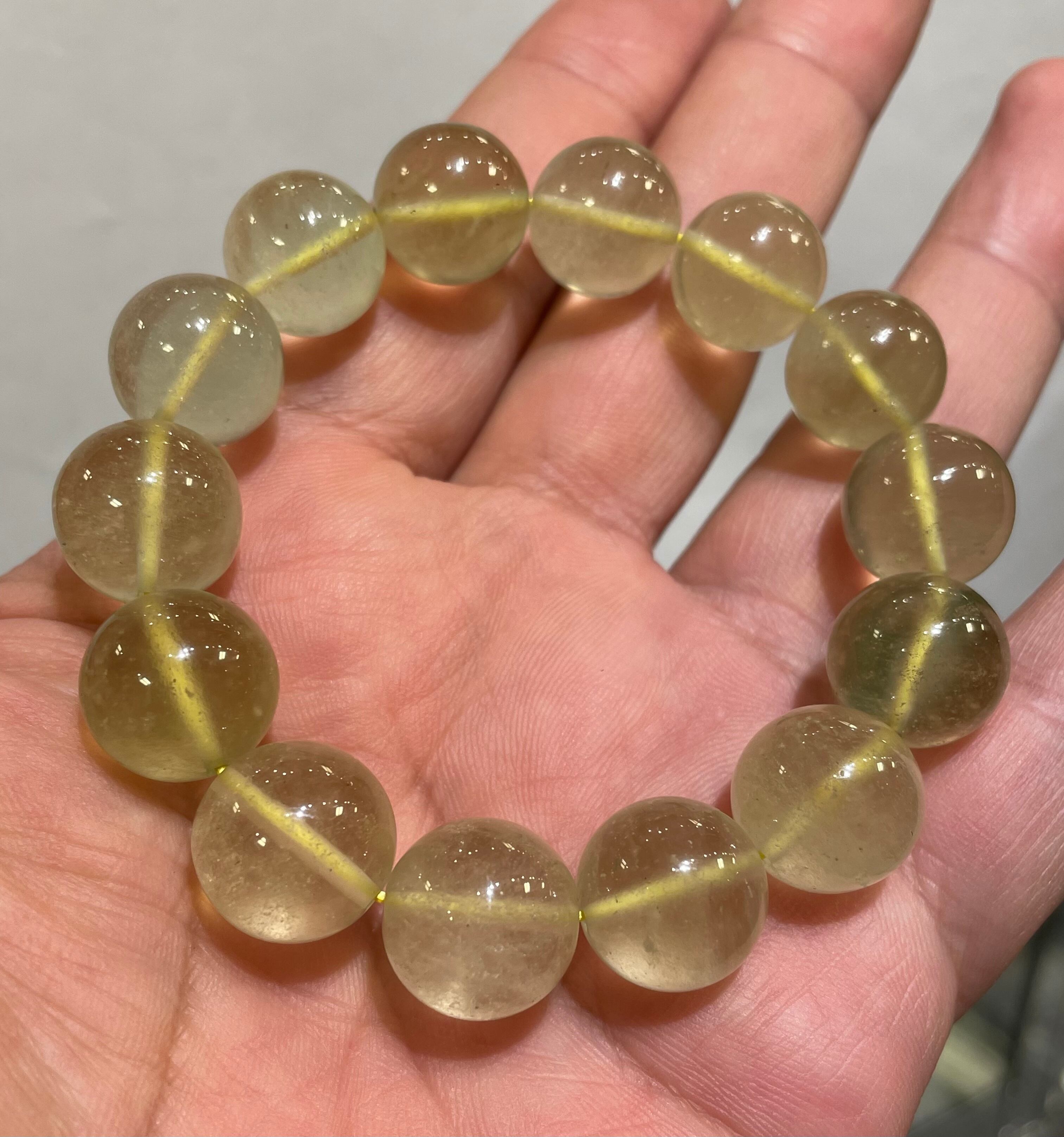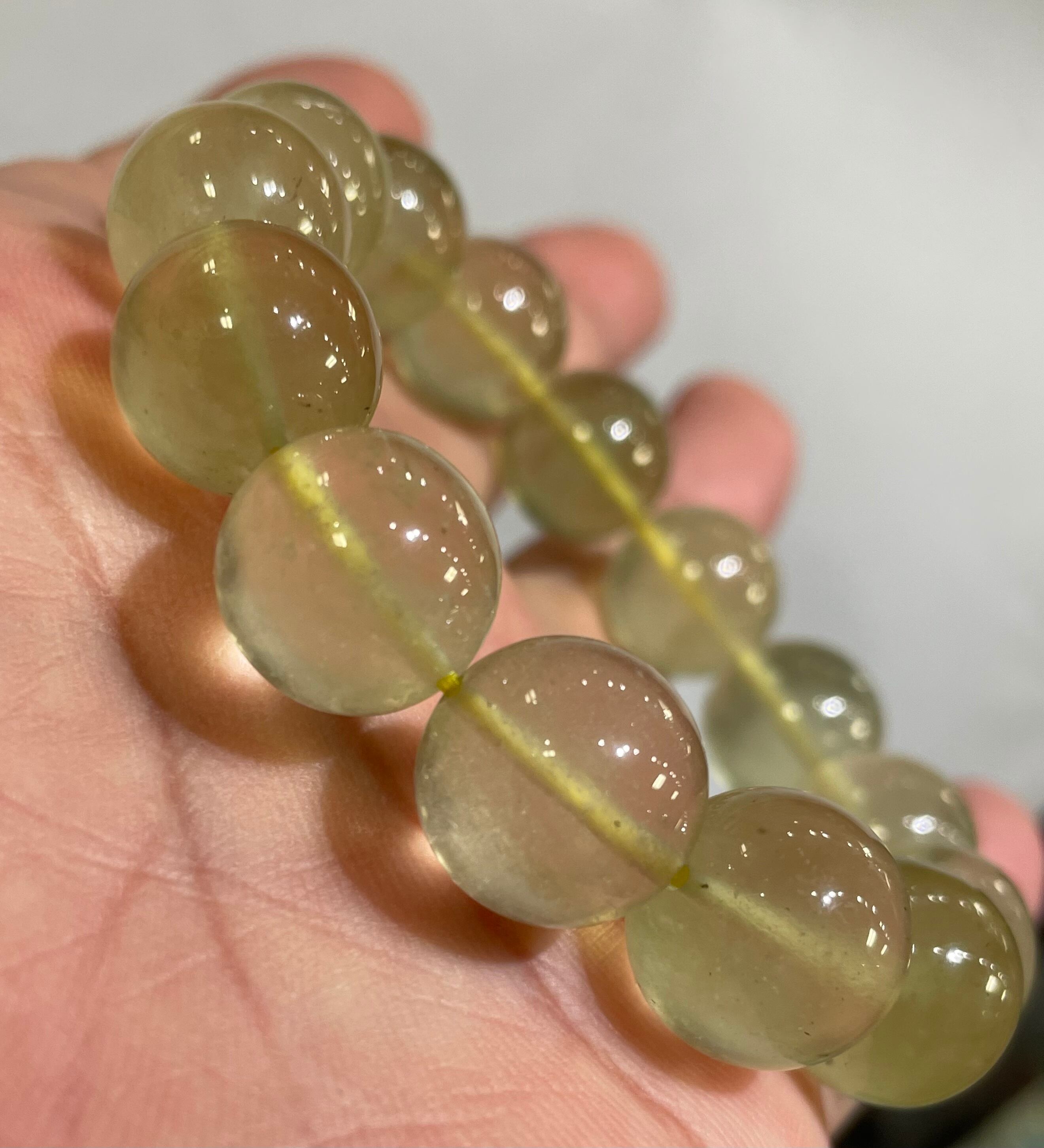 特選 ハイグレード !リビアングラス ブレスレット14mm 上品な黄金