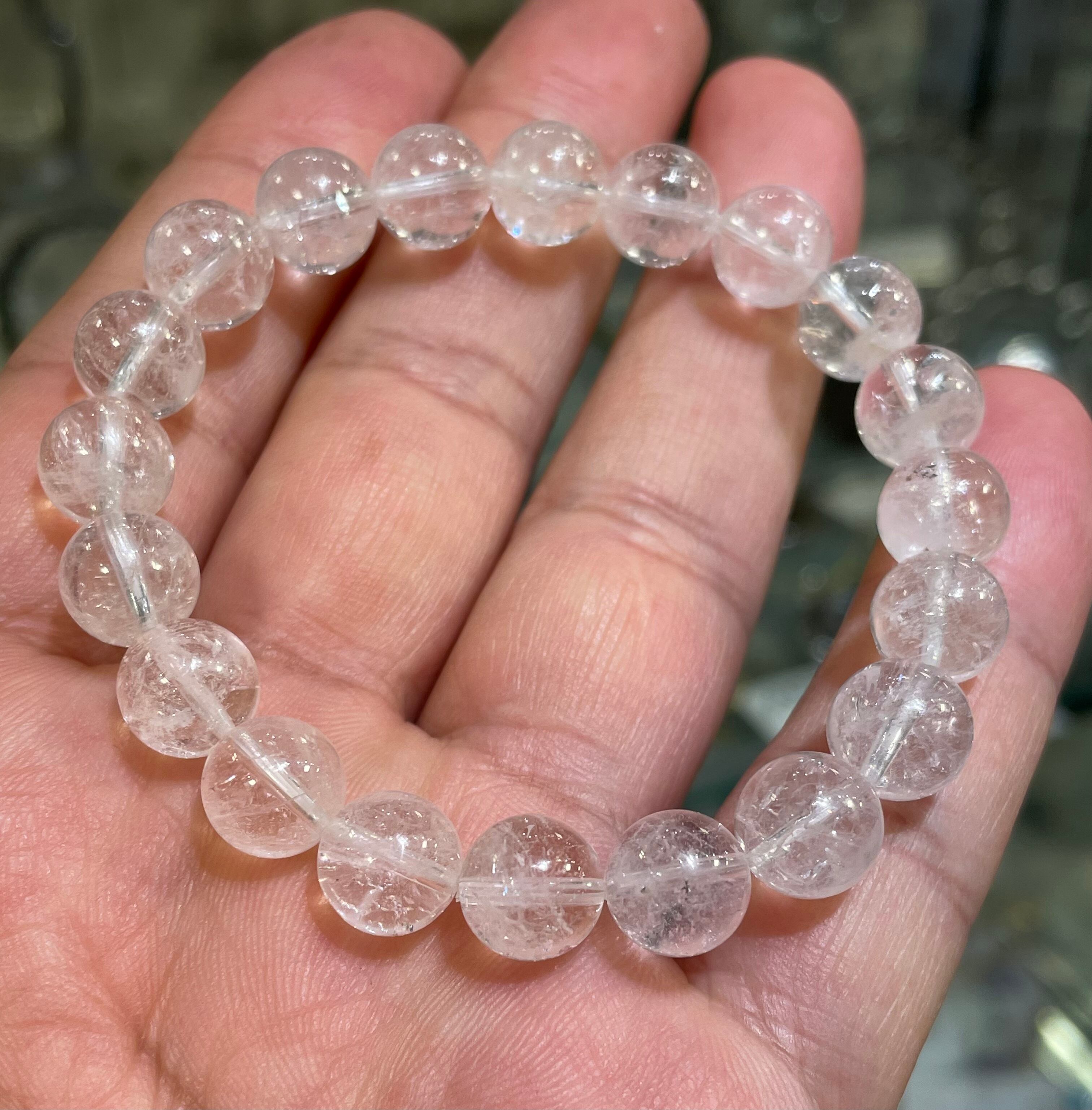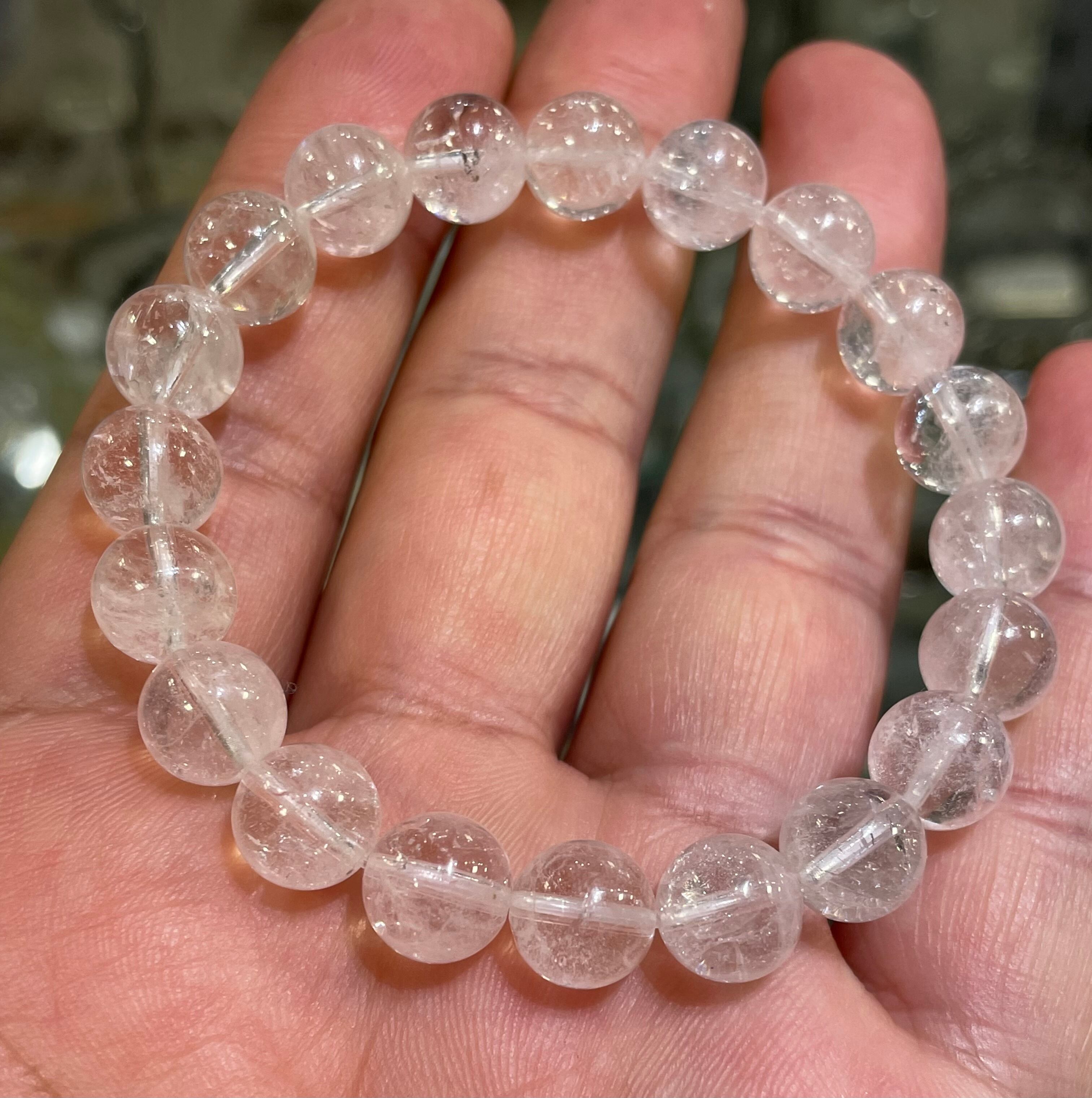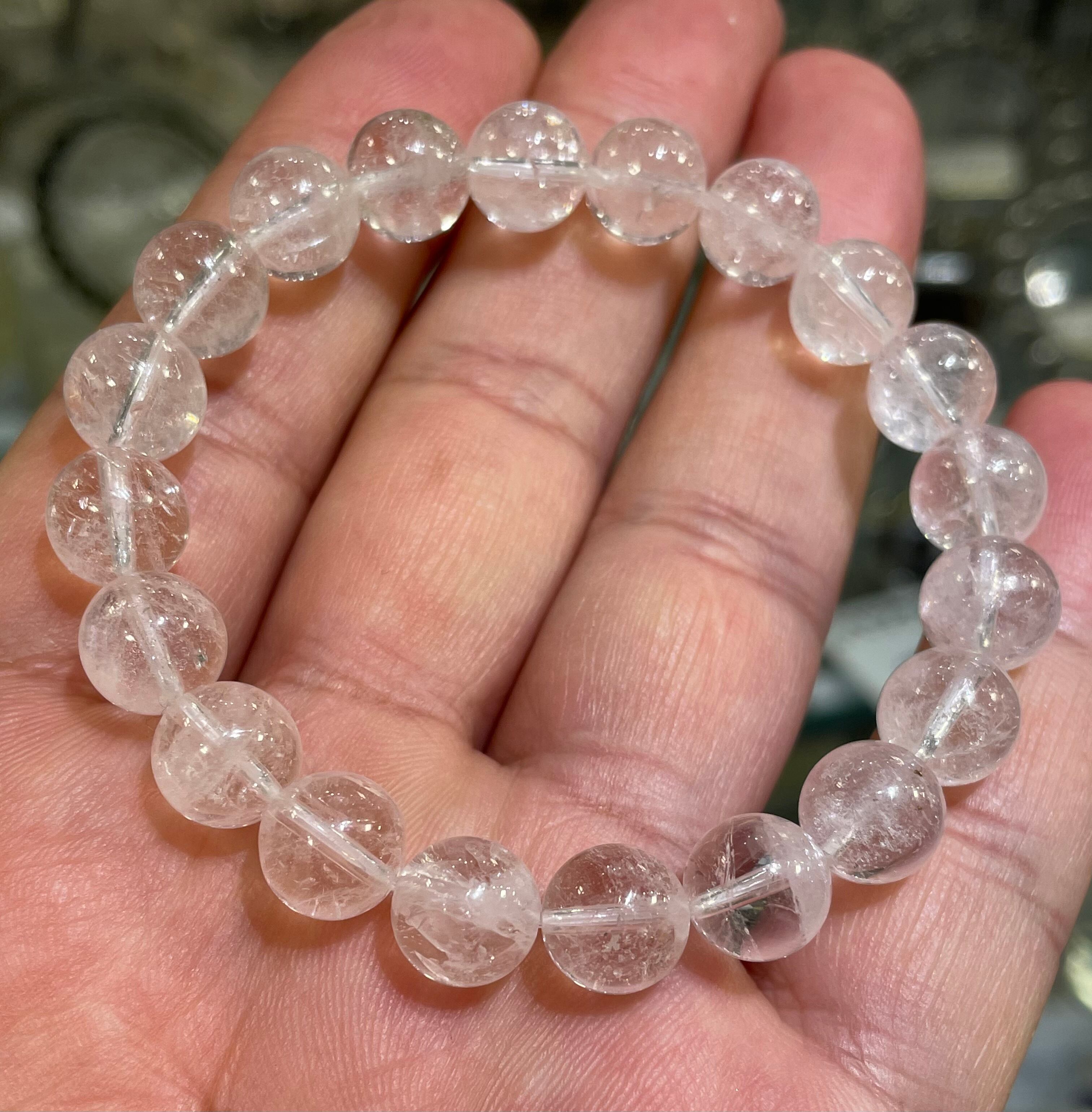 高品質!激安 希少石 微かにピンクのダンビュライト9.5mmブレスレット