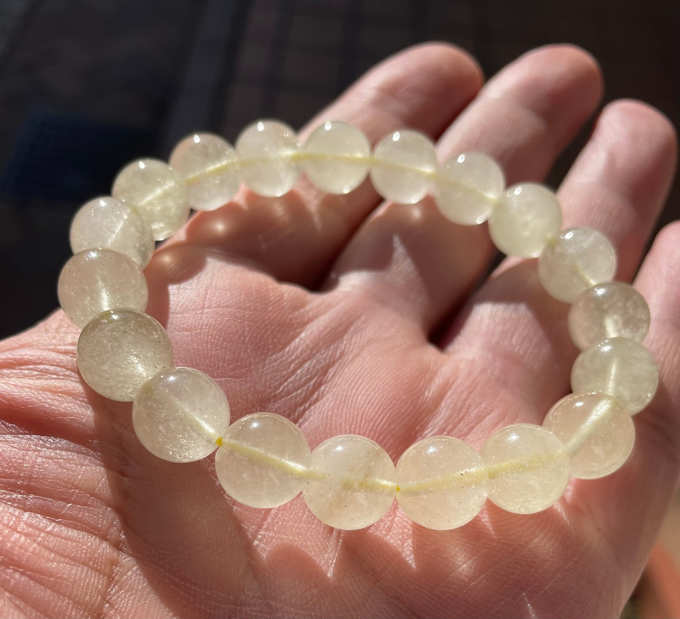 淡い黄色系が特徴であり、二酸化珪素(SiO2)の純度が98%で、黄緑、深緑、無色、乳白色等もあり気泡と内包物も良く含まれています。