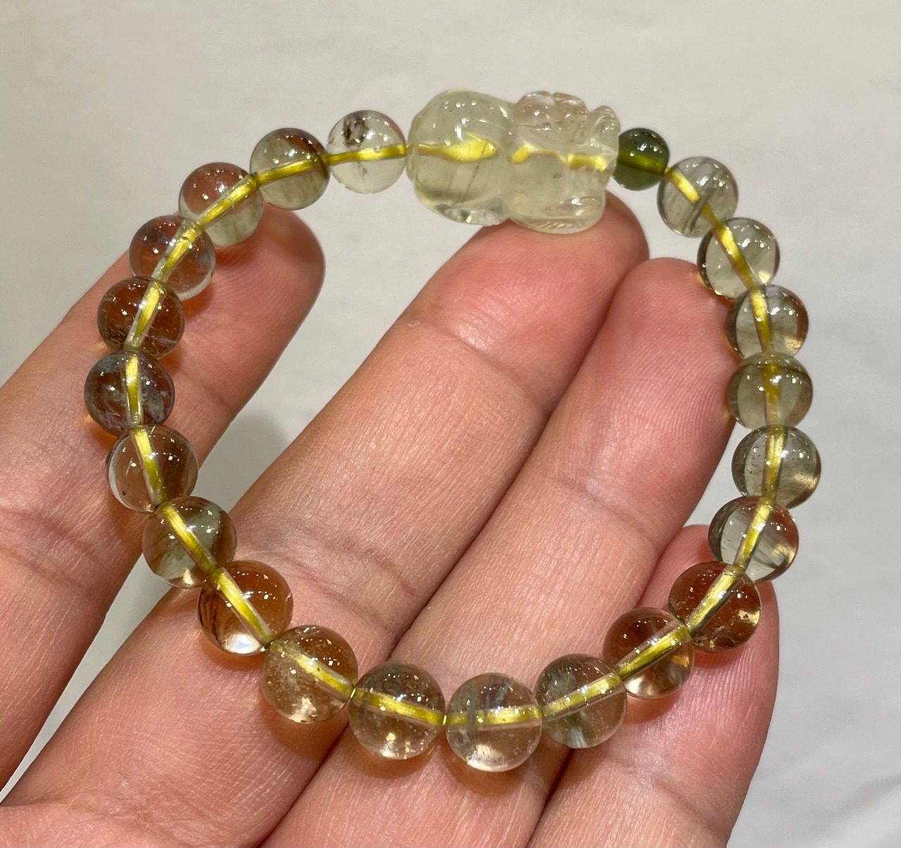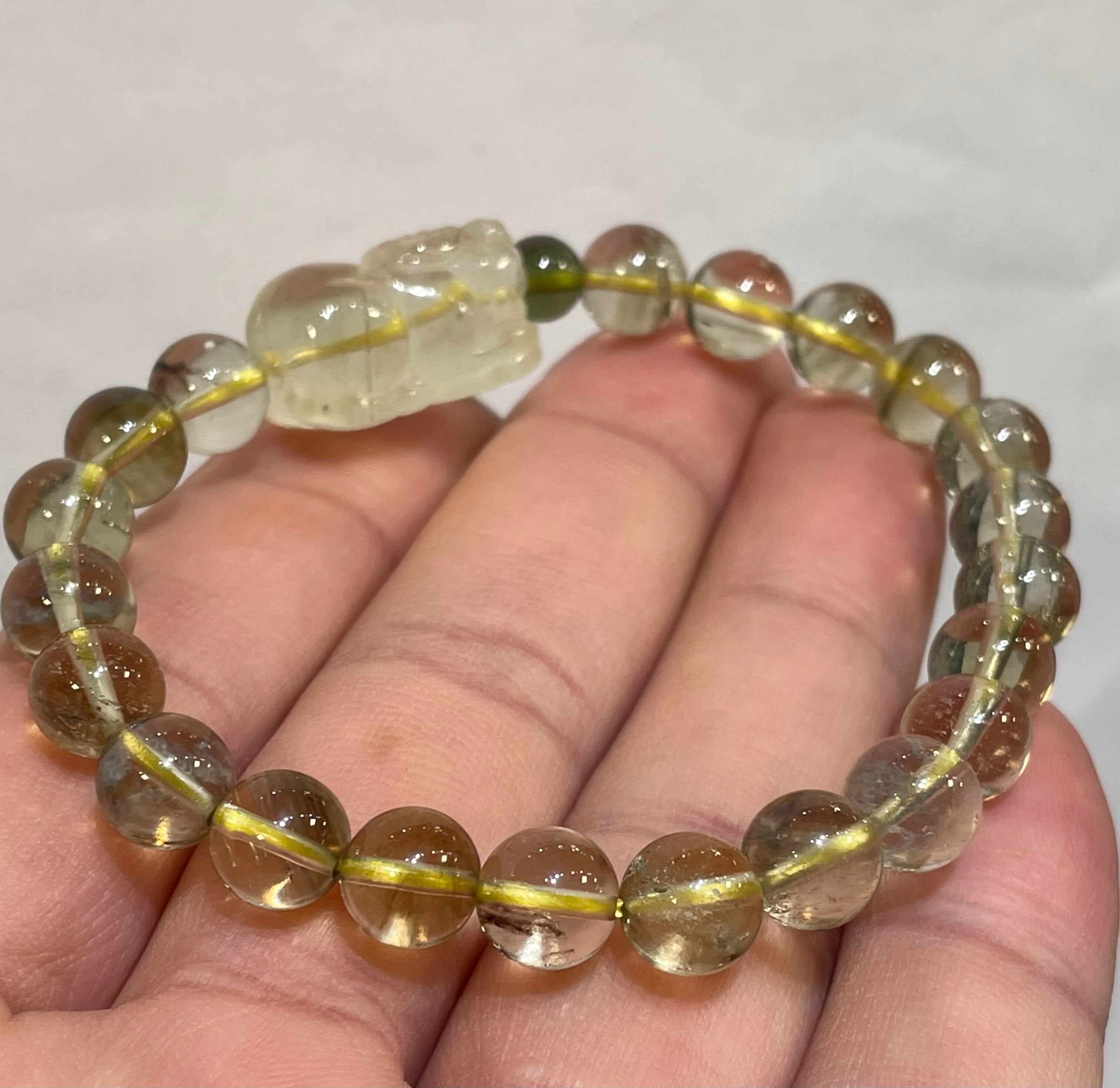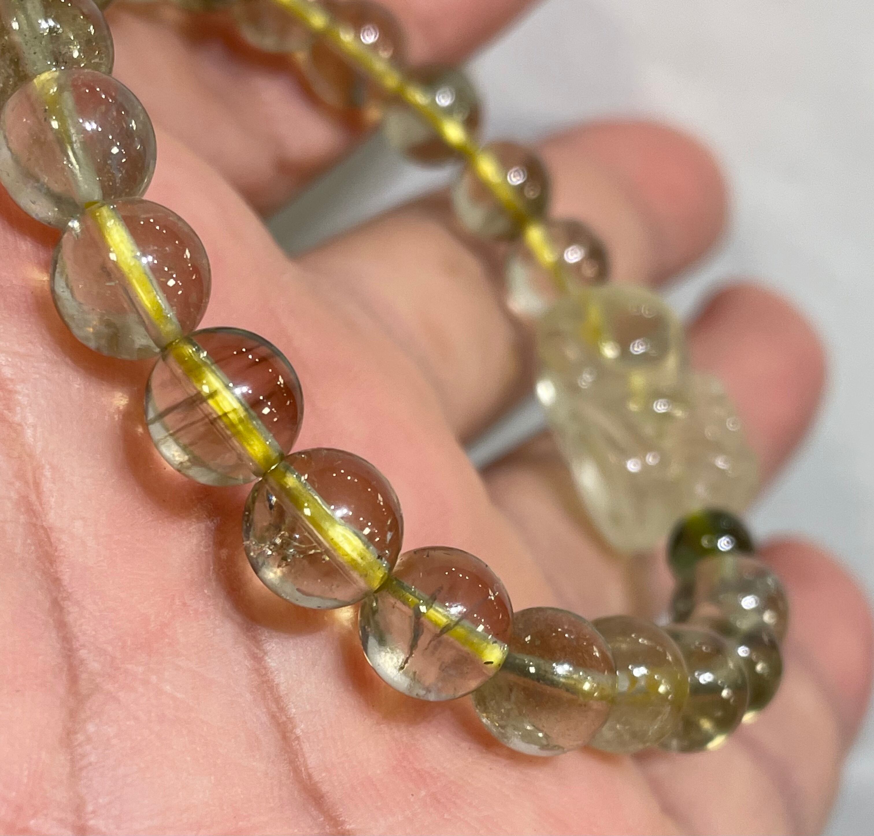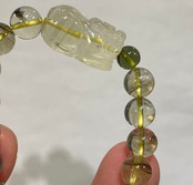 最高グレードの天然ブラックリビアングラス貔貅とモルダバイトのデザインブレスレットです♪