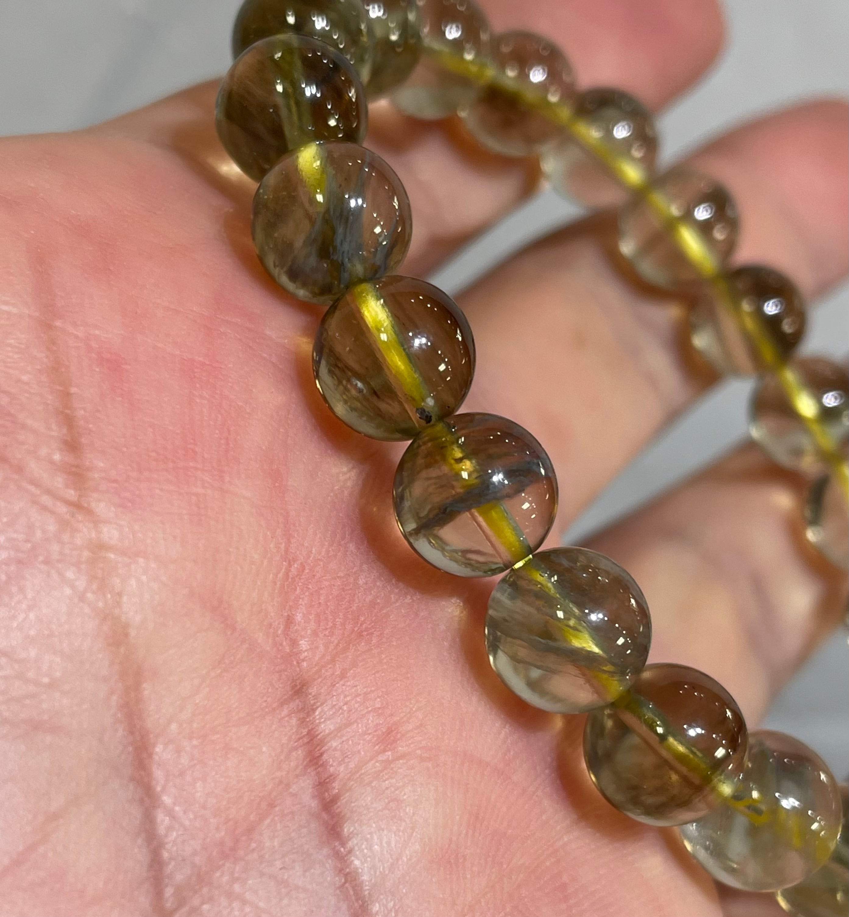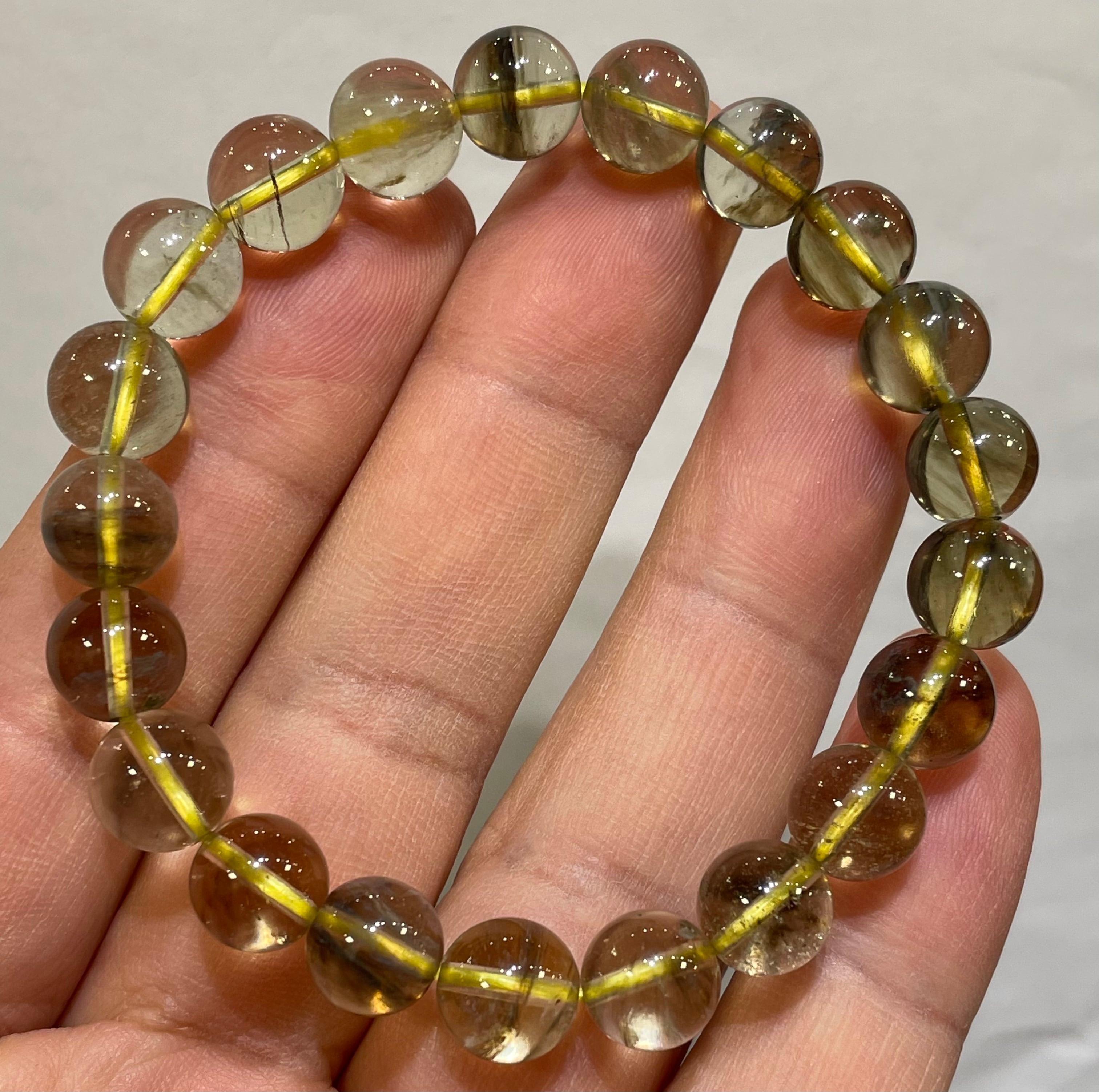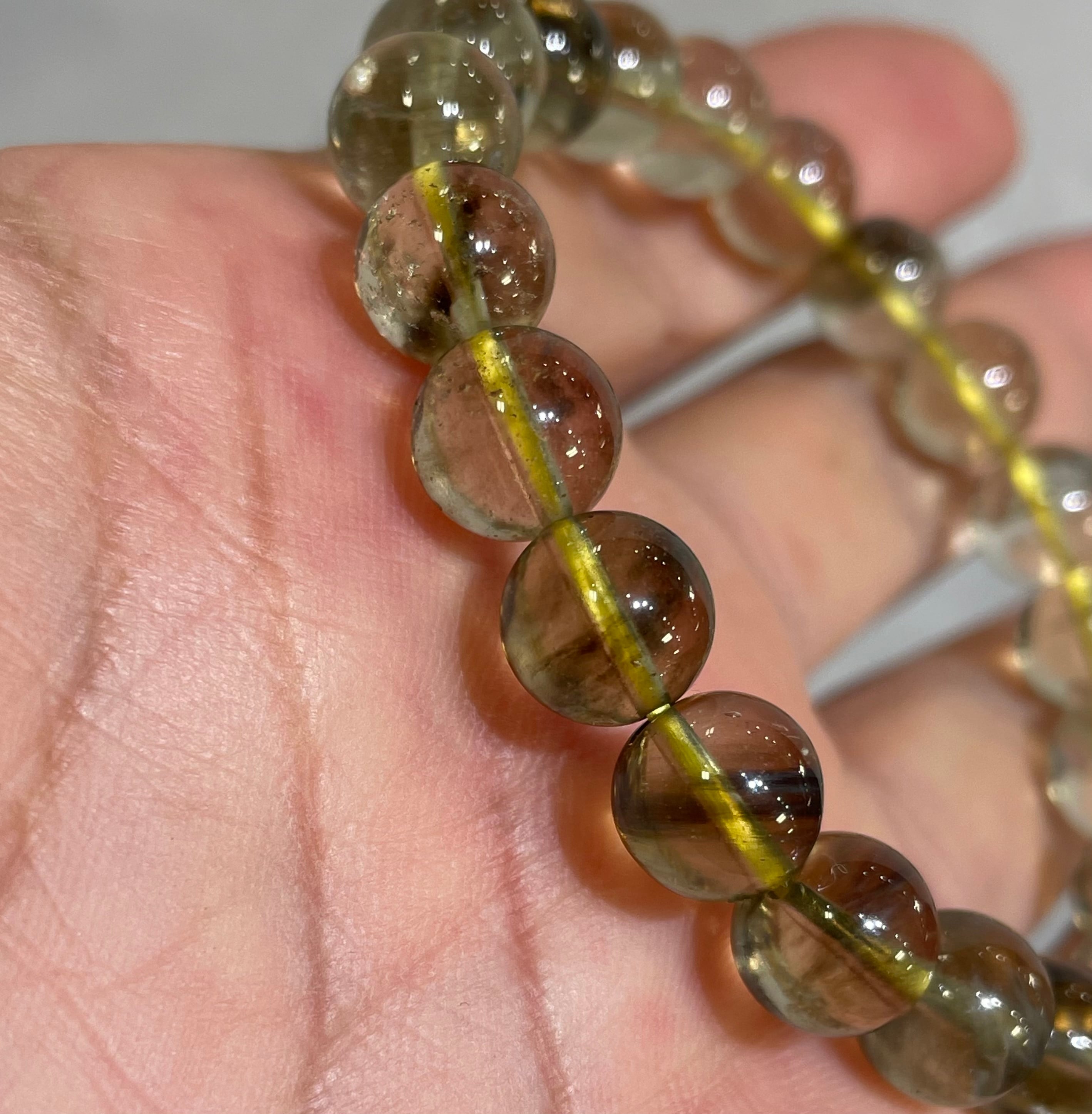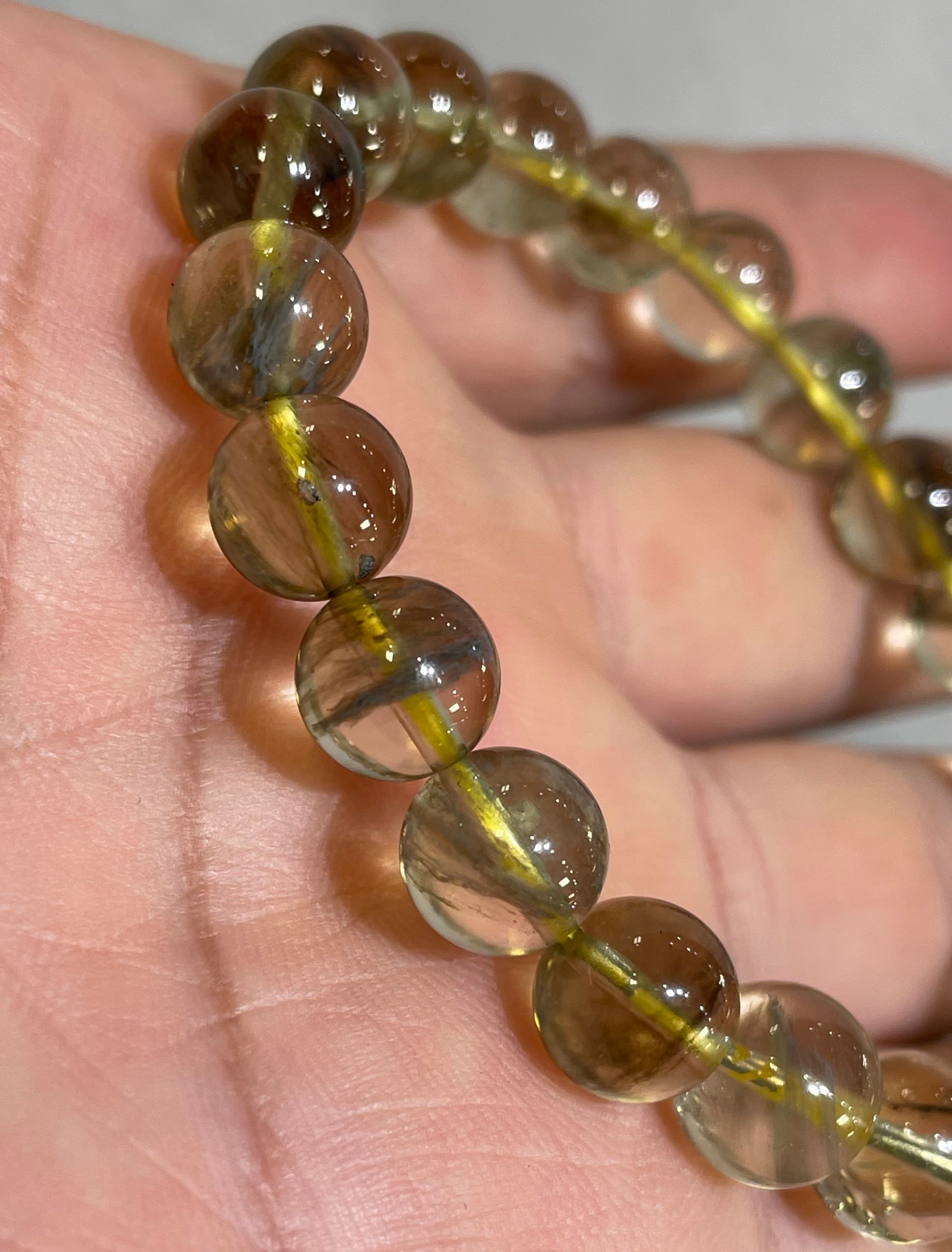 最高グレード!ブラックリビアングラス ブレスレット9.5mmクリストバライト入り