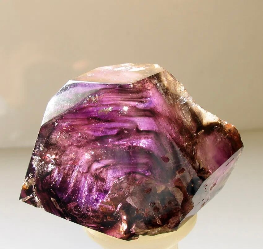 薔薇の花のように渦巻いて結晶されたファントムが実に神秘的で、全体的に松茸水晶の形をした極上の逸品です。綺麗な虹も確認できます。