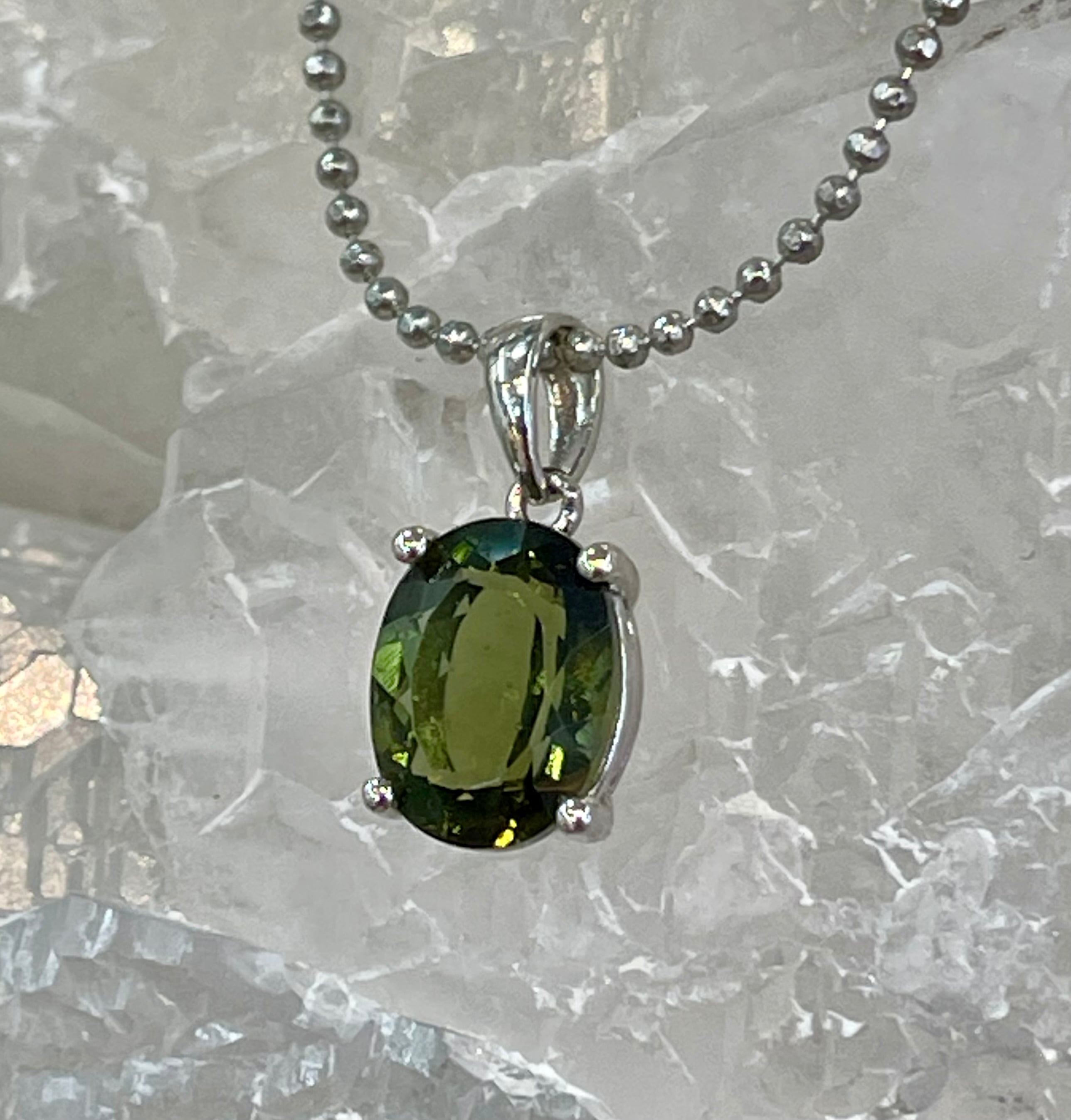 特選!宝石質モルダバイトペンダント 9/8mm オーバル型 激安卸価格