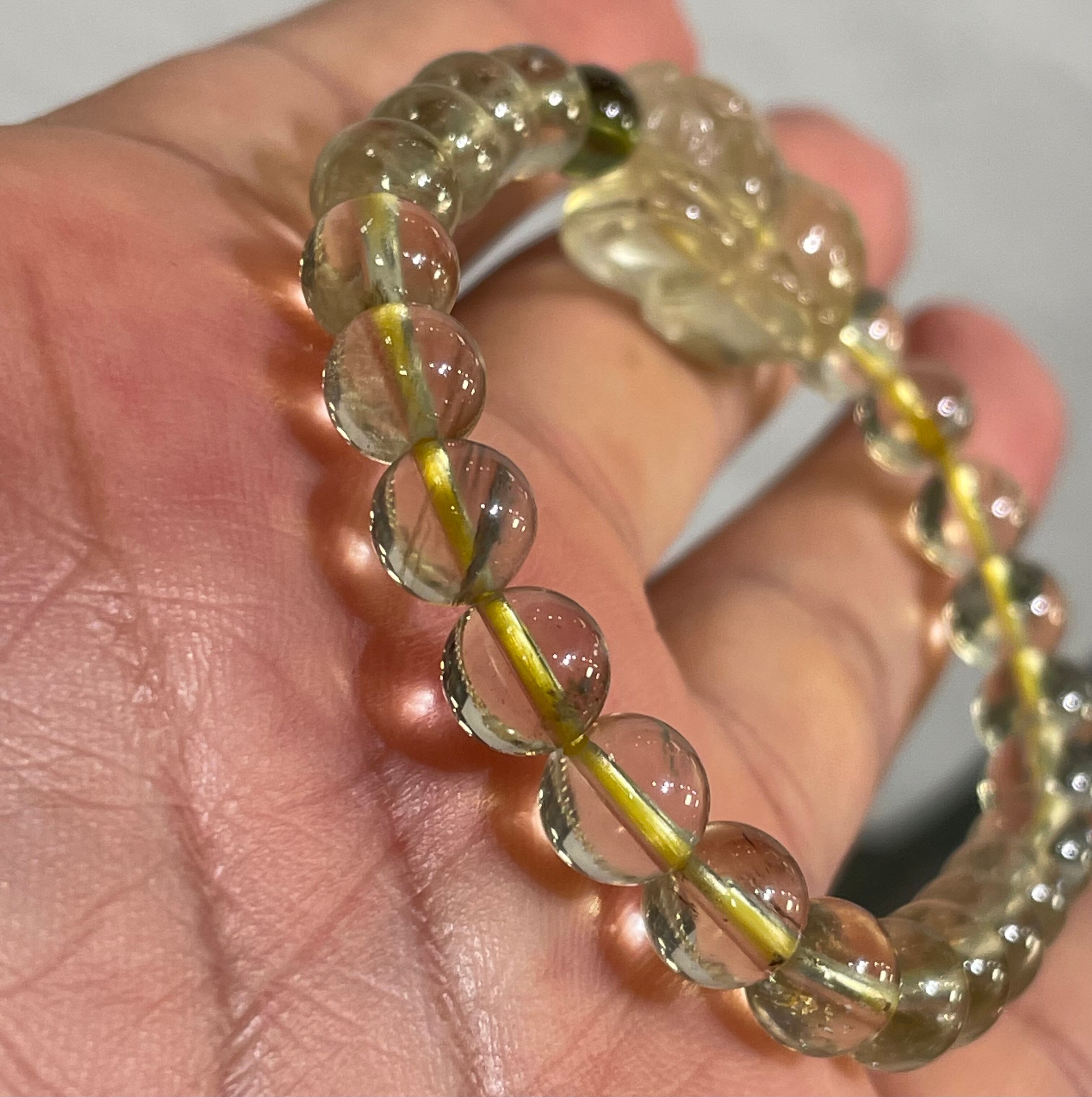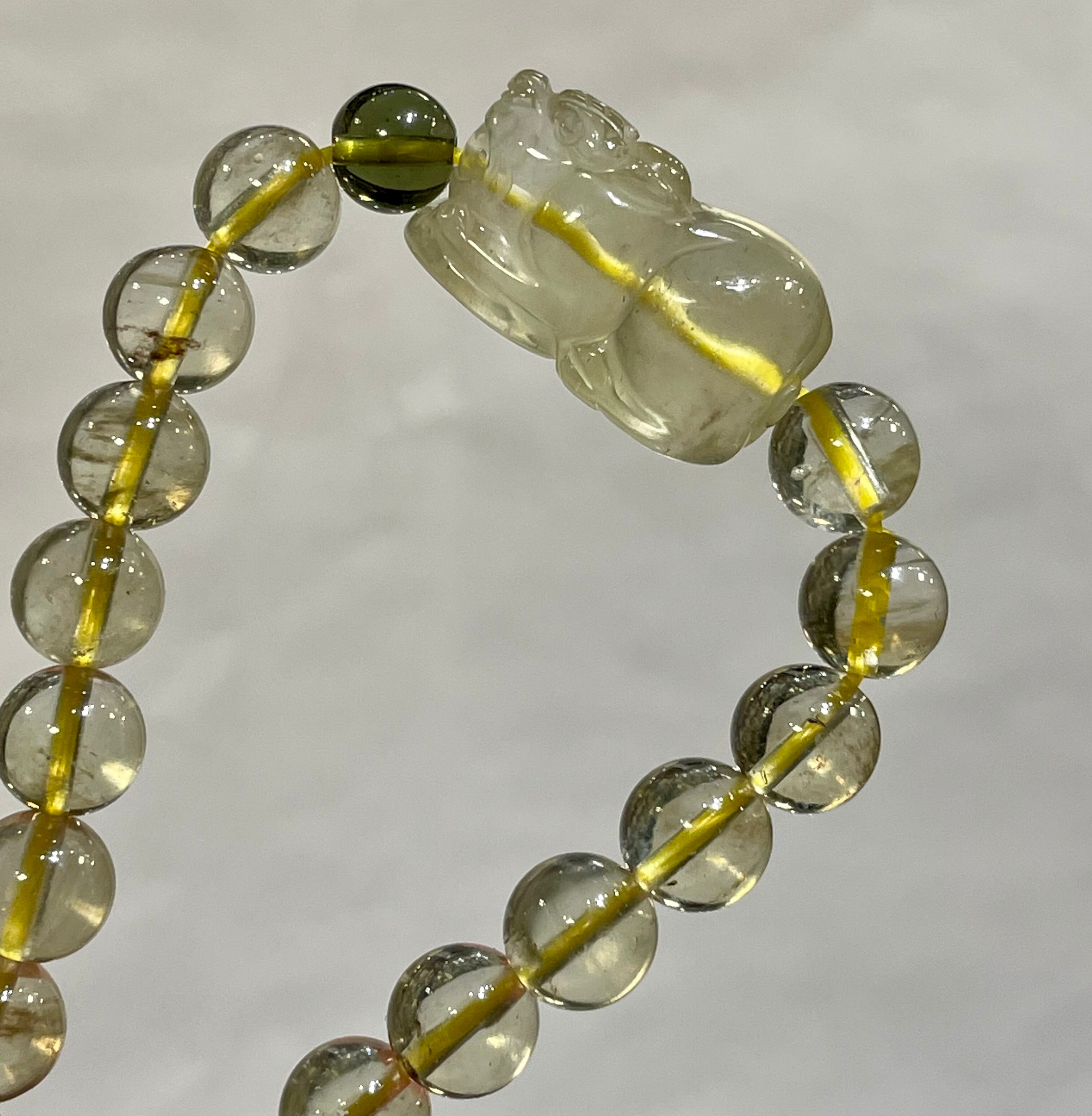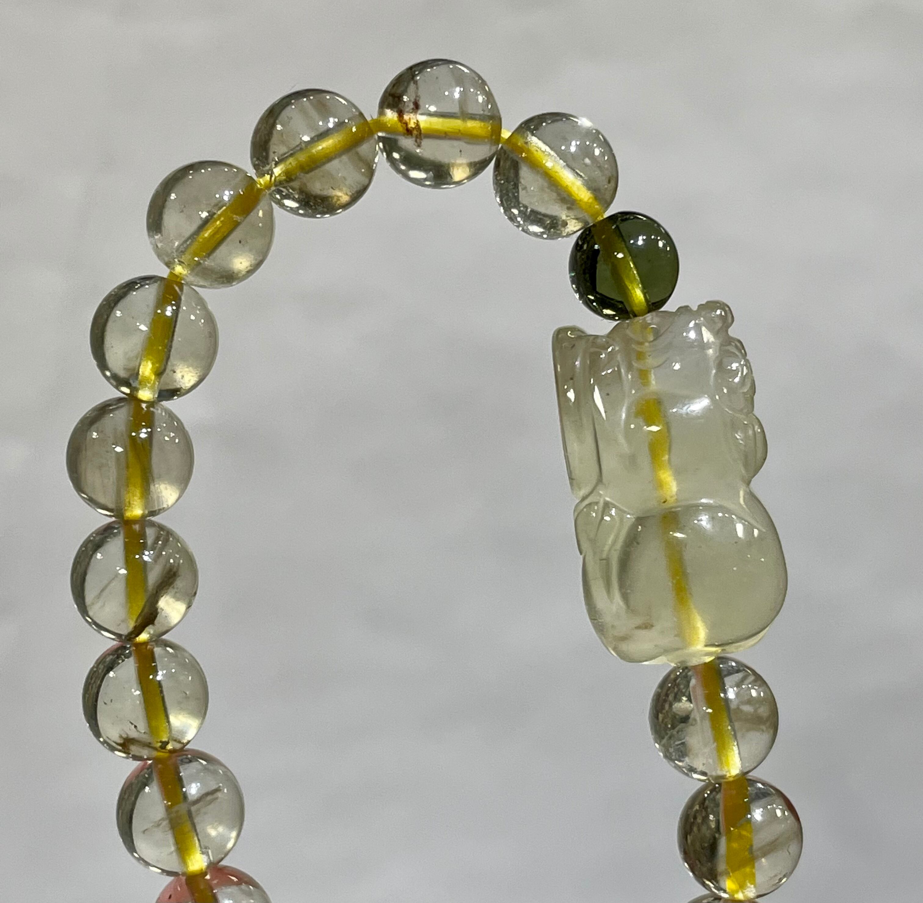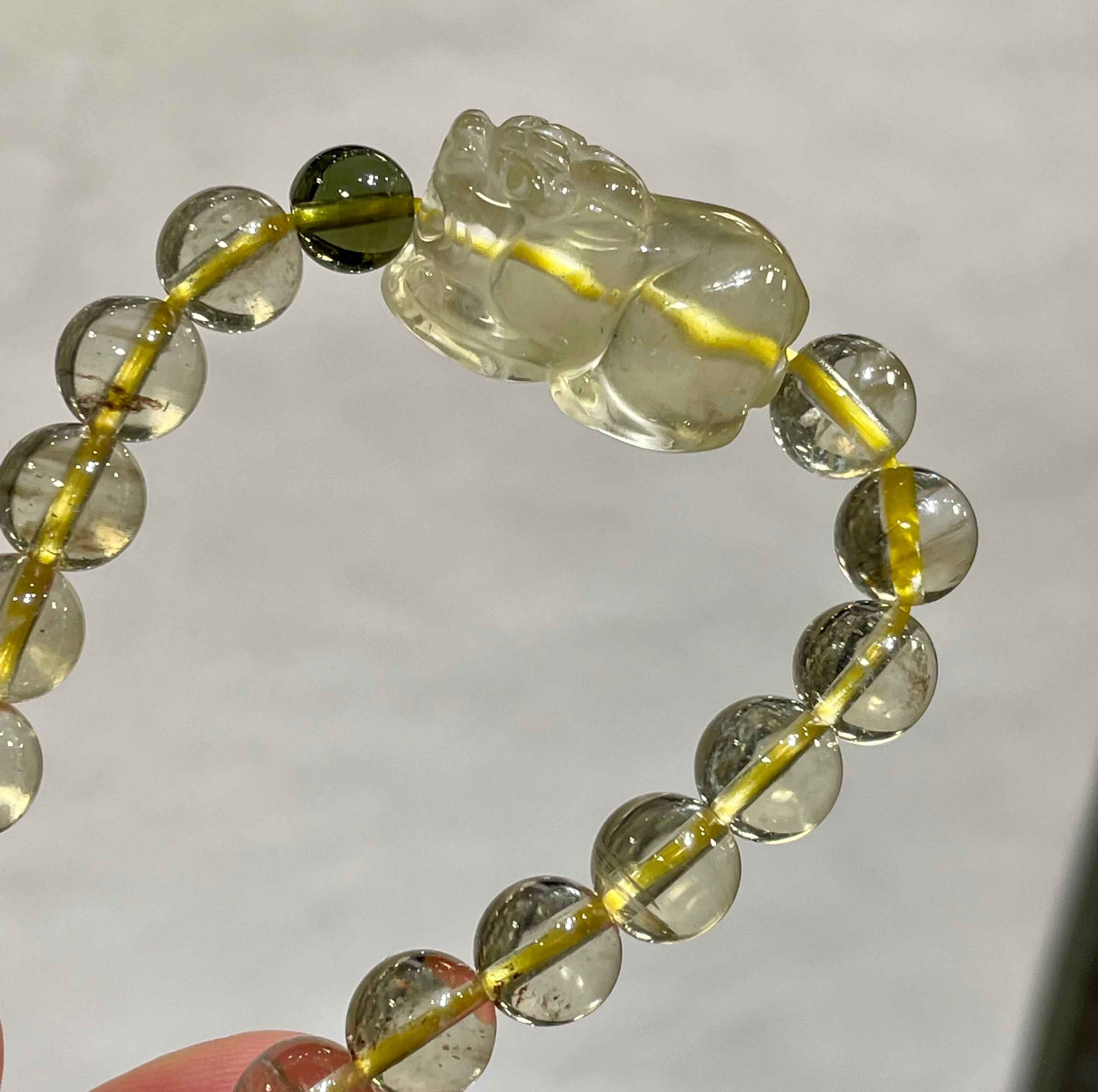 最高グレードの天然ブラックリビアングラス貔貅とモルダバイトのデザインブレスレットです♪