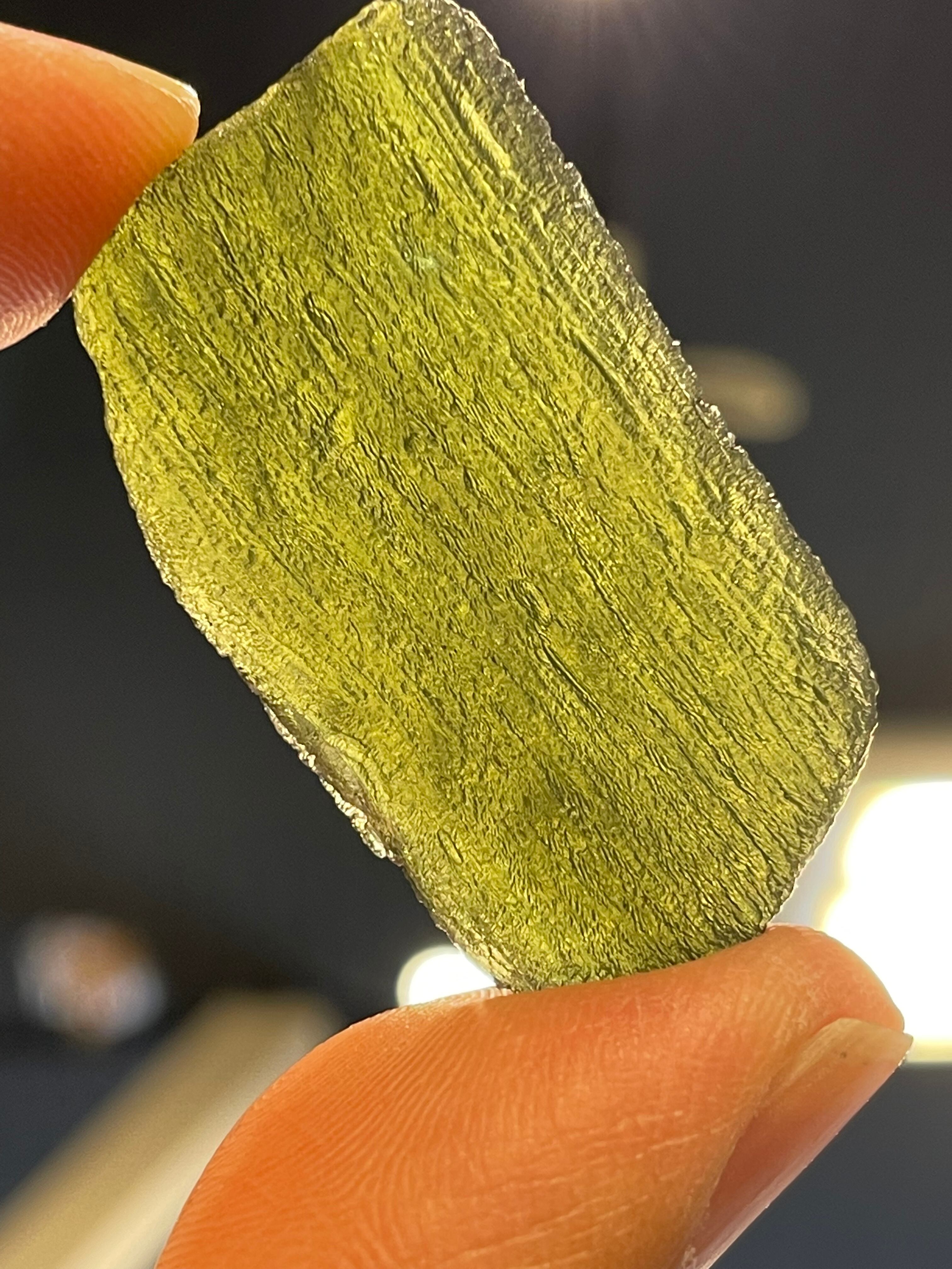 大きな天然モルダバイト原石です。鑑別書付き!