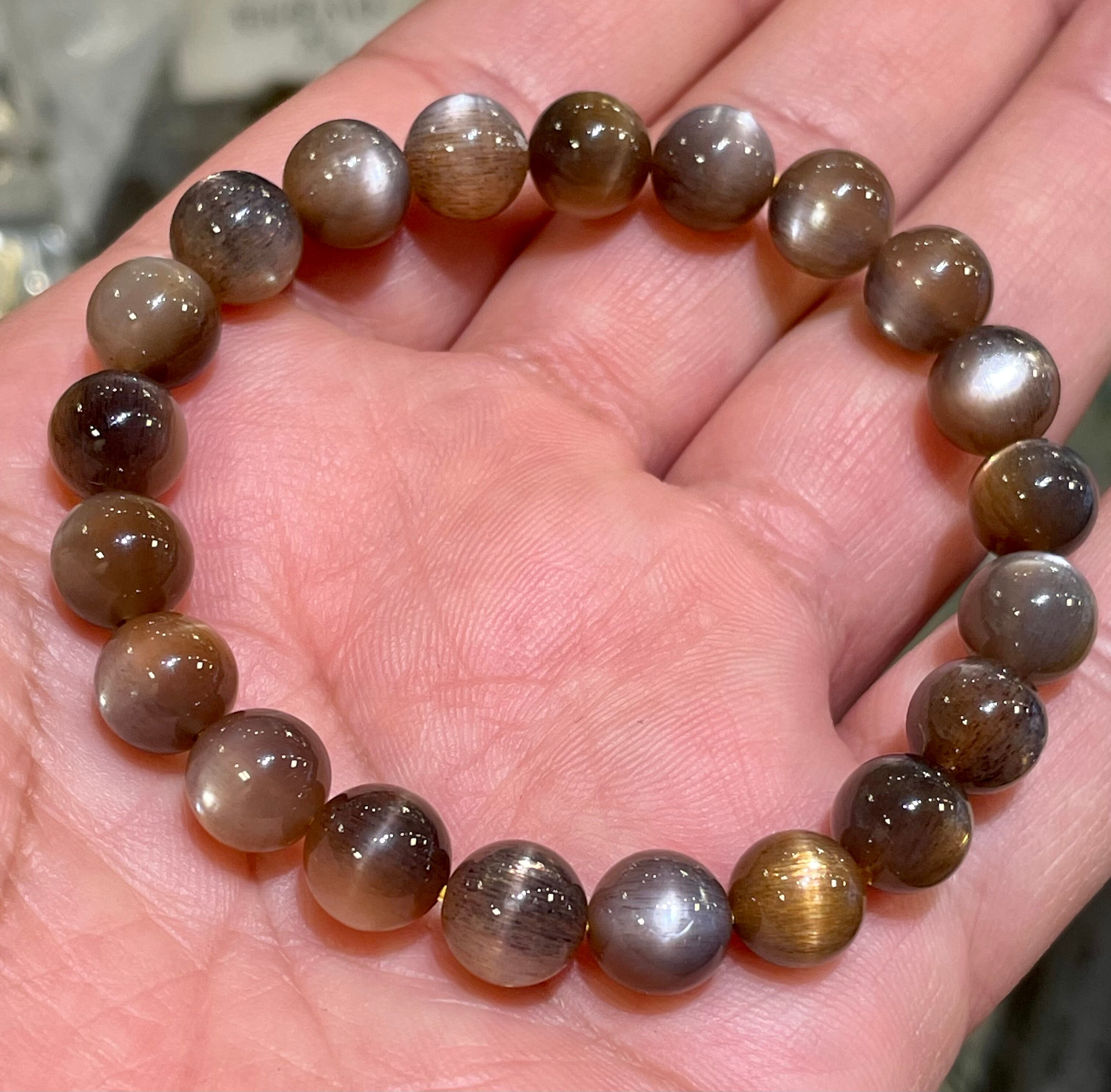 特選!最高グレード ブラックサンムーンストーンブレスレット8.5mm 激レア