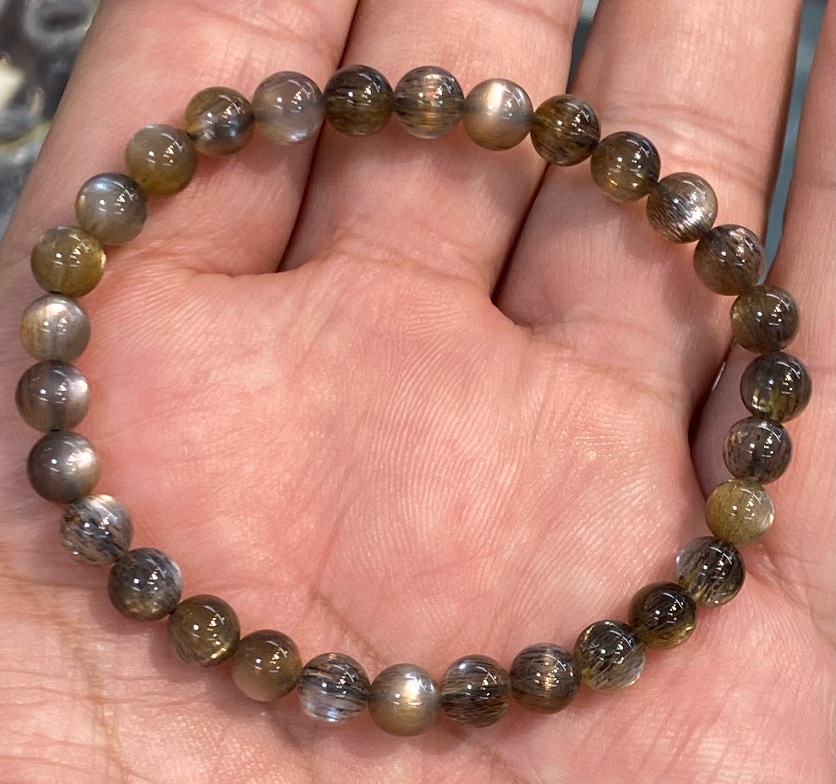 特選!最高グレード ブラックサンムーンストーンブレスレット6mm 激レア