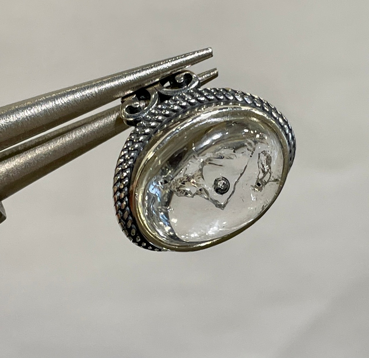 水晶の中でも強靭なパワーを持つのが水入り水晶と言われ、太古の水が閉じ込められたものは大変貴重で「ウォータードロップクォーツ」「ウォーターインクォーツ」と呼ばれ、特別視されています。窪みに閉じ込められたその水は、何千年前か何億年前のものだといわれております。