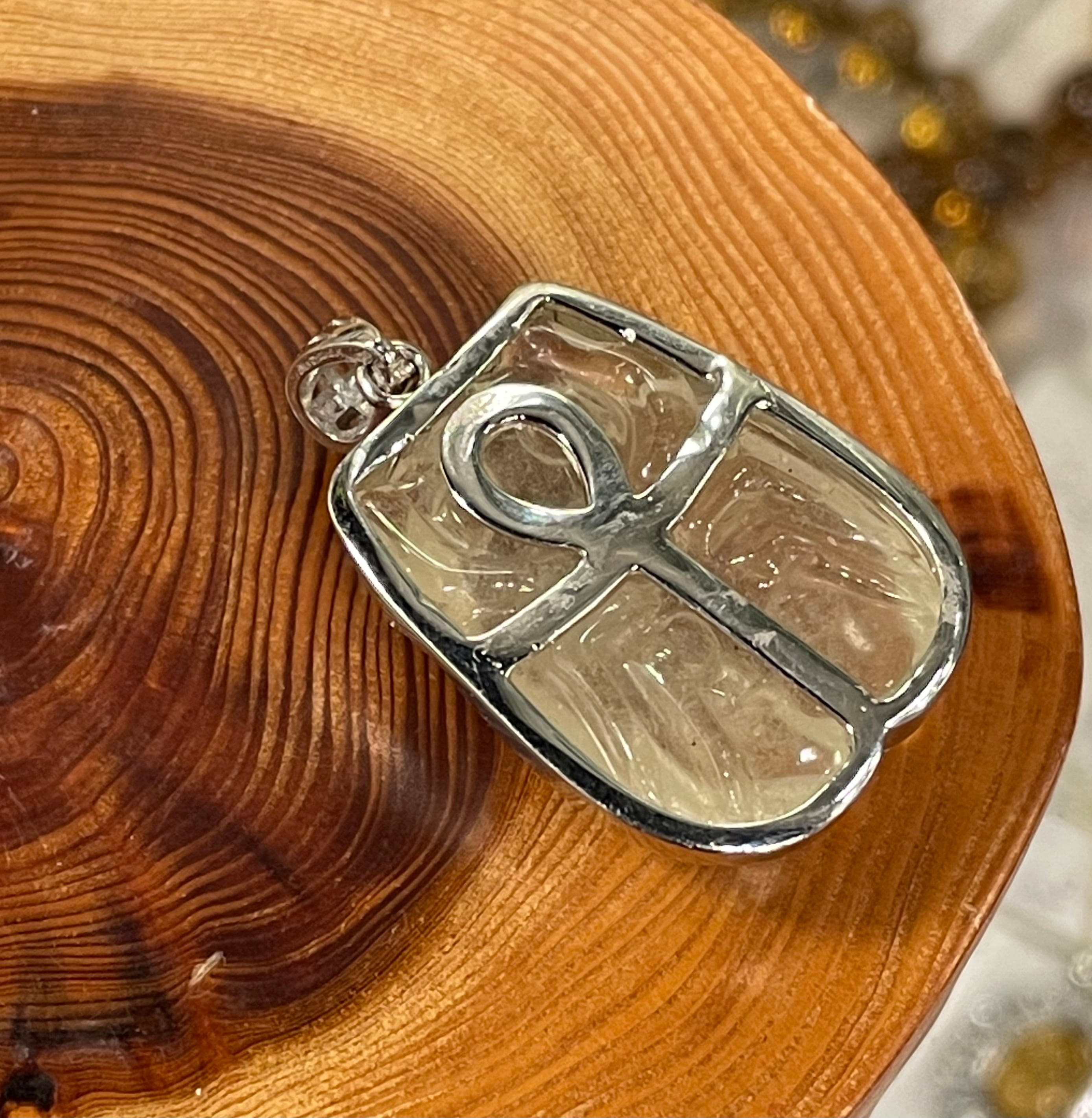 古代エジプト第18王朝のファラオ・ツタンカーメンの胸飾りにも使われた貴重なリビアングラスのスカラベをモチーフにしてデザインしたペンダントです♪