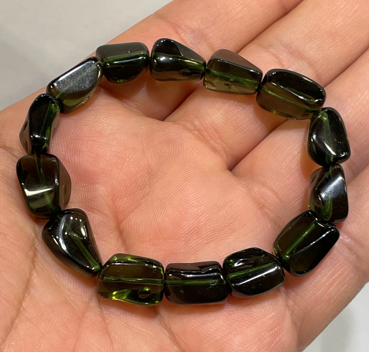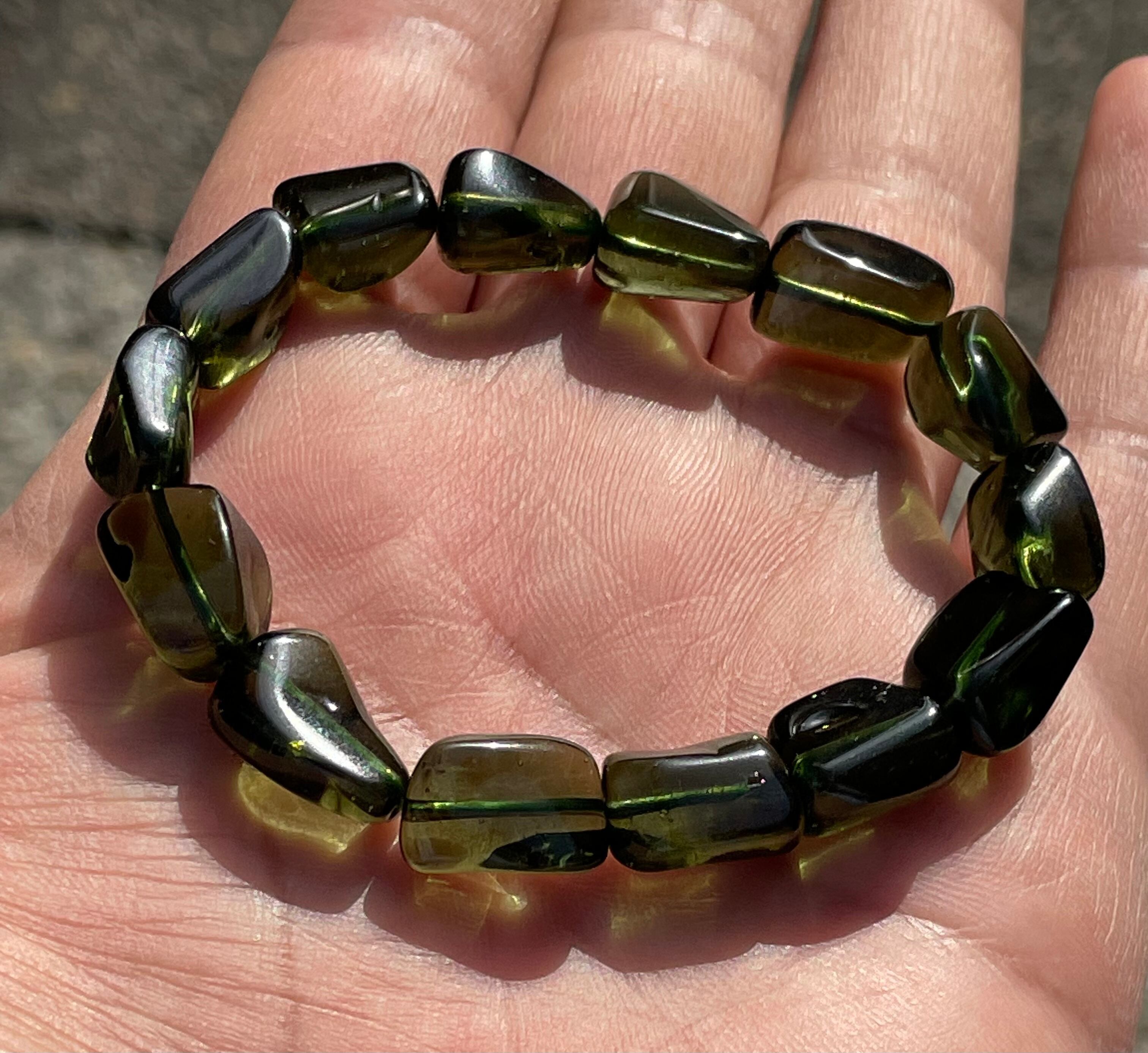大粒のモルダバイト原石を贅沢にカットして作ったタンブルブレスレットです!