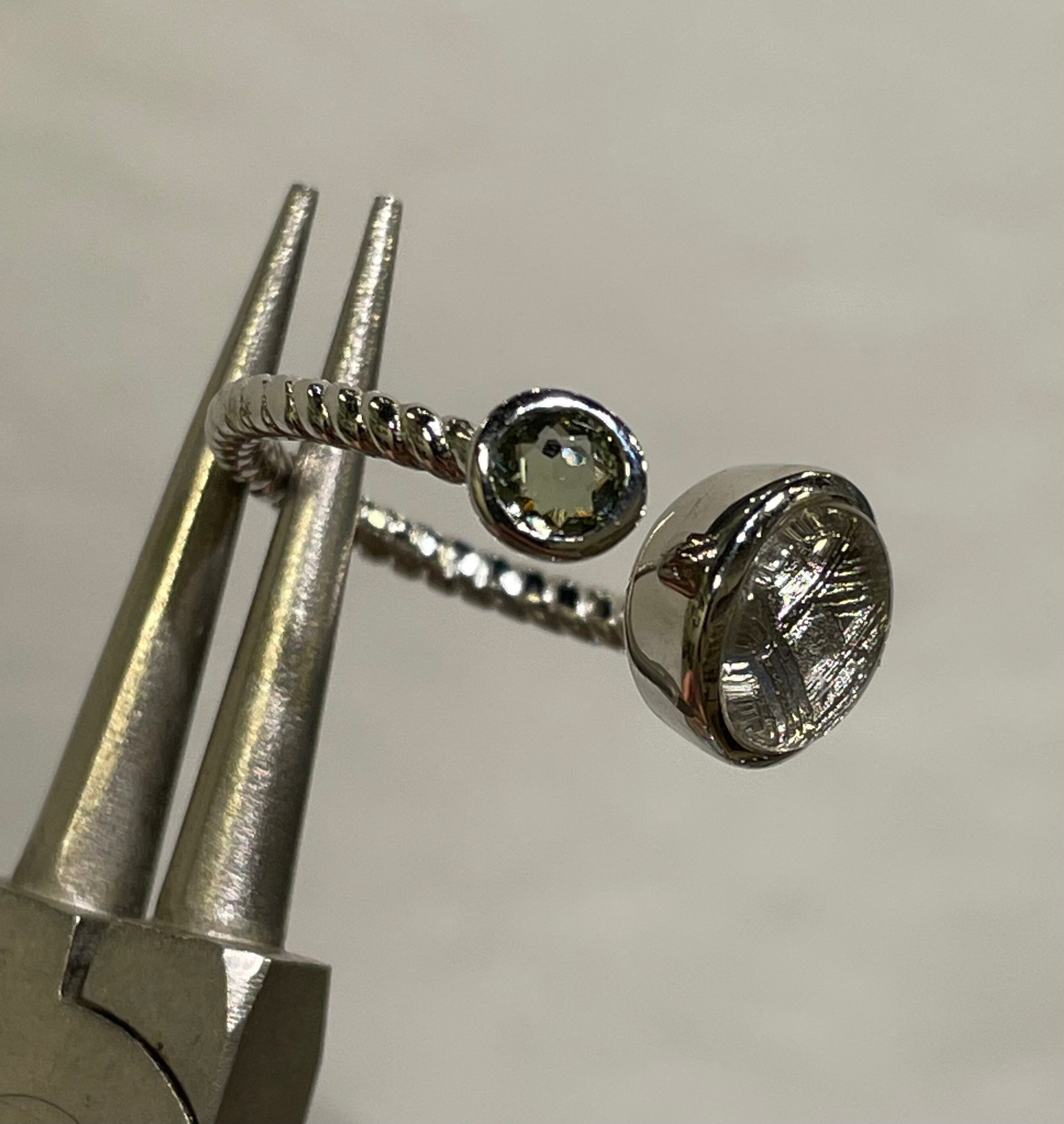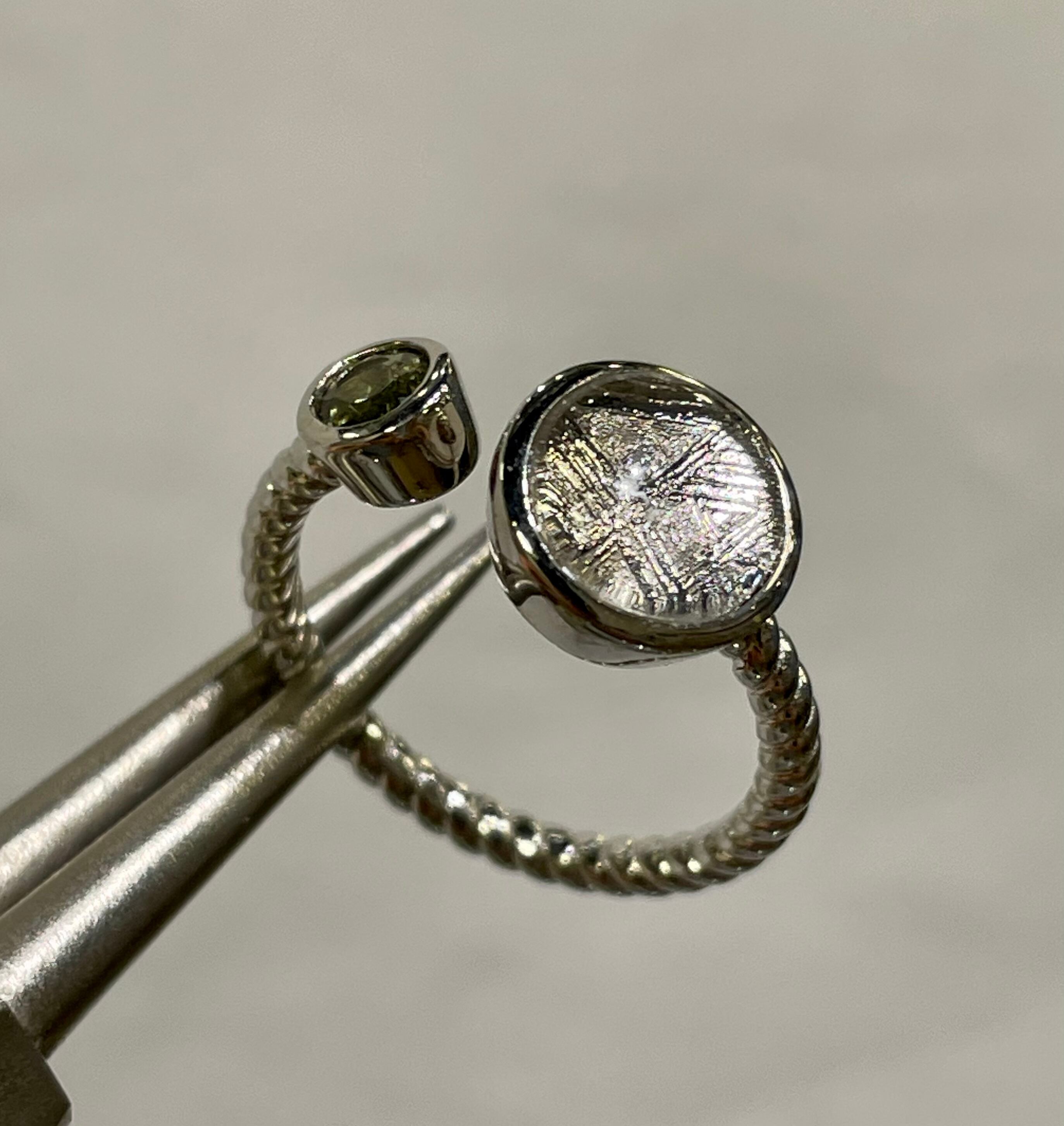 特選!高品質モルダバイトとギベオンで作ったリングです。