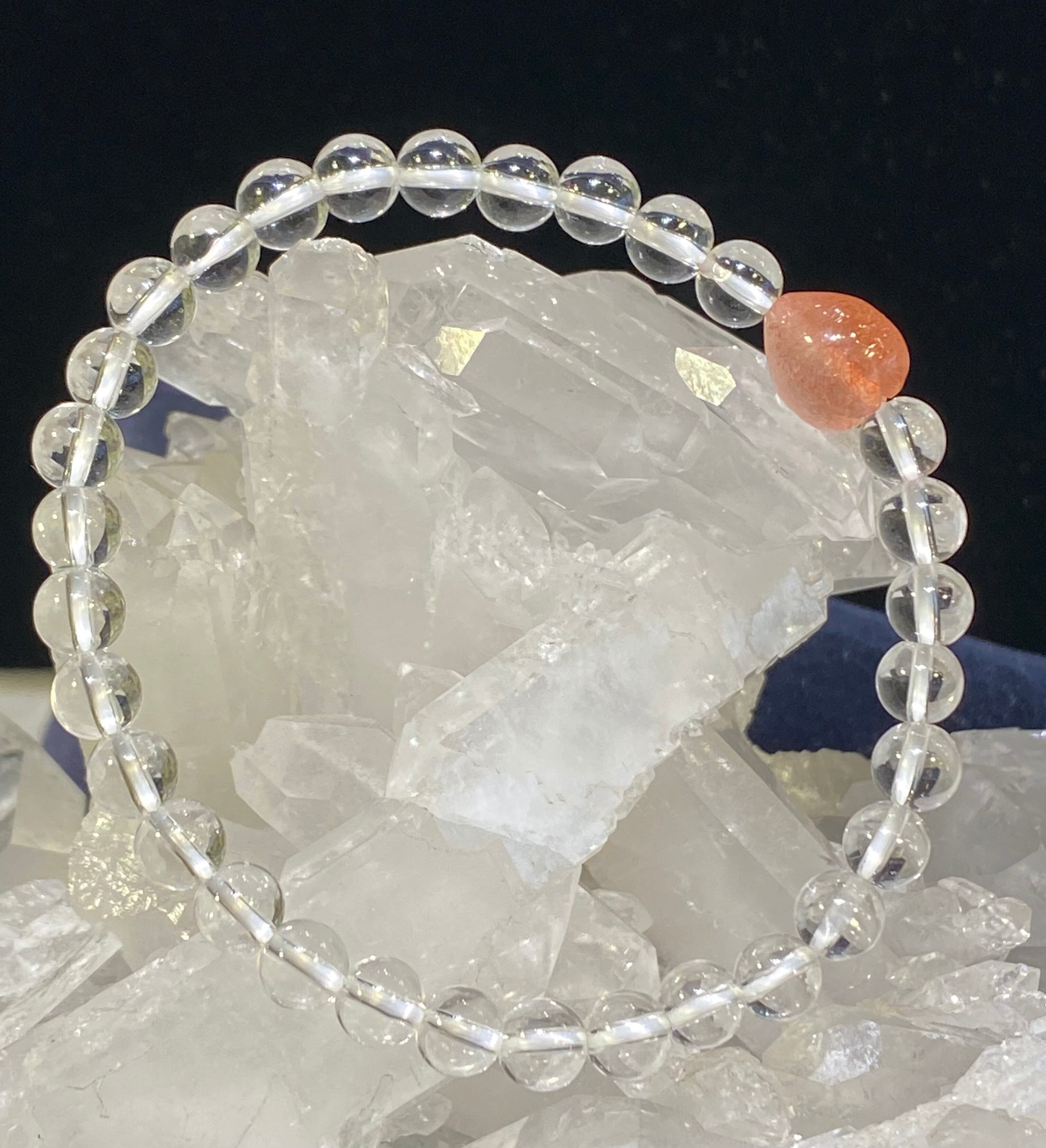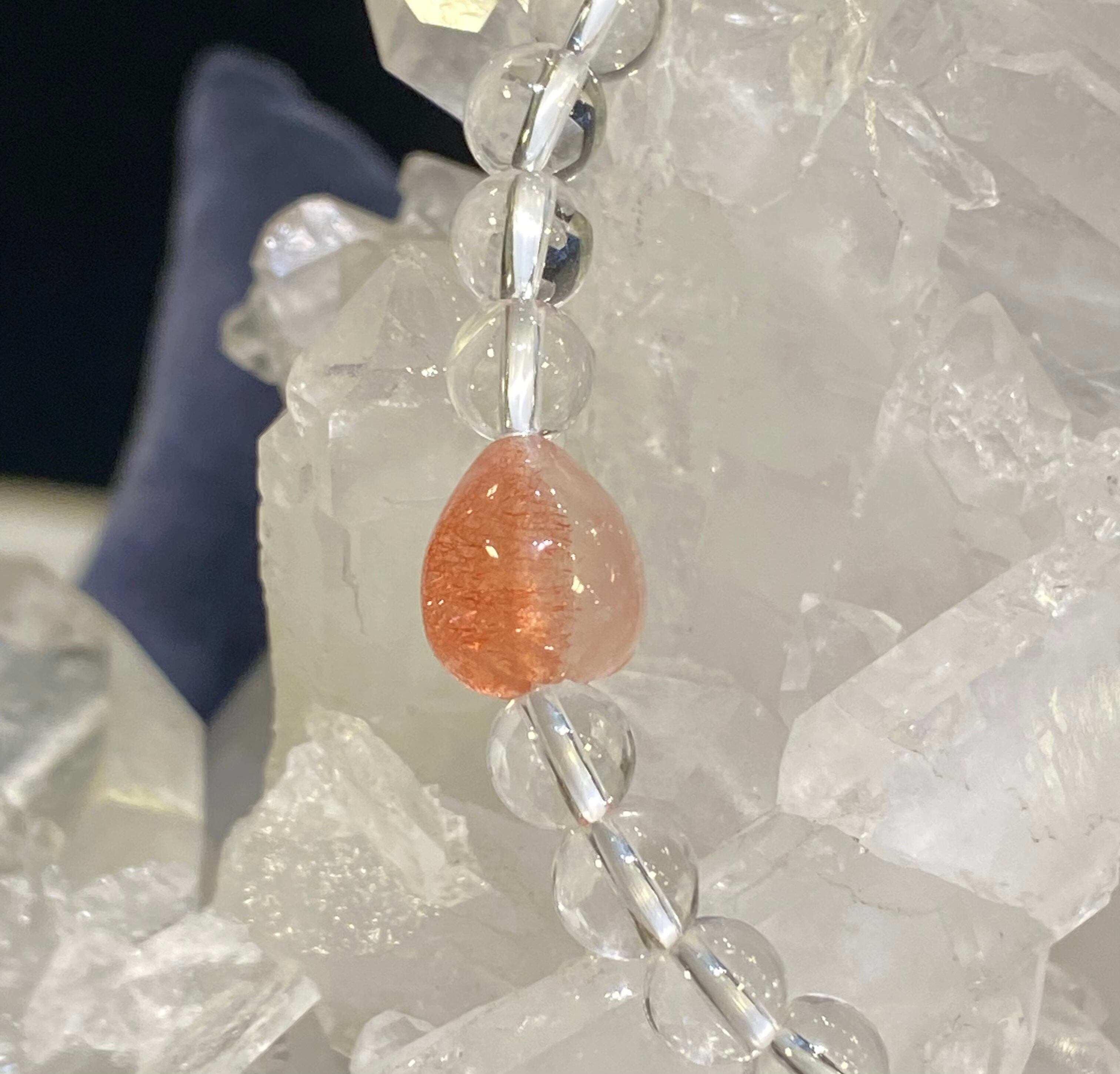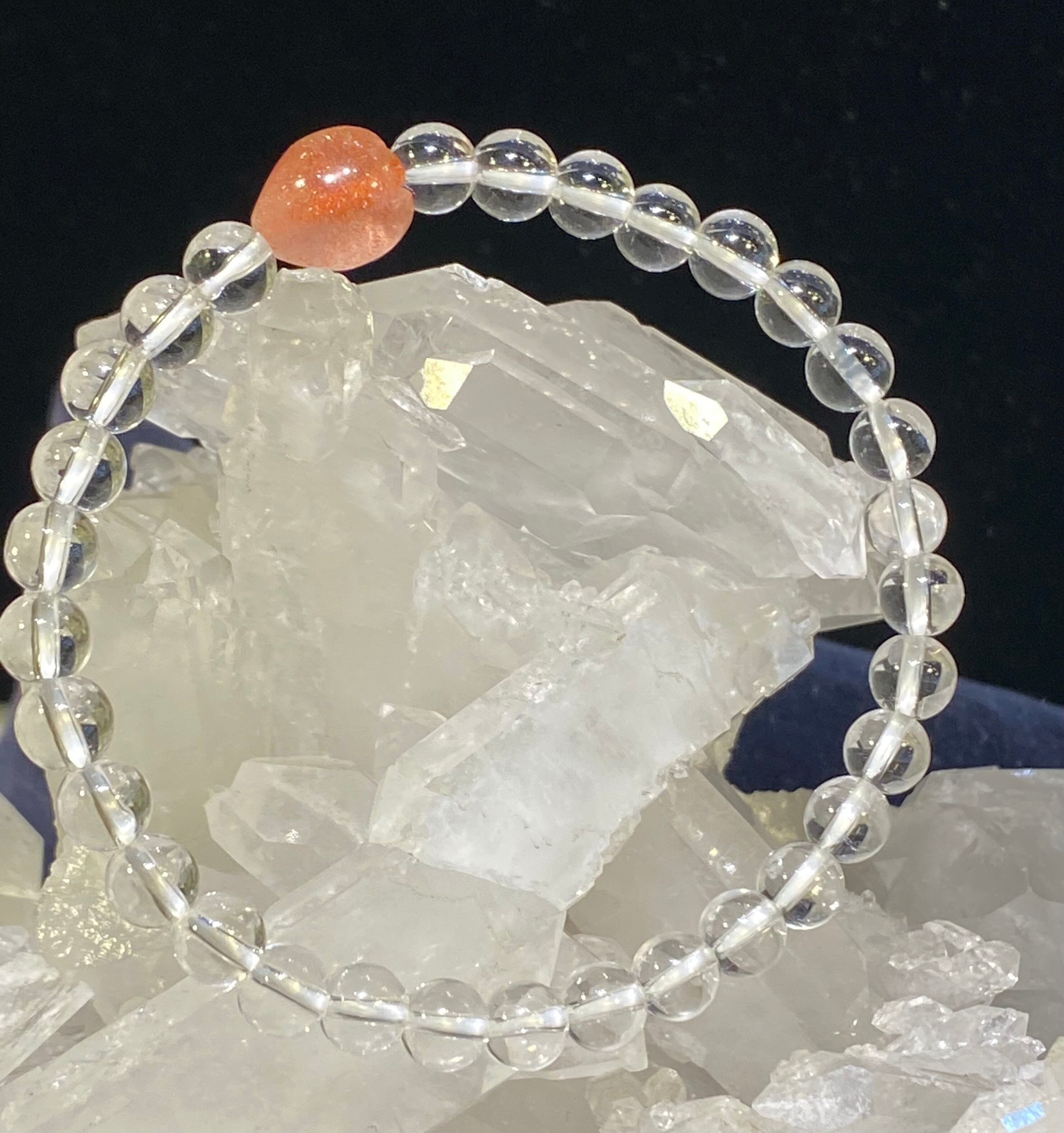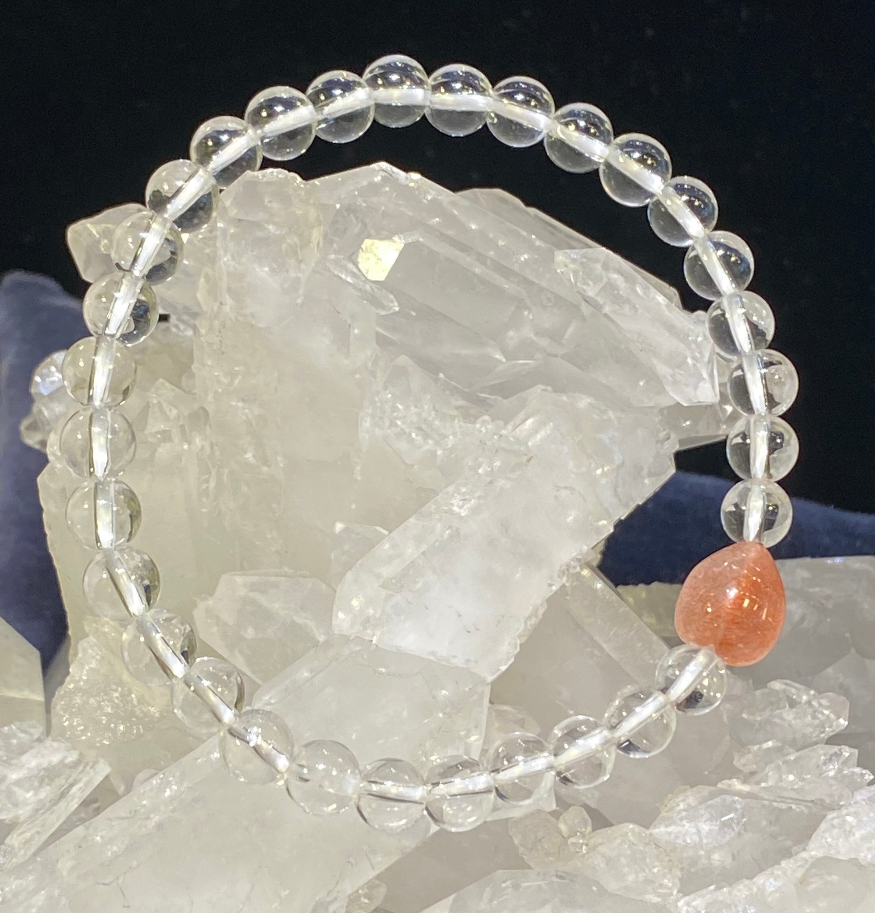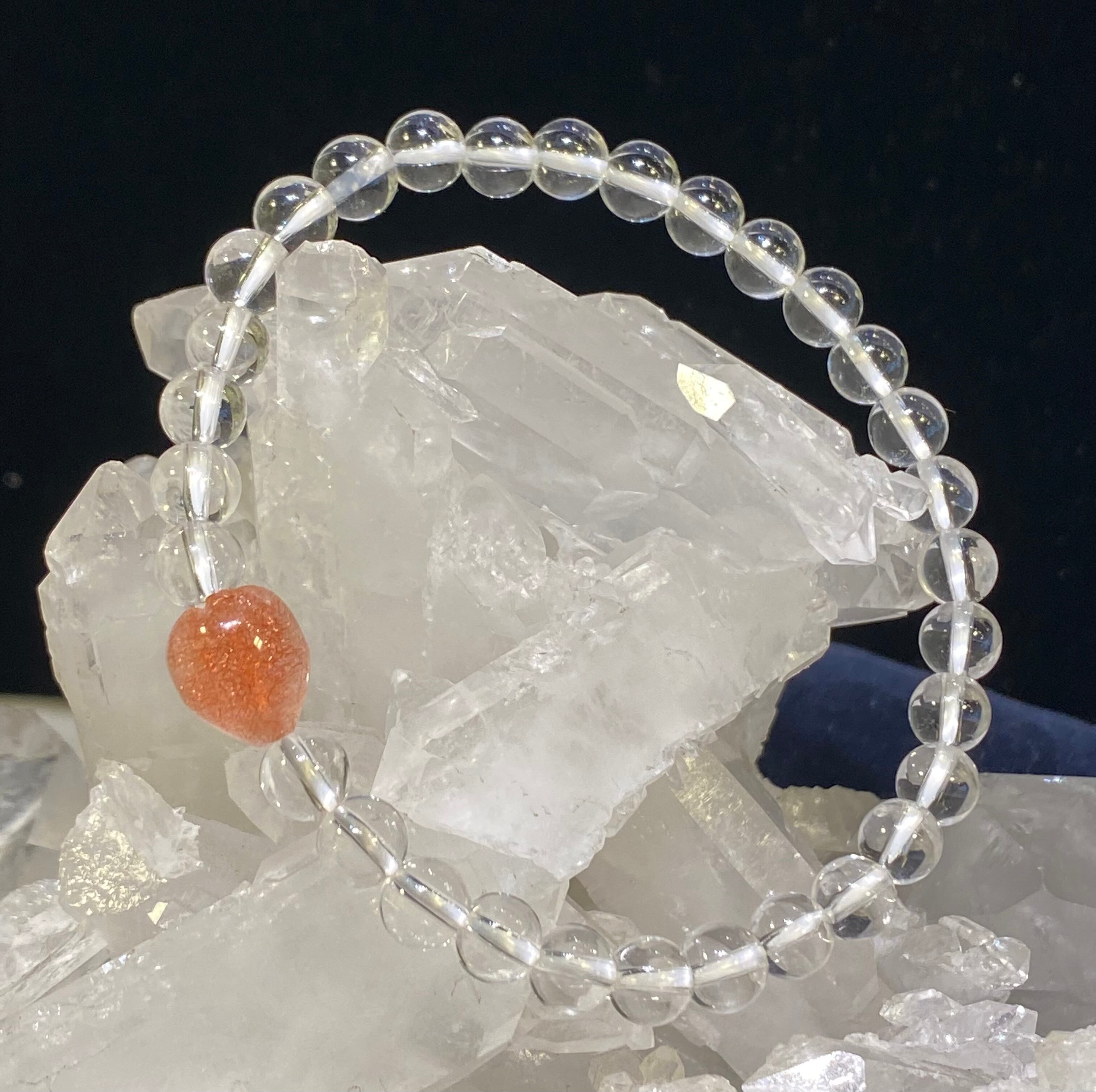 極上のカザフスタン産ストロベリークォーツのイチゴ型カットと透明度抜群の本水晶を組み合わせたブレスレットです♪