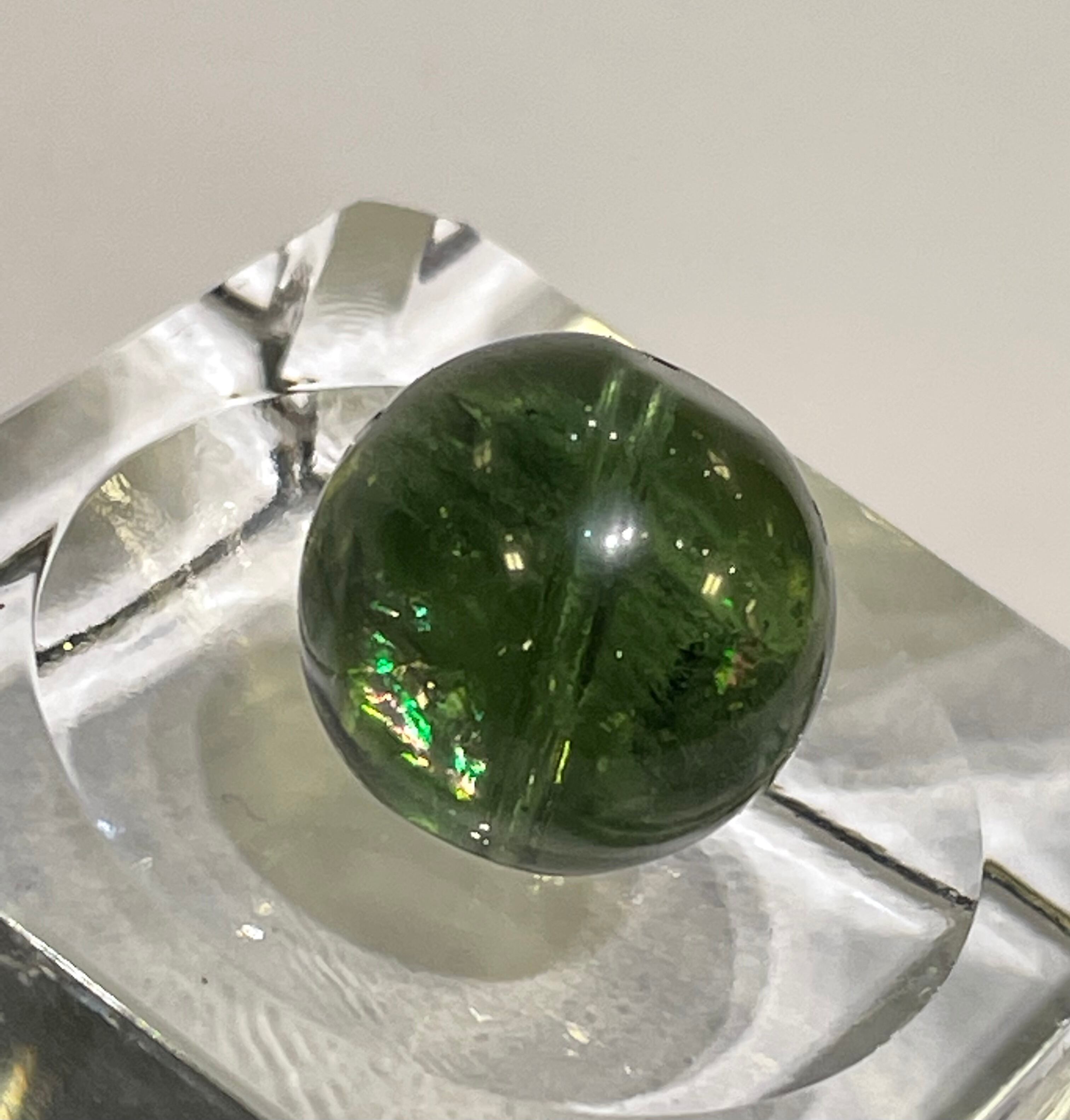 虹入り!天然モルダバイト12.3mmビーズ 粒売り 一個 本物 訳あり
