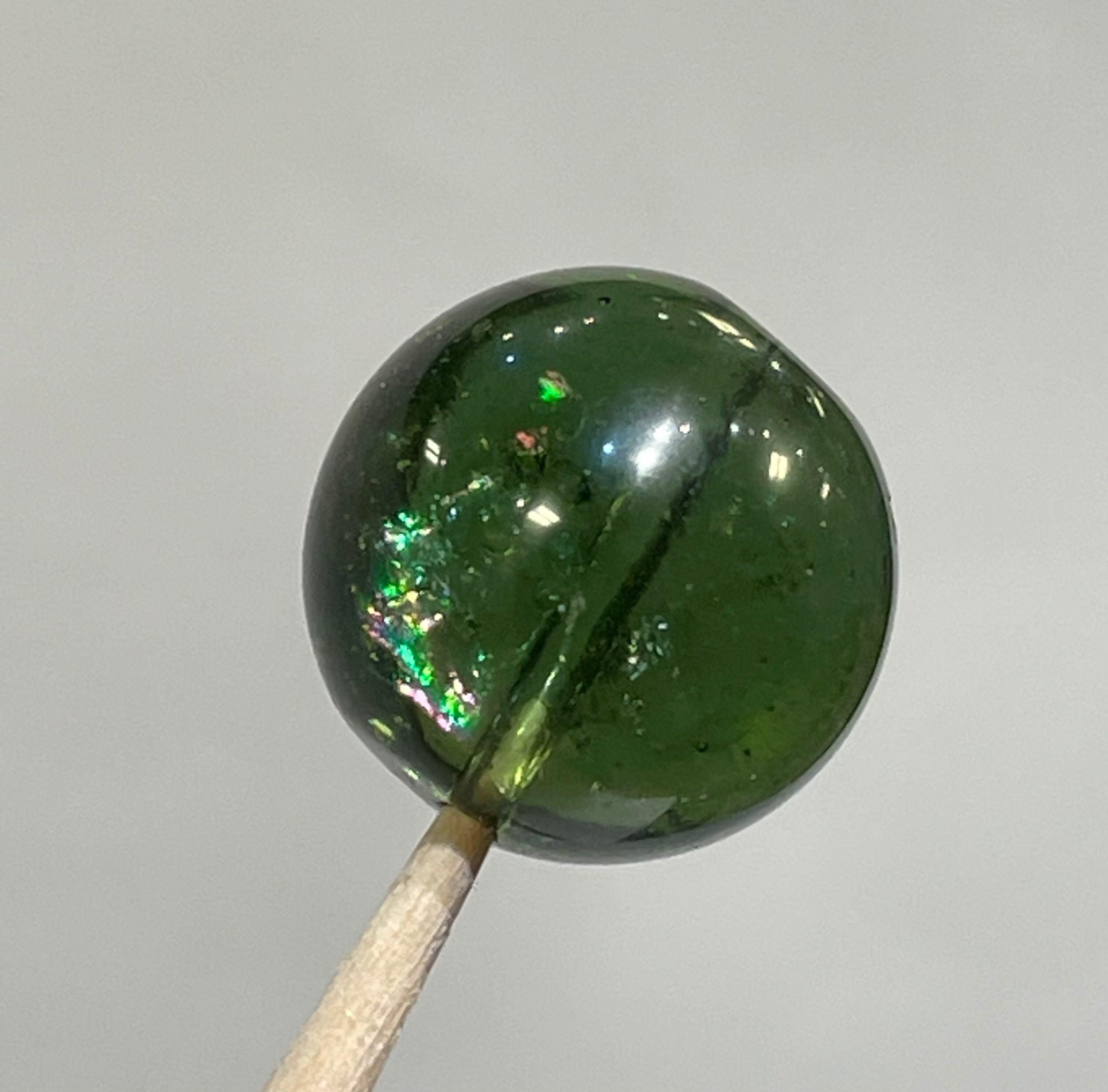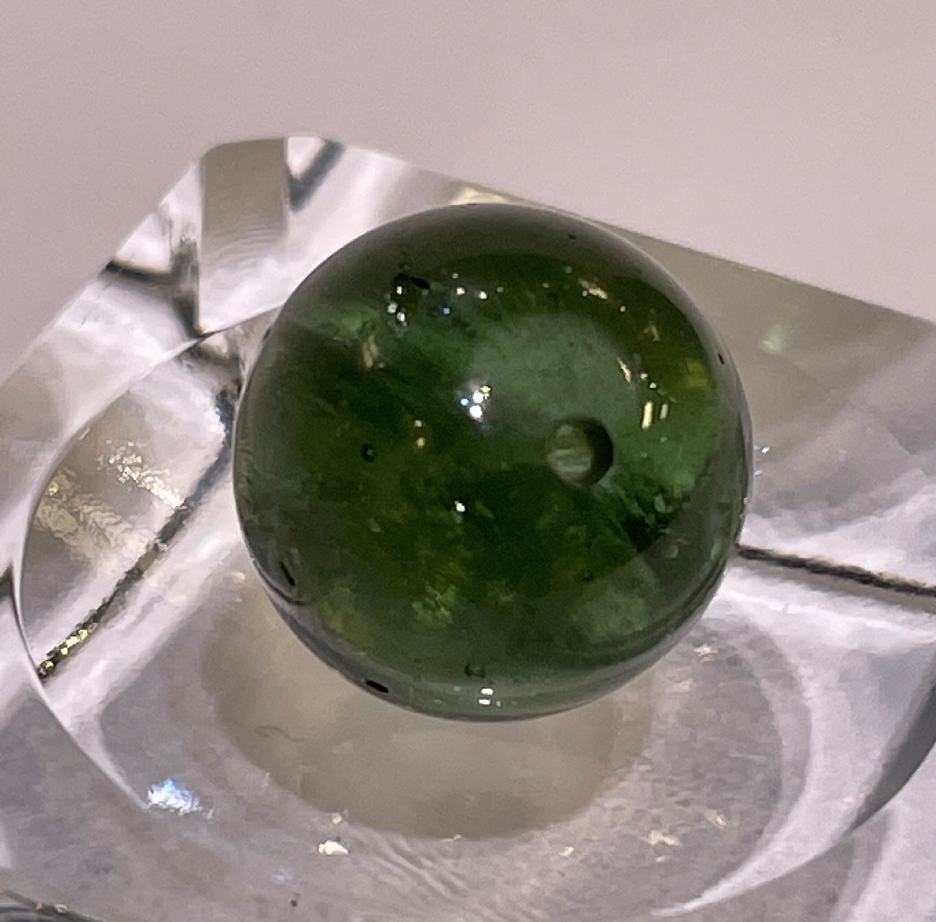 美しいフォレストグリーン色をしていまして、透かすと特にモルダバイト特有の綺麗なダークグリーン系の色合いを見せてくれます。