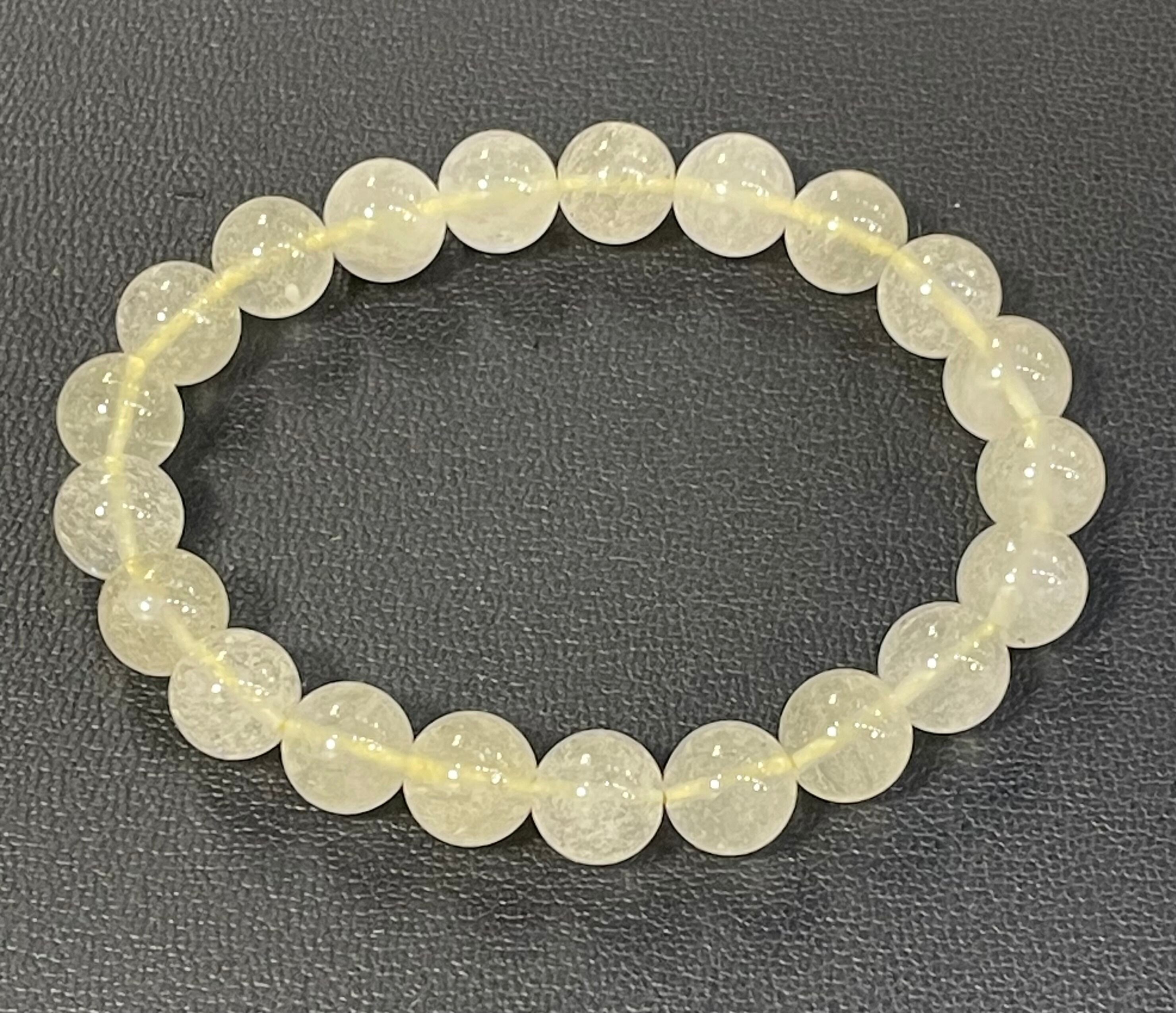 淡い黄色系が特徴であり、二酸化珪素(SiO2)の純度が98%で、黄緑、深緑、無色、乳白色等もあり気泡と内包物も良く含まれています。