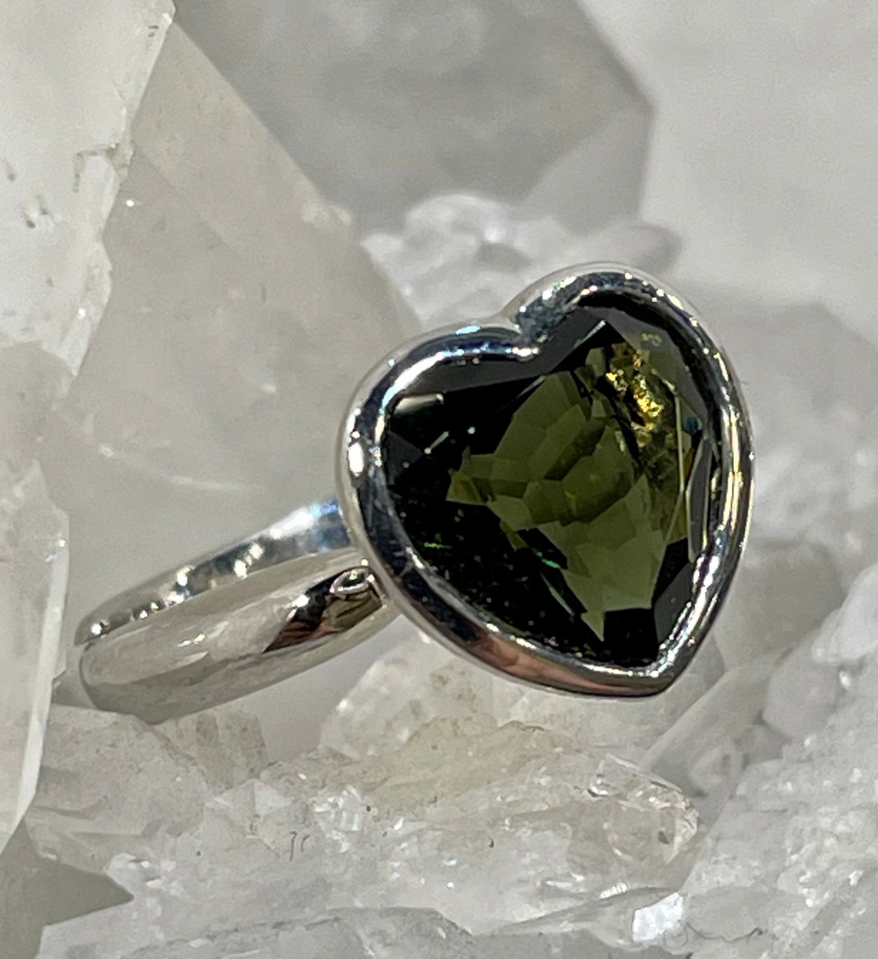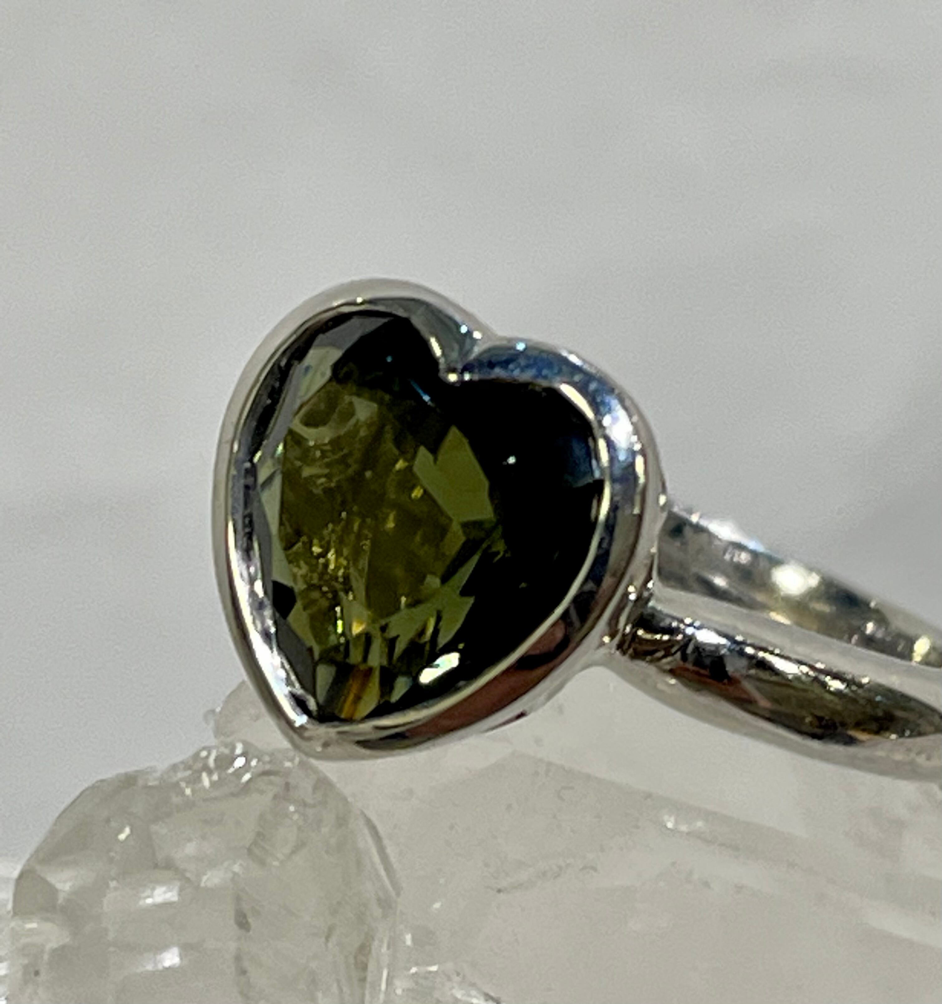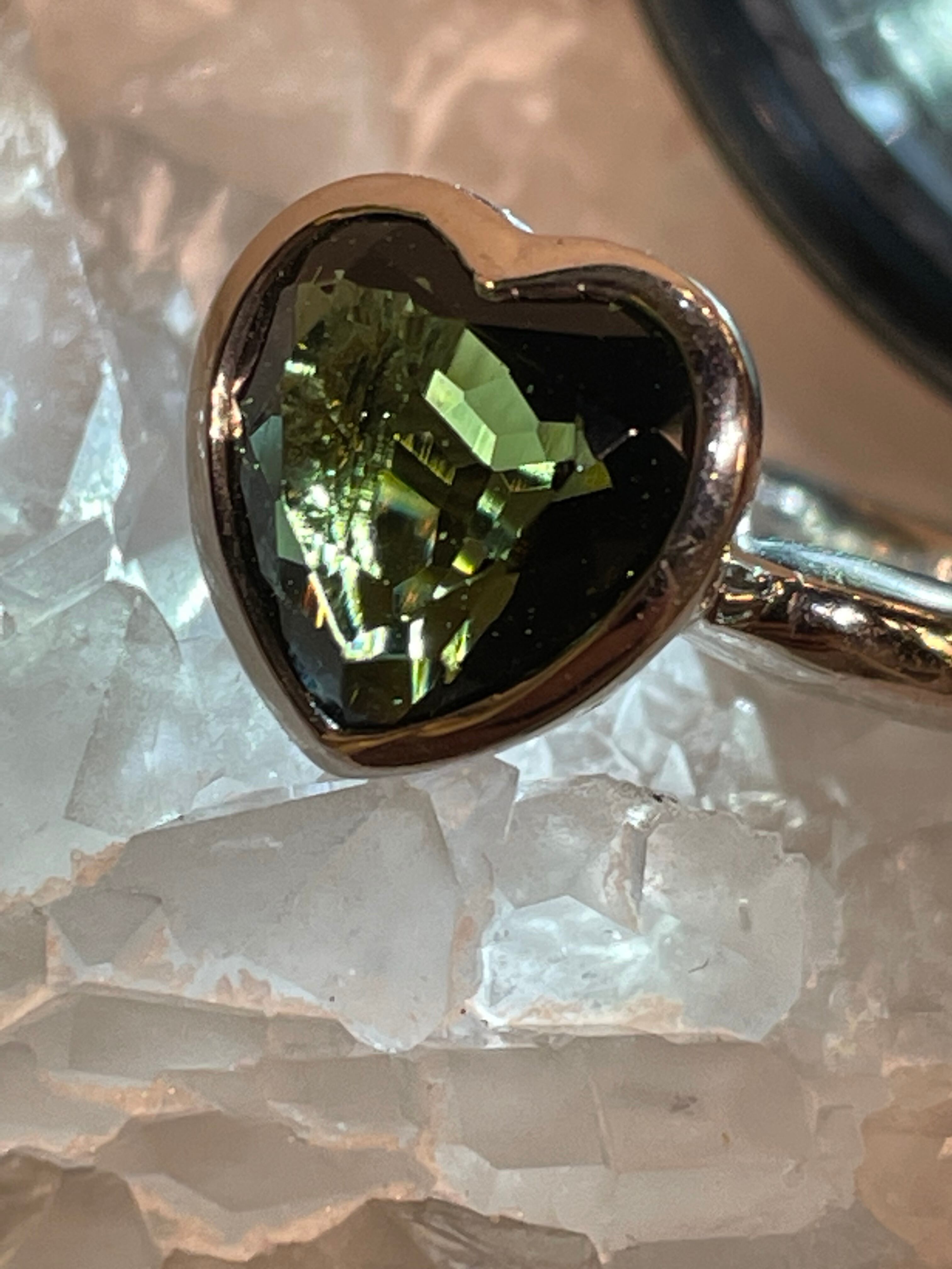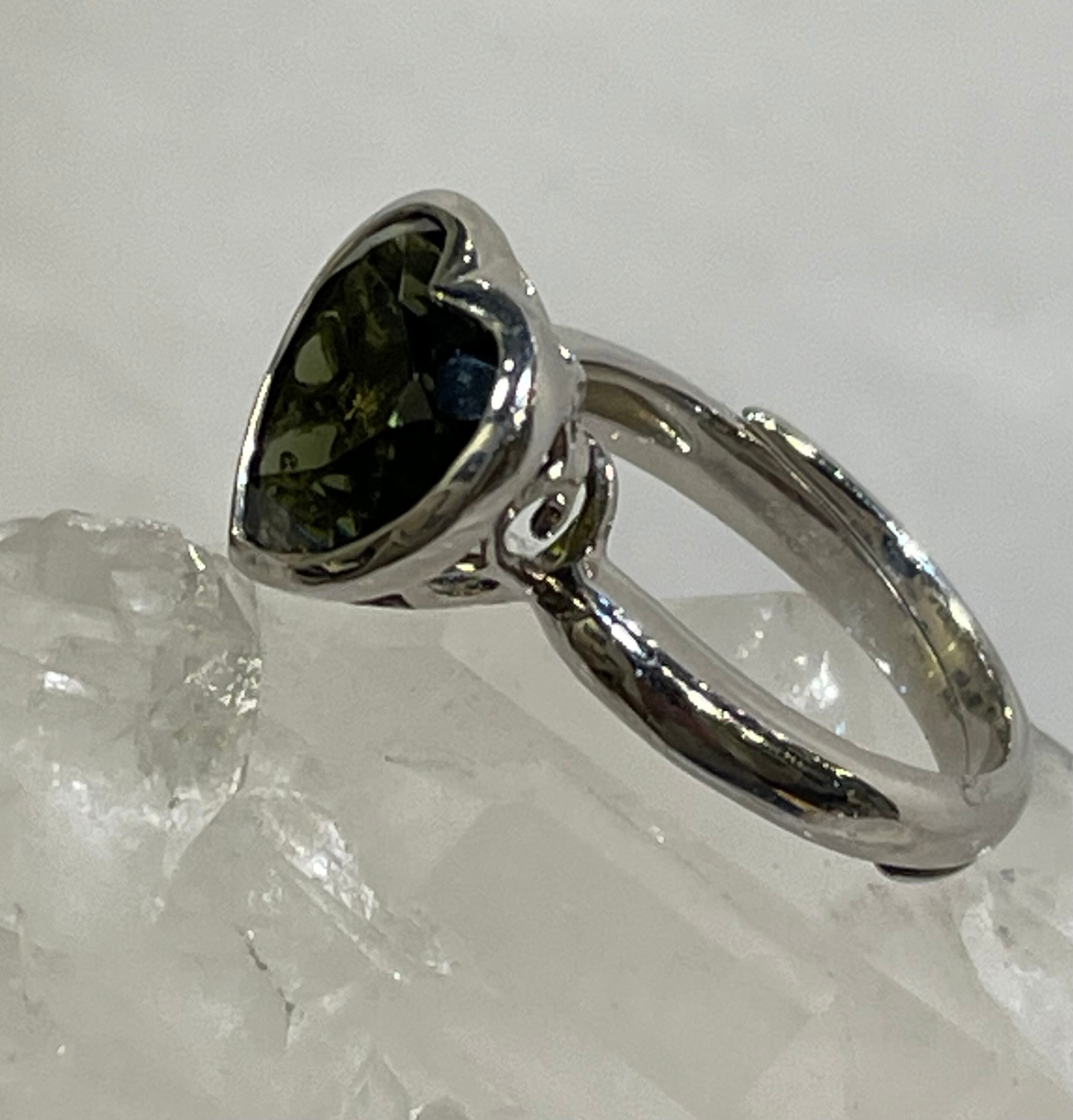 特選!宝石質モルダバイト指輪 ハート型 フリーサイズ 激安卸価格